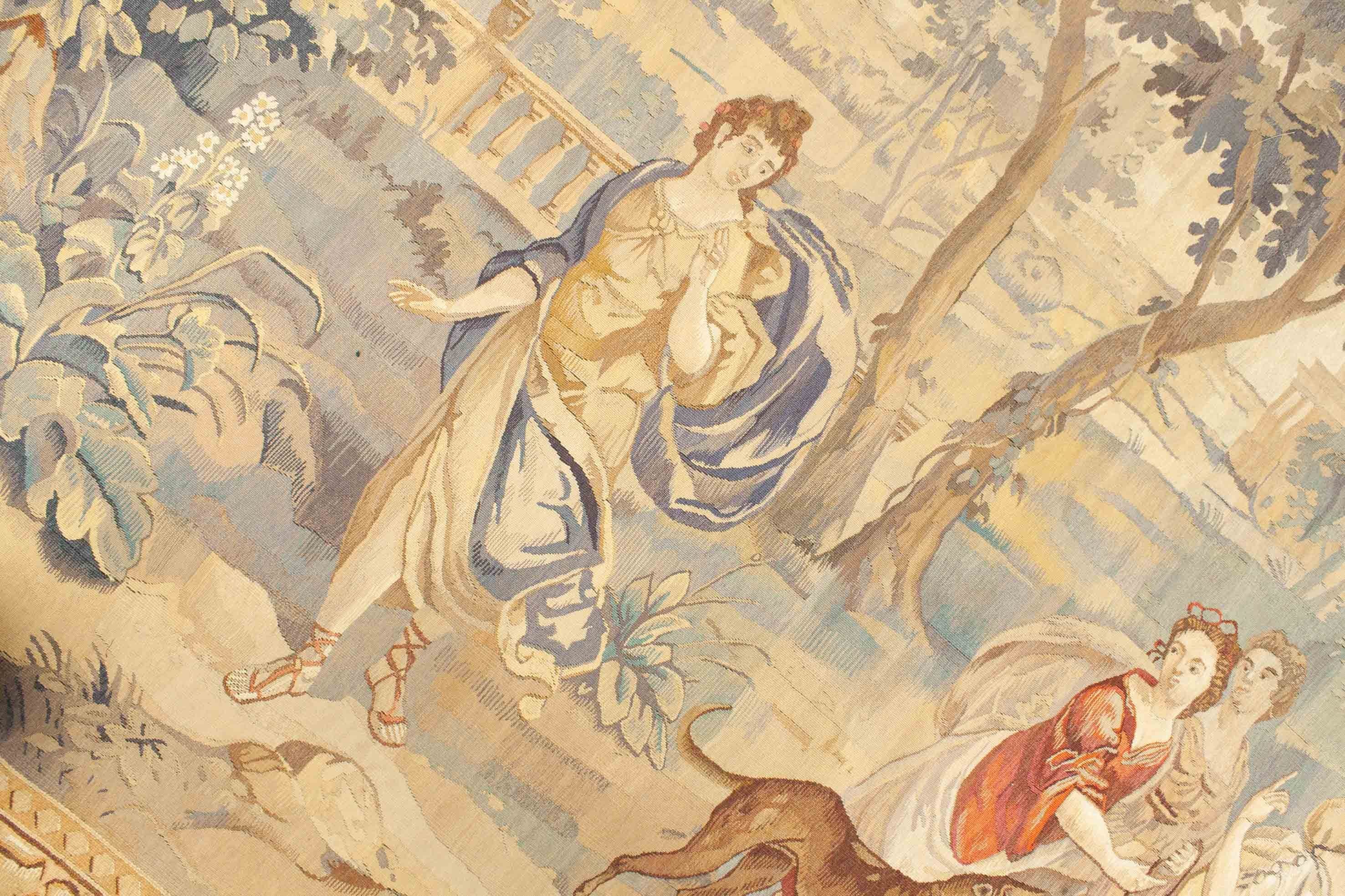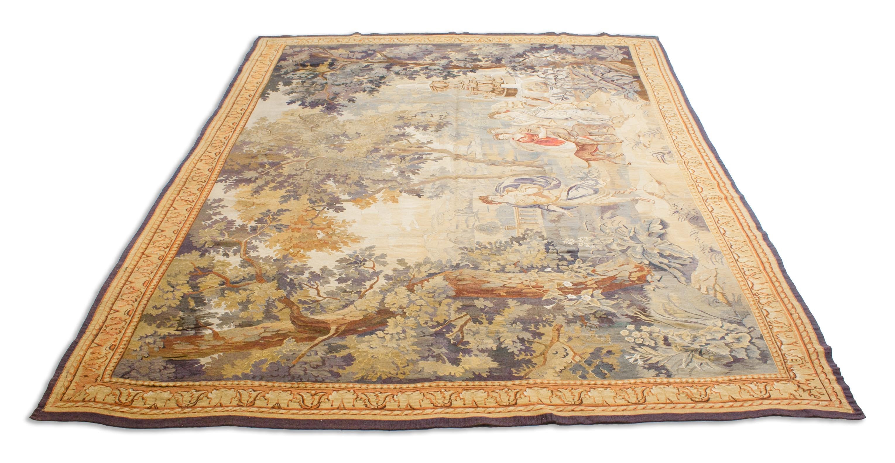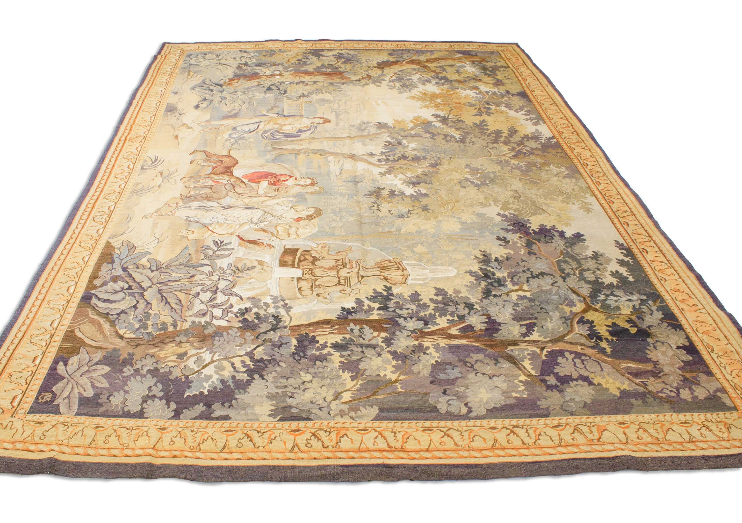 Ce tapis de tapis a une histoire. Il était sur. 1880 fait main. Il a été soigneusement nettoyé et est dans un état bon mais non-récupéré. Non restauré, cette ancienne aubusson est encore bien conservée et n'a pas de dégâts évidents. Les anneaux fortifiés implicitement implicitement que cette pièce pend probablement sur le mur sans exception et ne rayonne que pour cette raison dans une telle bonne condition. Nous n'avons pas restauré ce tapis de tapisserie parce que nous trouvons qu'il a un effet spécial comme il est. Si vous voulez cela, nous allons bien sûr restaurer le tapis pour vous. De toute façon, ce tapisserie vous fera profiter pendant des décennies.