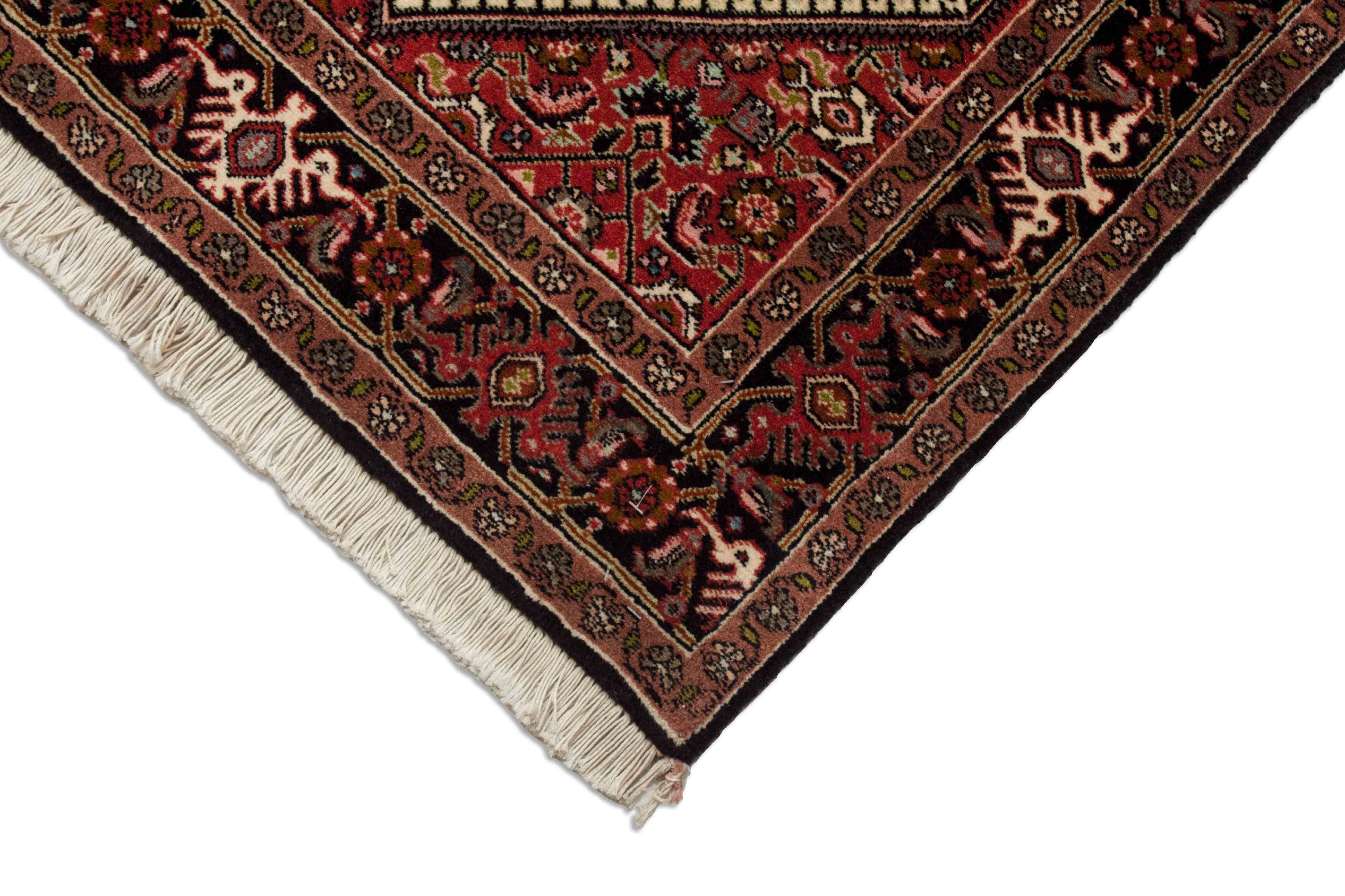 Le fond de ce bidjar est rouge rouillé. Le bord est maintenu en noir.