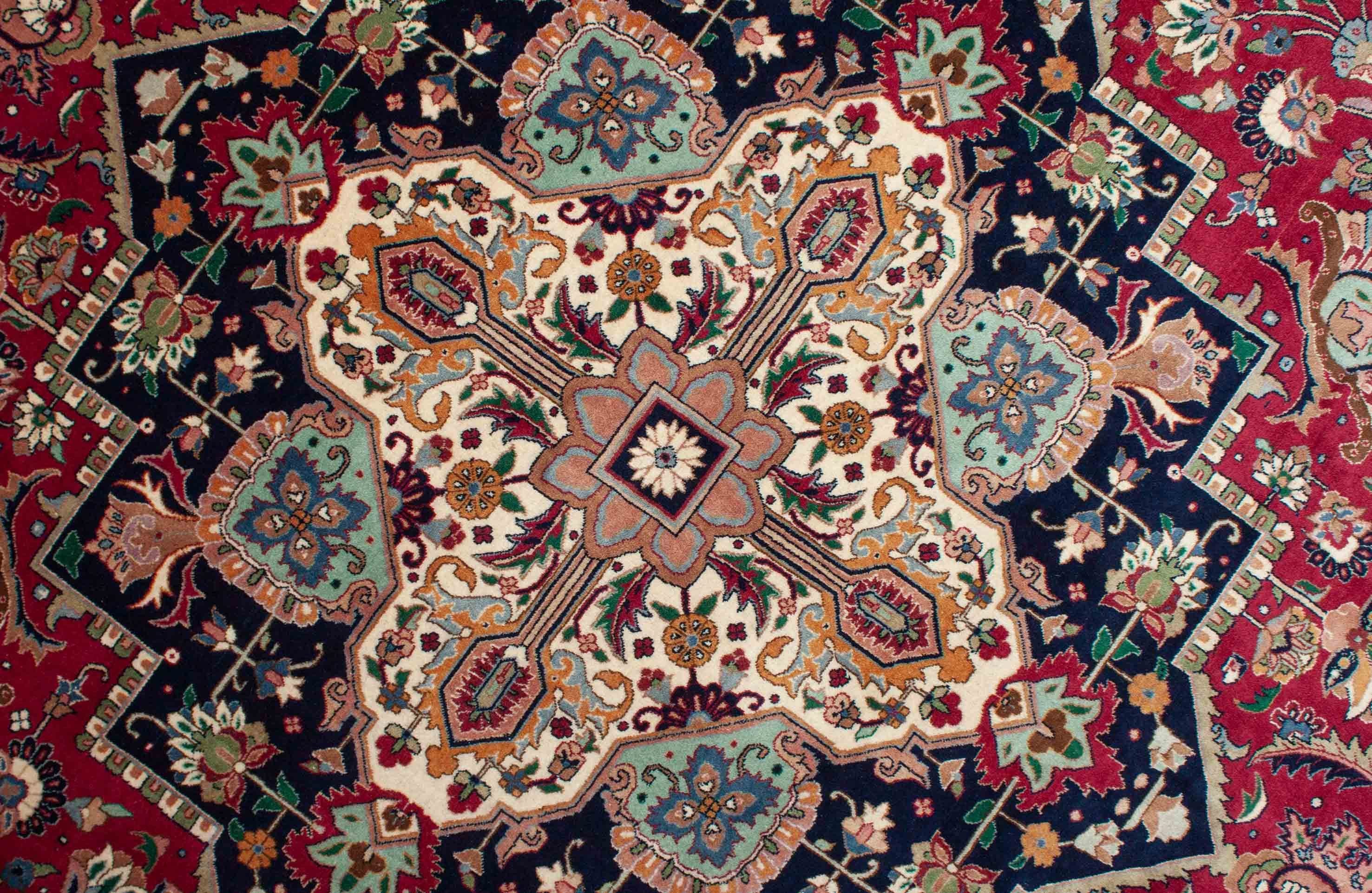 Le luxuriant Fleurs motifs ce Täbriz sont élégants et variés. Les symboles végétatifs gracieux qui représentent les fleurs, les feuilles et les branches sont artistiquement enchevêtrés.