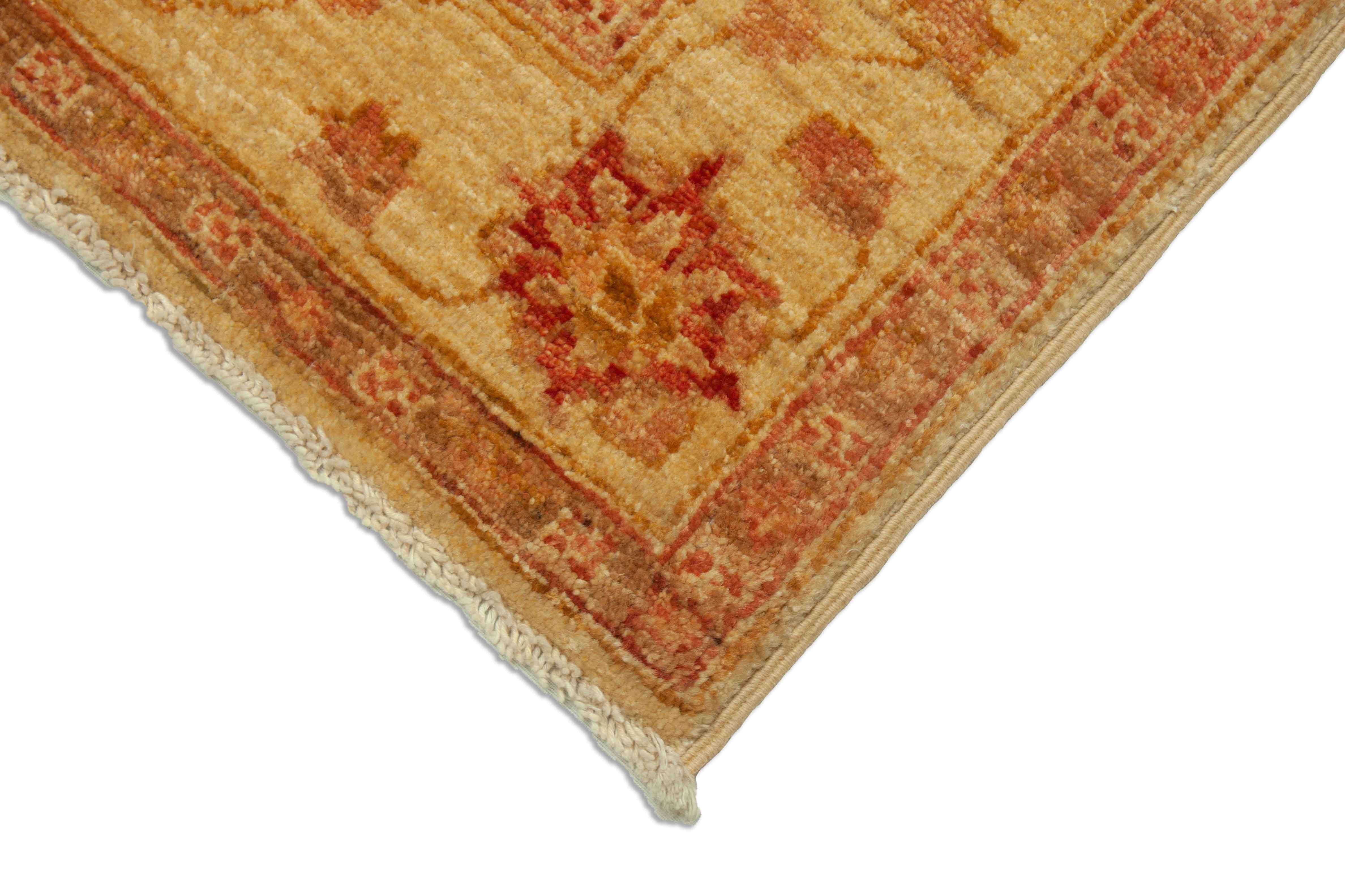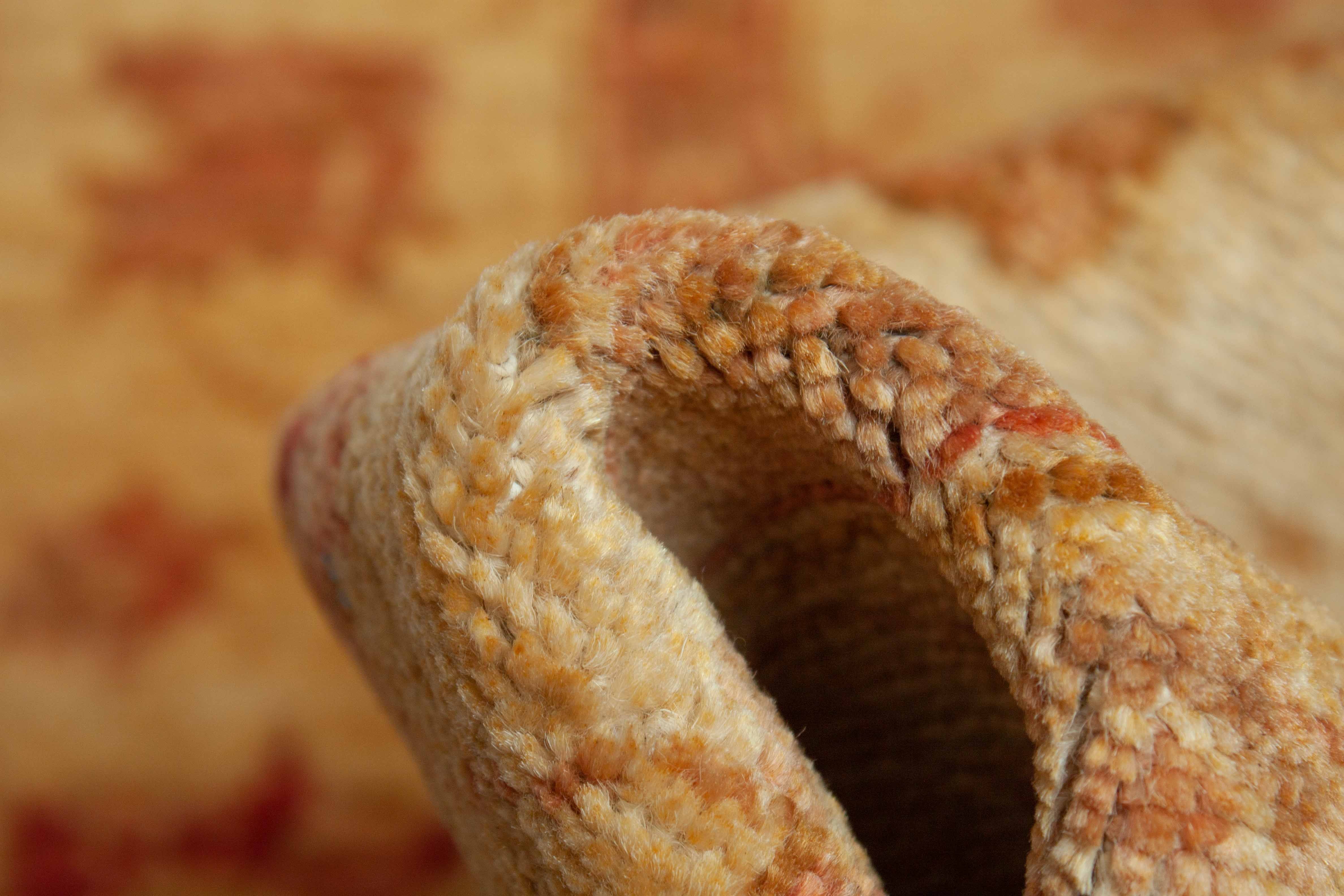 Le fond de ce Farahans est doré beige. Le bord est fait dans les couleurs or beige et brun clair.
