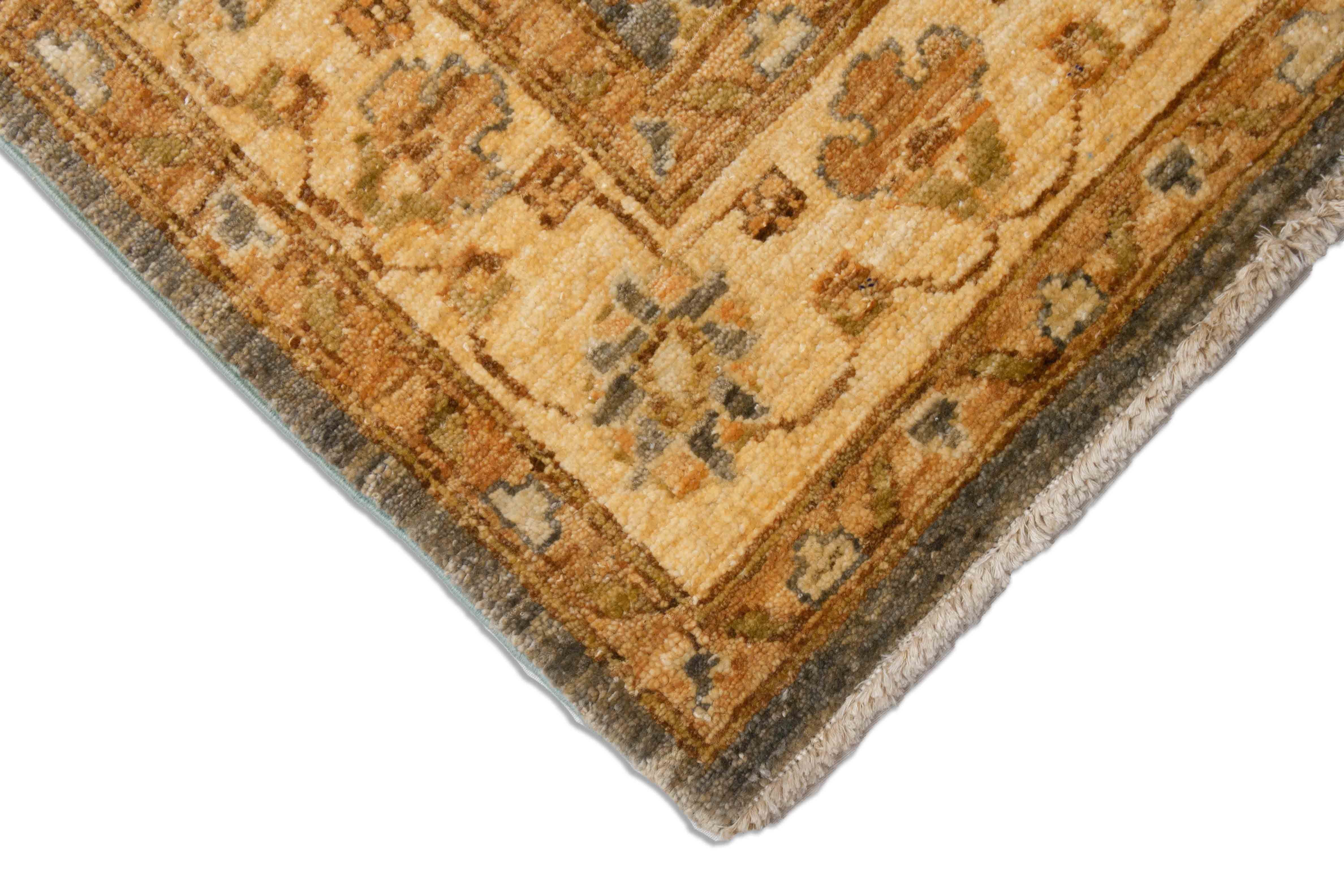 Le fond de ce Farahans est gris bleu. Le bord est tenu en beige.