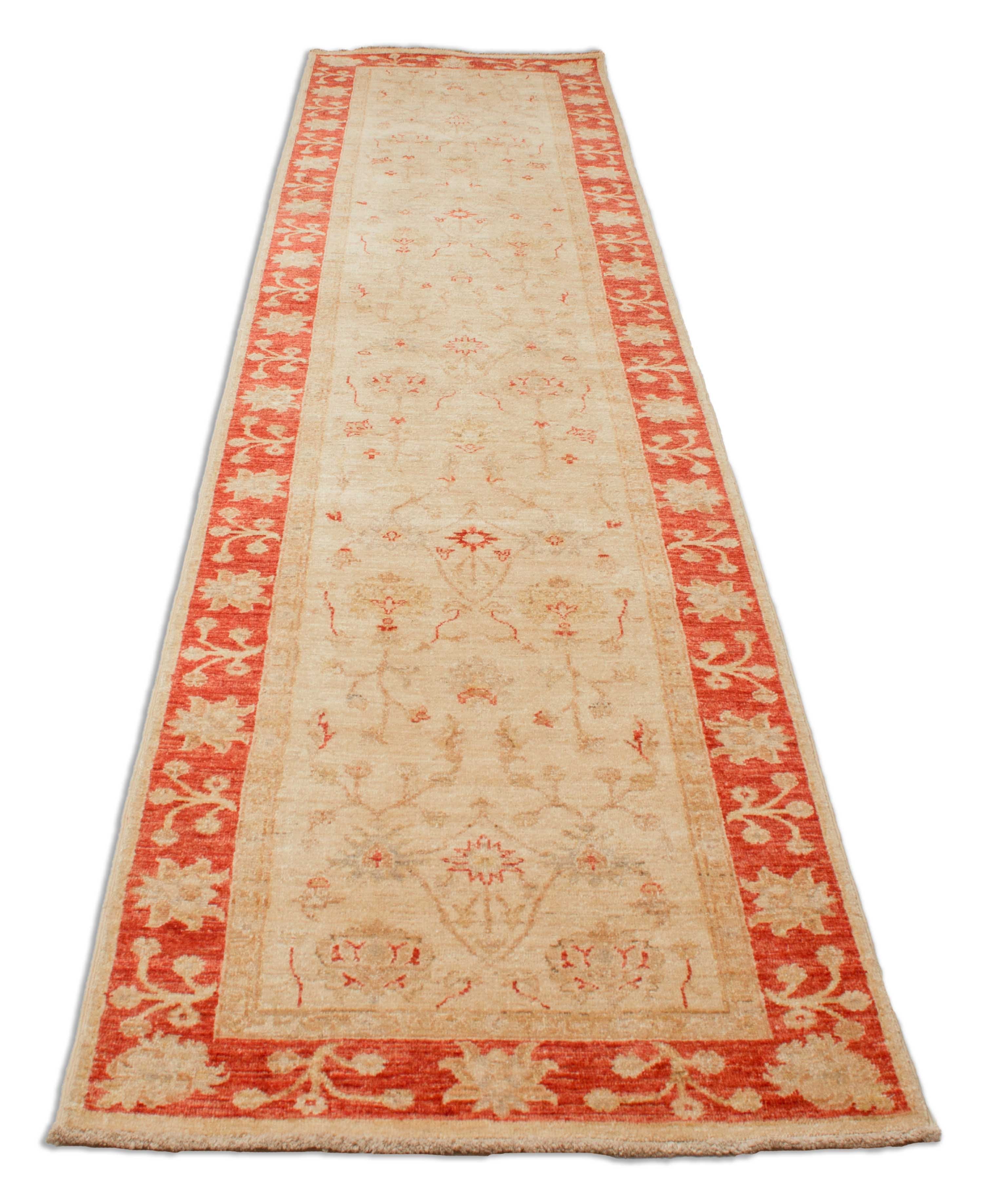 Le fond de ce Farahans est Beige. Le bord est conçu dans les couleurs rouge clair et beige.