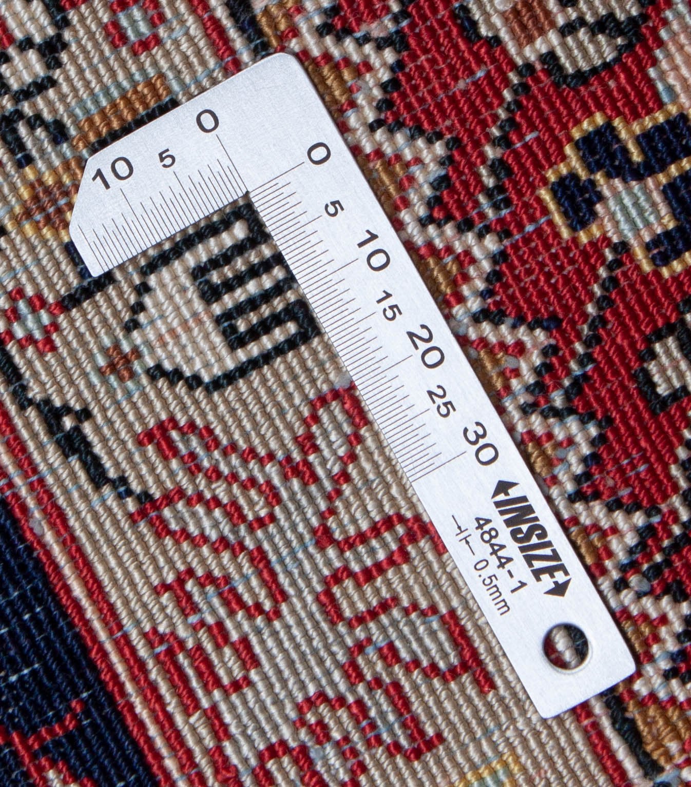 The Silk de ce ghom fait briller les couleurs du motif dans différentes facettes, selon l'incidence de la lumière. Il fait de ce ghom un véritable point fort et crée une atmosphère confortable et en même temps très élégante et de haute qualité dans la pièce. La soie est obtenue à la main des cocons de l'araignée de soie. Comme les fils de soie individuels sont extrêmement longs, des fils très fins peuvent être produits qui sont néanmoins résistants à la déchirure avec un faible poids. Des nœuds de tapis plus petits peuvent être fabriqués avec le fil mince et ainsi des motifs plus fin peuvent être produits. Par conséquent, les plus beaux tapis du monde sont faits à la main de la pure soie. Dans ce fossé, même le métro était pure soie fait. En raison du matériau mince mais durable des fils de trame et de chaîne, un bouton particulièrement fin et donc un motif particulièrement fin est possible.