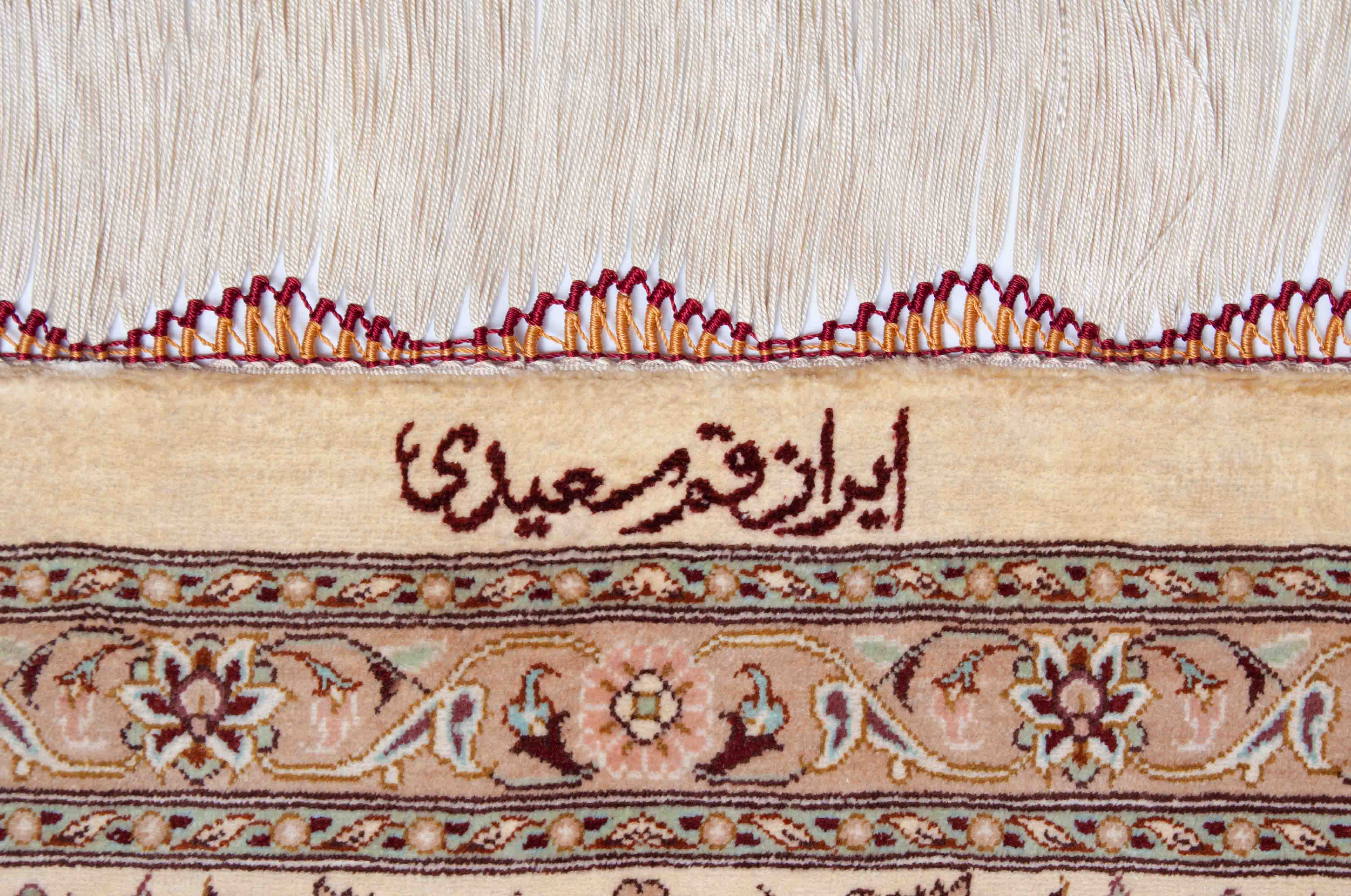 Un point culminant de ce ghom est son Signature. La production de documents de signature dans l'un des knüpferein les plus prestigieux de Ghom. La signature en caractères arabes est une expression de l'individualité et de l'origine noble de ce tapis.