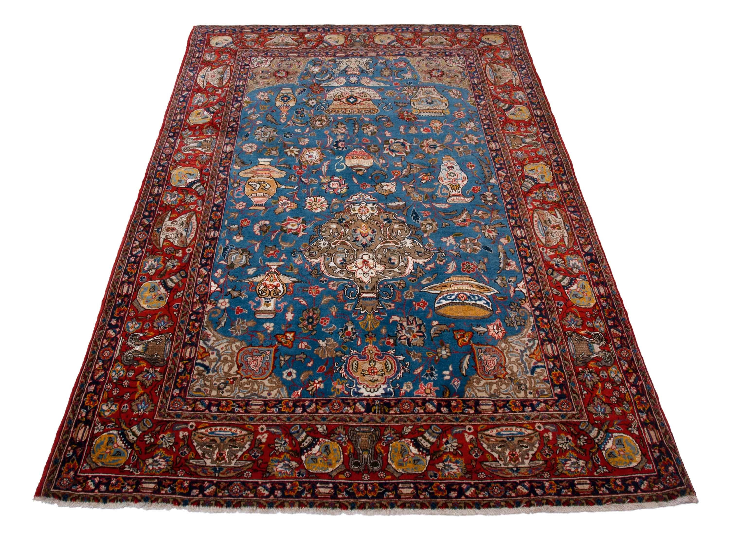 ghom est une provenance relativement jeune pour Perserteppiche. La ville ghom (aussi Gom, Ghoum, Goum) est situé dans le centre de l'Iran, à environ 100 km au sud de la capitale Téhéran. ♪ ghom – en ce qui concerne le tapis – il n'était pas possible de s'appuyer sur une vieille tradition, et les modèles ont été repris d'autres zones de nœuds. Dans le temps, cependant, il a développé son propre style. Les tapis de soie de Ghom sont maintenant l'un des tapis les plus célèbres et de haute qualité au monde. Le champ des tapis en Ghom est souvent décoré avec des motifs de médaillon ou de pénétrage ou de vases.