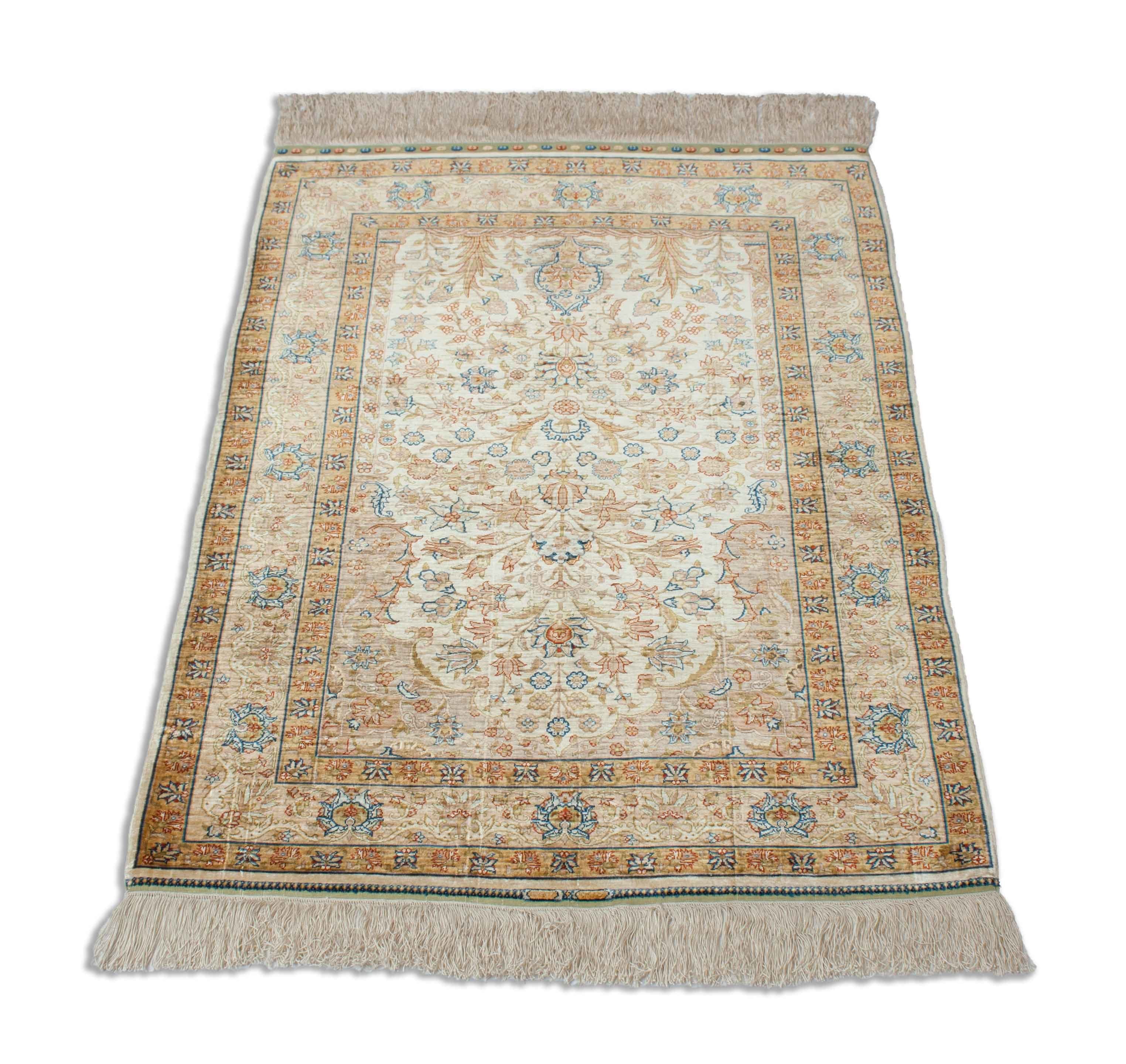 De la ville turque Viens. viennent de très précieux tapis de soie. La tradition a été promue par le sultan artistique Abd-ul-Medjid (période de réglementation 1839 - 1861). Il lisait en 1844 les clubs du Caire à Hereke. Handmade Tapis de soie Hereke sont parmi les plus beaux tapis du monde et sont fabriqués avec une densité allant jusqu'à 6 millions de noeuds par mètre carré. D'ailleurs, le motif sur le côté arrière peut être considéré comme clairement comme sur le côté avant. Les tapis turcs antiques sont récompensés par des prix dans des maisons d'enchères d'art de renom.