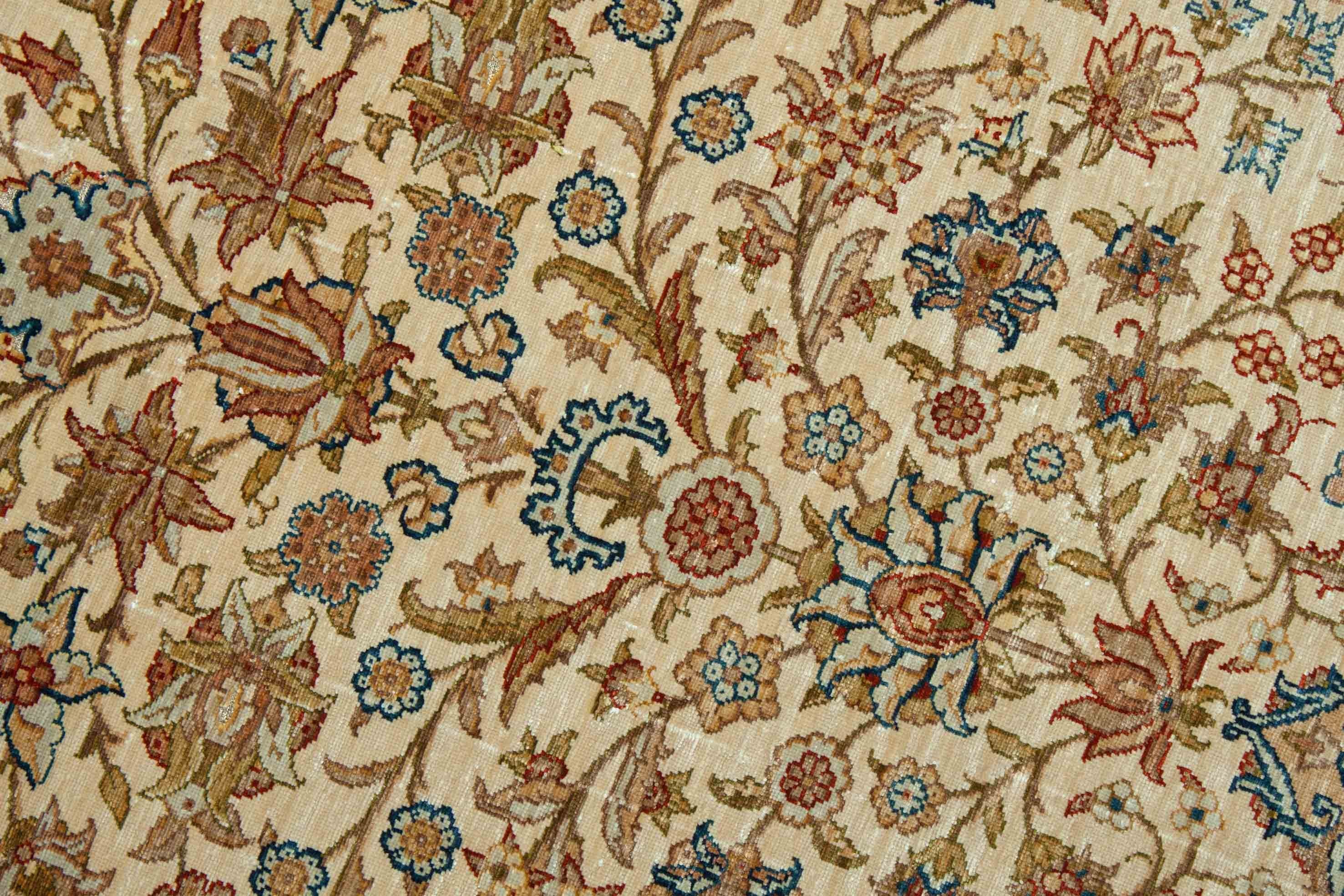 Floraler Hereke en soie pure avec fils d'or, jaune beige avec bordure et signature