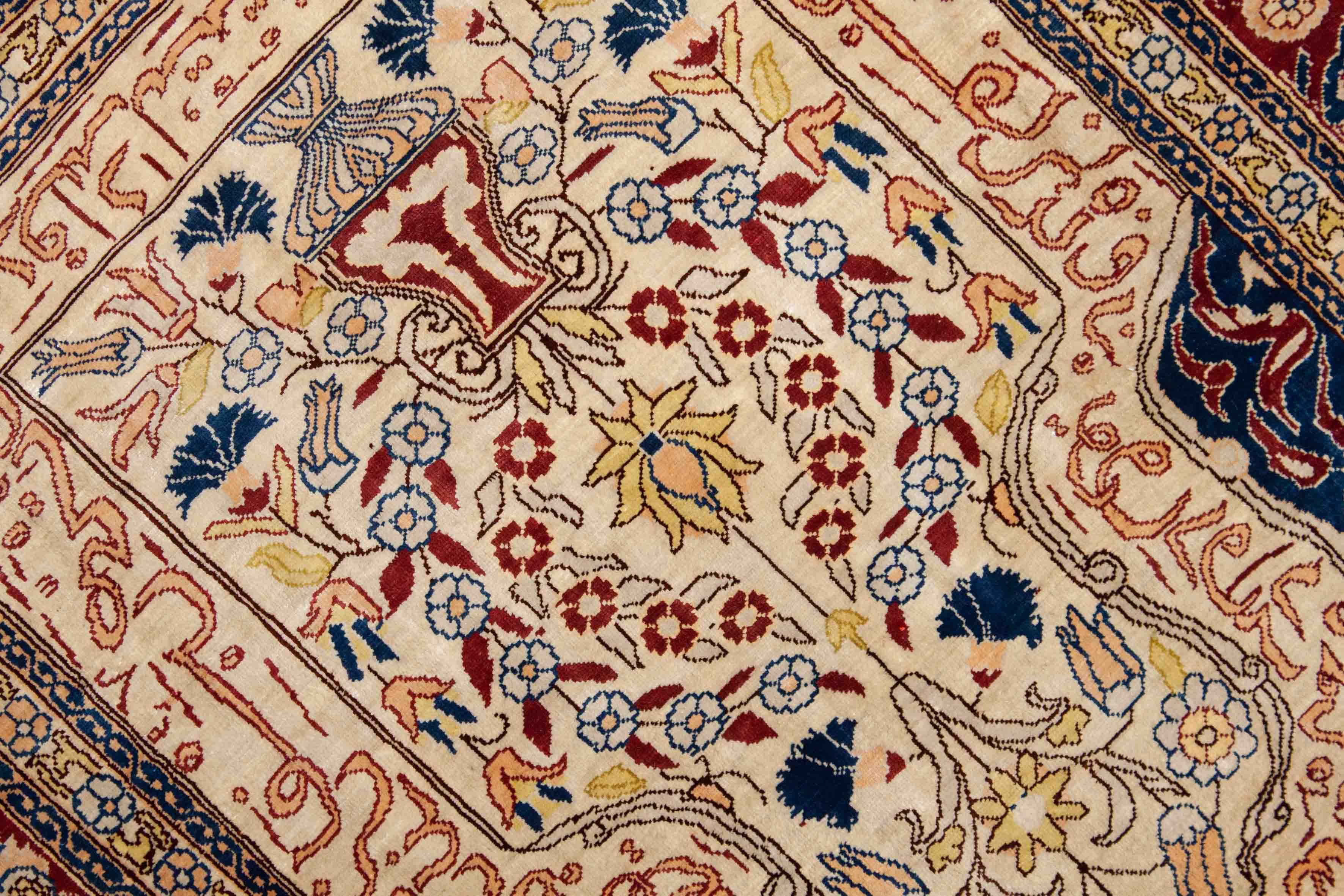 Floraler Hereke en soie pure, beige doré avec bordure et motif