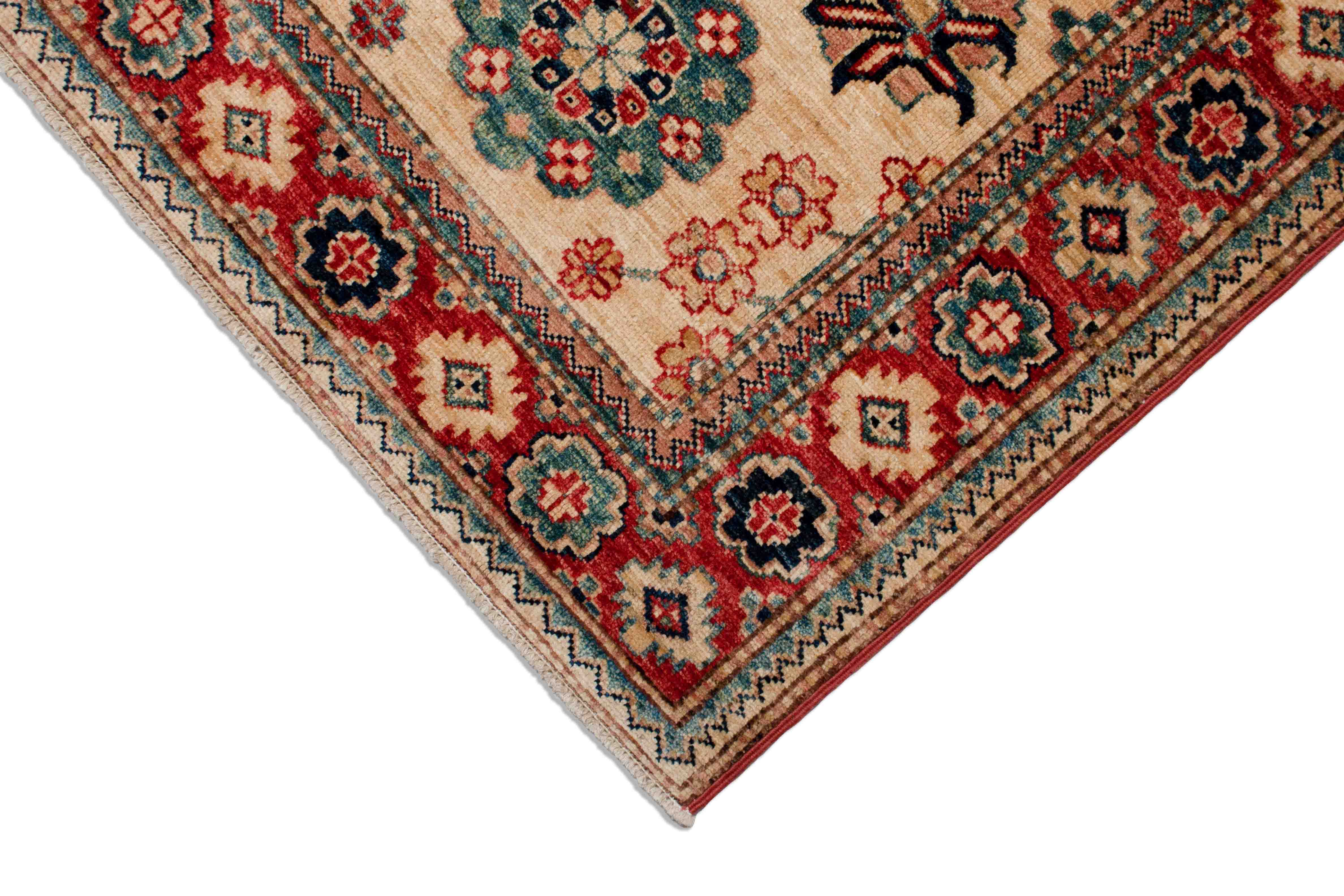 Le luxuriant Fleurs motifs ce Kazak est élégant et varié. Les symboles végétatifs gracieux qui représentent les fleurs, les feuilles et les branches sont artistiquement enchevêtrés.