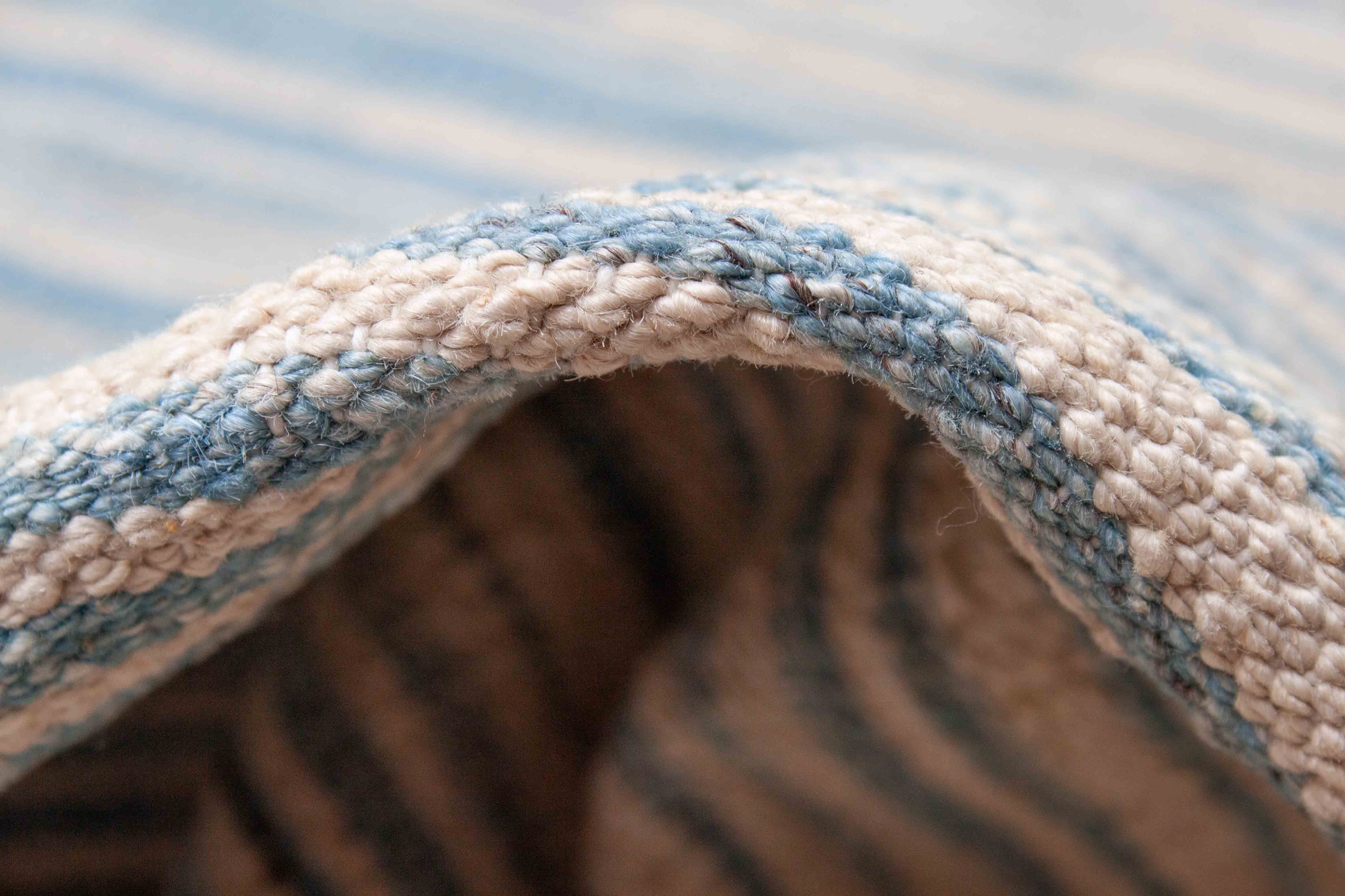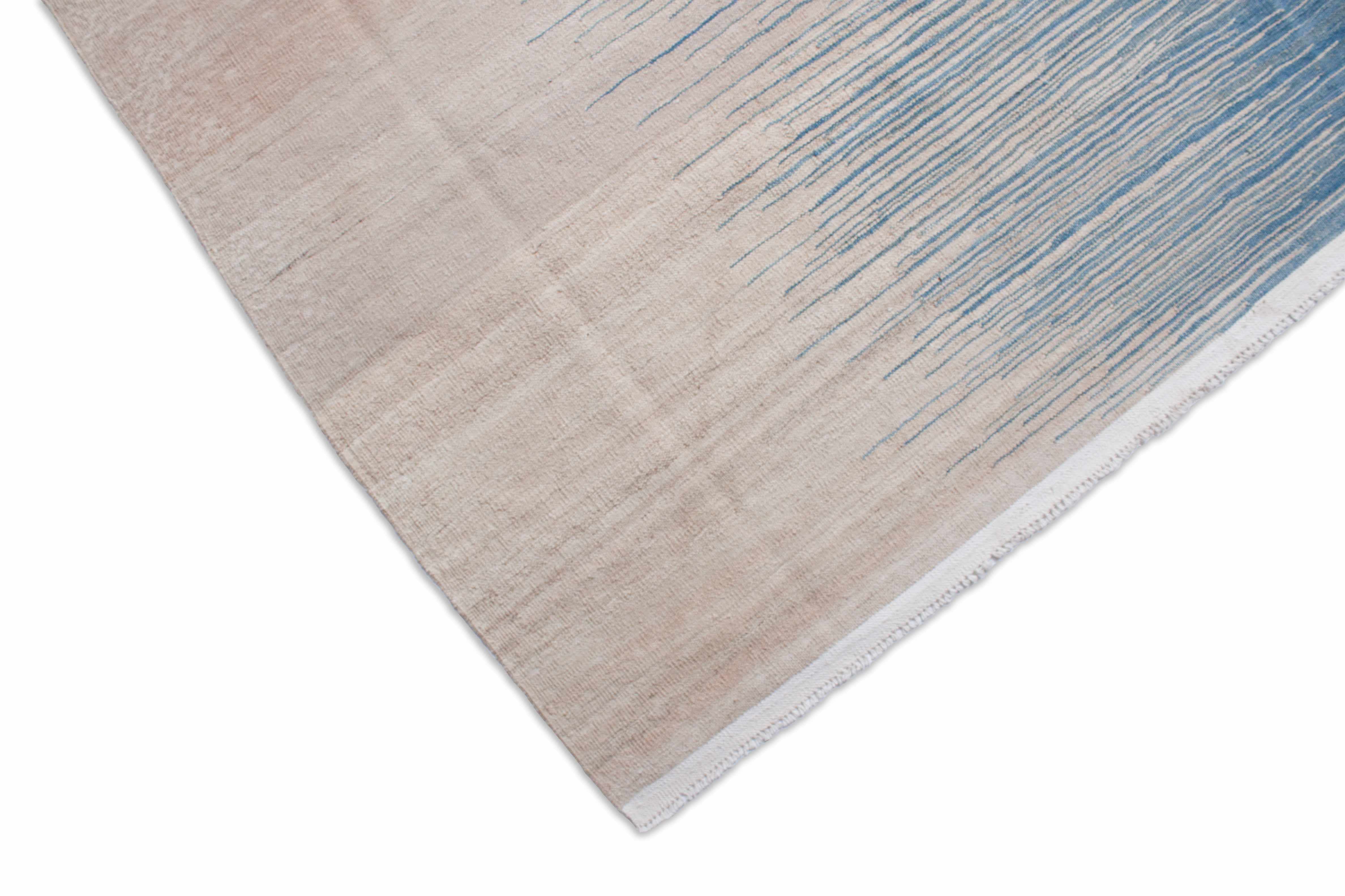 The composition abstraite, géométrique fait l'élégance simple de ce Kelim. Le motif flatte le design de la pièce et ne fait pas attention aux meubles, décoration et élément architectural. Il s'intègre fantastiquement dans n'importe quel environnement et complète l'établissement d'un espace de manière subtile.