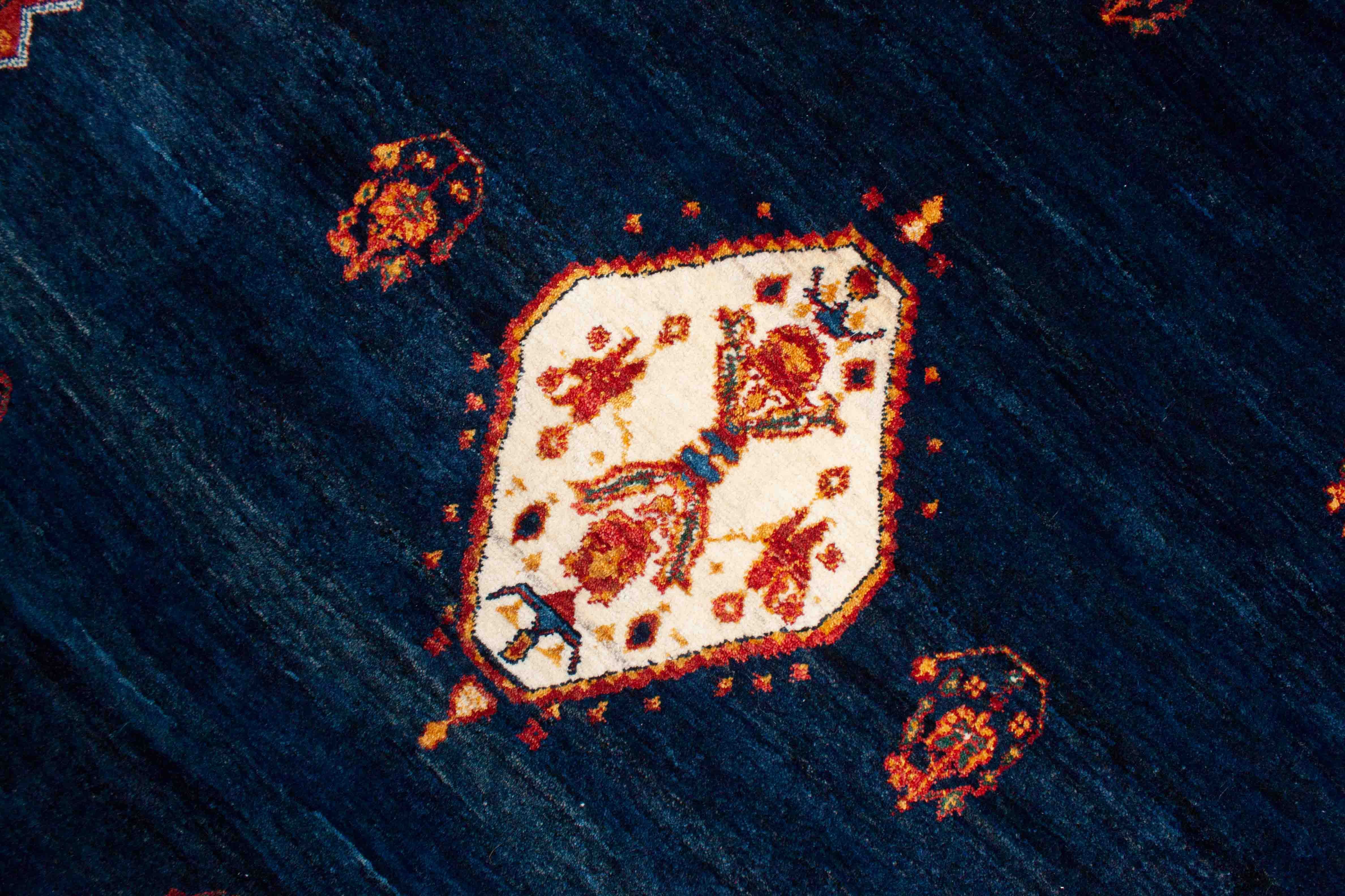 Cette main Le tapis Lori a une pile dense, relativement élevée. The Laine de mouton, qui est utilisé pour la Flore des Carpets Lori, est particulièrement haute qualité et teneur en matières grasses. Les tapis Lori sont très confortables et durables. Traditionnellement, les tapis Lori, comme Gabbeh, étaient utilisés pour dormir. Ils vous invitent à vous asseoir et souffler dans le salon, mais ils sont également grands pour les zones de passage et dans la salle à manger. La fleur de Lori Carpets Laine de mouton est coloré avec des couleurs naturelles et une cuillère à main. Cela donne à la Loris sa surface douce. La laine de fer à main est toujours un peu irrégulière. Pendant la coloration, les colorants naturels sont absorbés différemment. Le tapis agit de façon plus vive, soi-disant couleur saute abrasch, c'est-à-dire des nuances de couleur claire-ombre. Les changements de couleur du fil de pile s'étendent toujours transversalement à la direction longitudinale du loris et rendent le tapis insensible à la contamination. Le substrat (fils en coque et chaîne) de ce loris se compose de laine vierge.