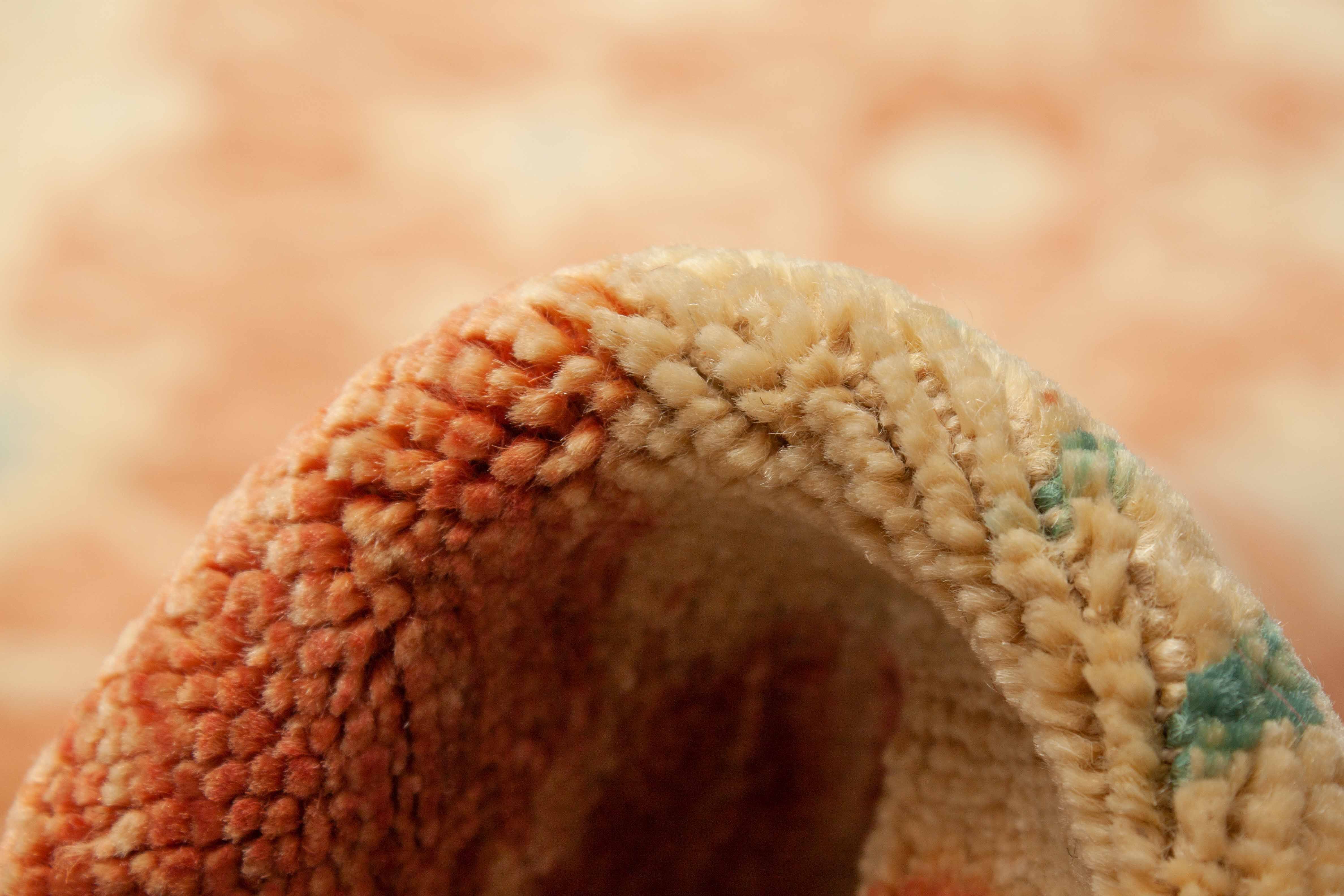 La technique avec laquelle les matériaux pour la flore de ce Mahal ont été produits a plus de 200 ans. La laine était Couleurs naturelles coloré et spun à la main. La teinture aux couleurs naturelles ou végétales est plus compliquée, plus chère et plus longue que la teinture aux couleurs chimiques. Pour un rouge vif, par exemple, un kilo de racine de vaisselle au sol est requis par kilo de laine comme colorant. Pour un jaune fort, pas trop pâle, même deux kilos de teinture teintée wowau sont requis par kilo de laine. La filature de la laine est aussi longue et laborieuse. De plus, moins de gens parlent de laine filante à la main.