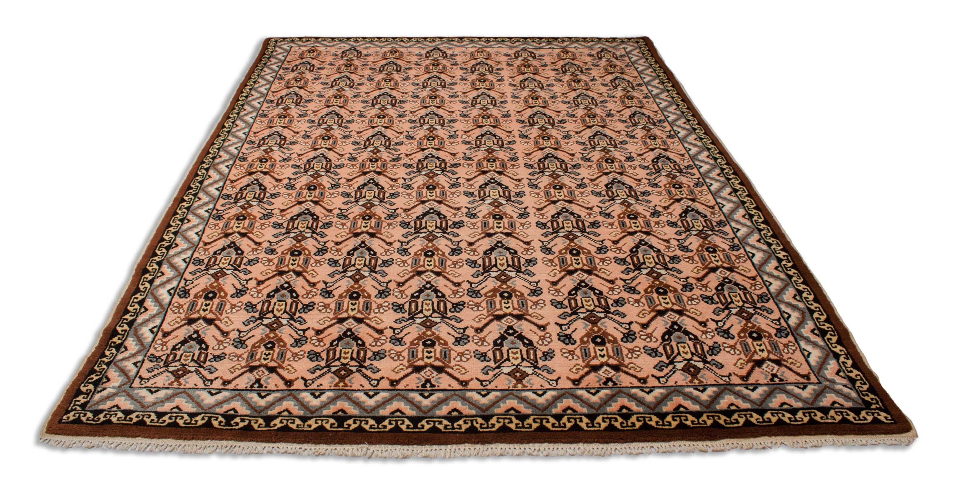 Vous n'êtes pas le premier à trouver des faveurs dans ce tapis oriental marocain. Il avait déjà des propriétaires devant vous qui l'appréciaient et l'utilisaient. Il était sur. 1970 fait main. Nous l'avons soigneusement nettoyé et l'avons restauré avec amour. Par conséquent, malgré son âge, il est en très bon état.