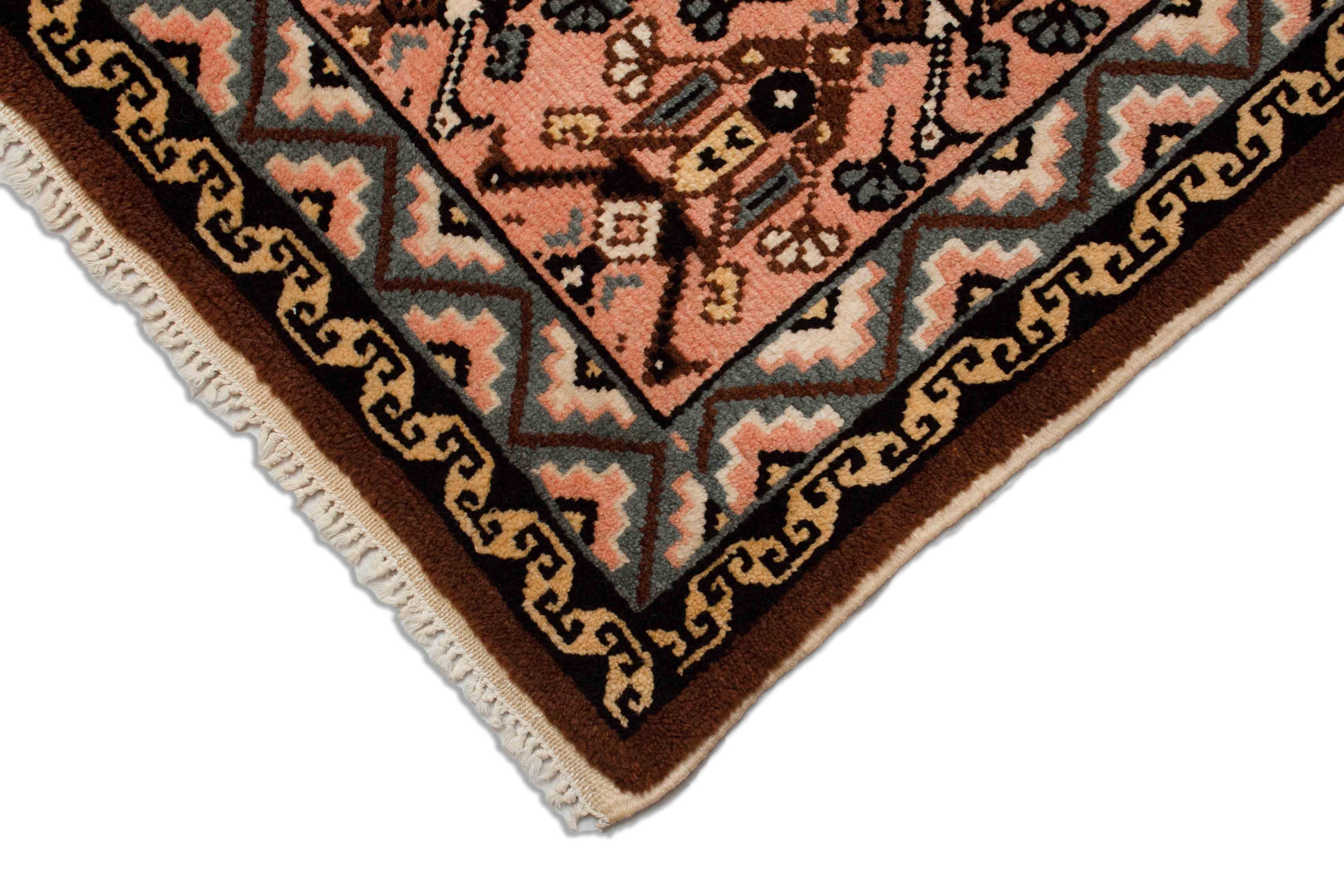 Tapis oriental marocain géométrique, vieux rose avec bordure