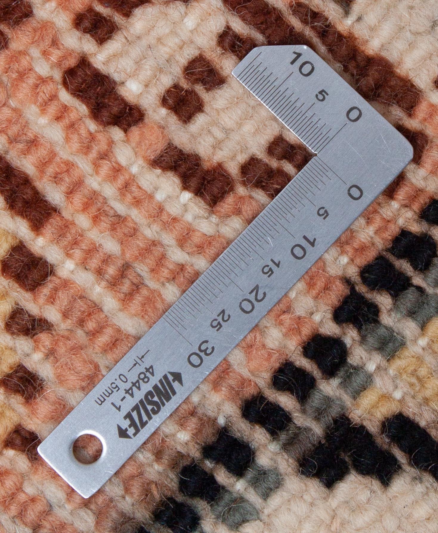 The composition abstraite, géométrique fait l'élégance simple de ce tapis oriental marocain. Le motif flatte le design de la pièce et ne fait pas attention aux meubles, décoration et élément architectural. Il crée une atmosphère agréable sans dominer le style de la chambre.