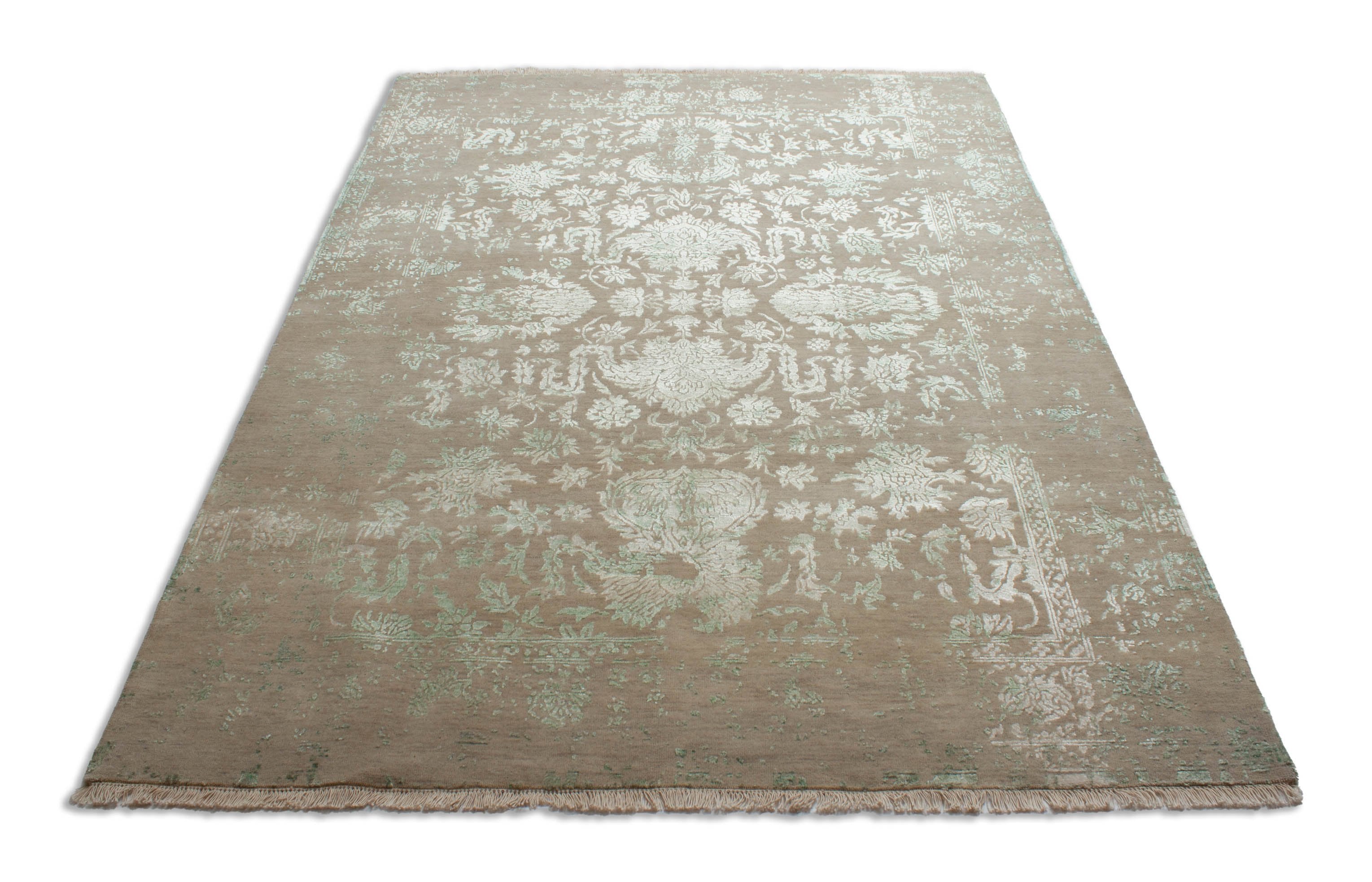 Le motif inspiré des ornements orientaux classiques crée l'impression que ce tapis fait main a déjà une longue histoire derrière lui. Le modèle agit comme s'il était lavé ou verbalement et donc presque abstrait. En fait, ce Neo Nain est naturellement nouveau et fait partie du dernière génération de designs de tapis contemporains. Il ponte un pont entre designs modernes et intérieurs et motifs orientaux classiques. Le modèle est conservé et reste présent.