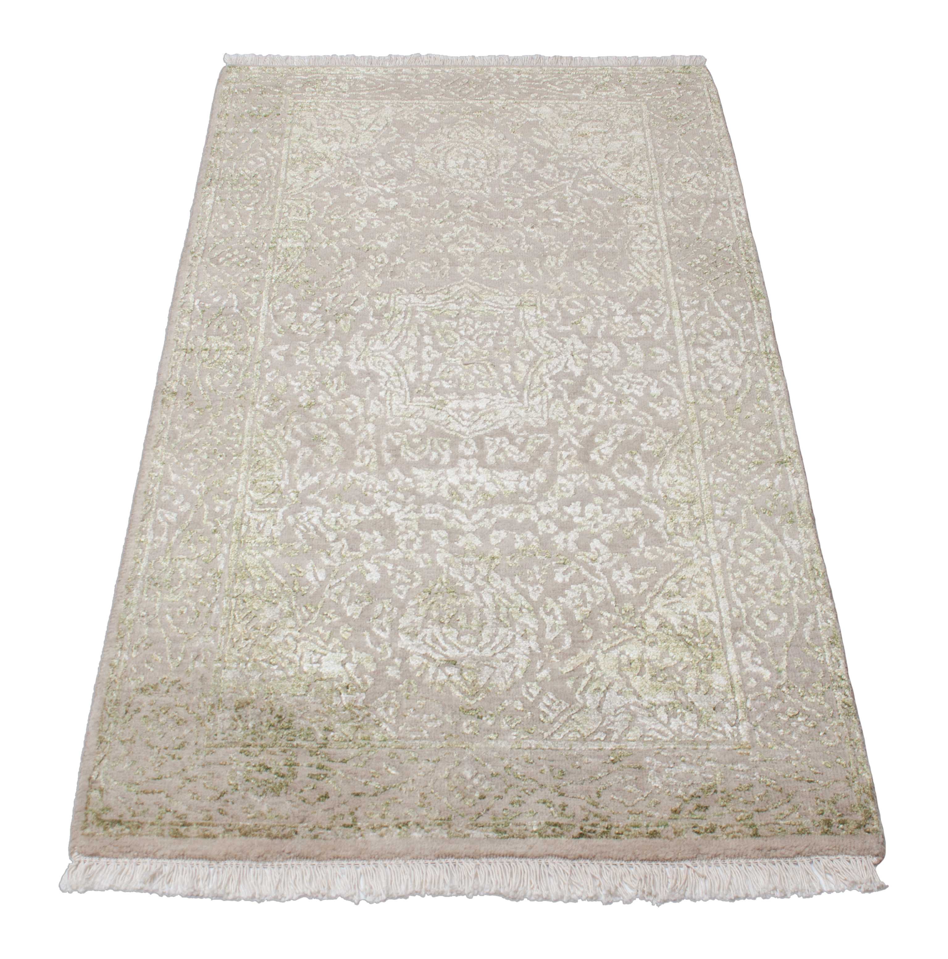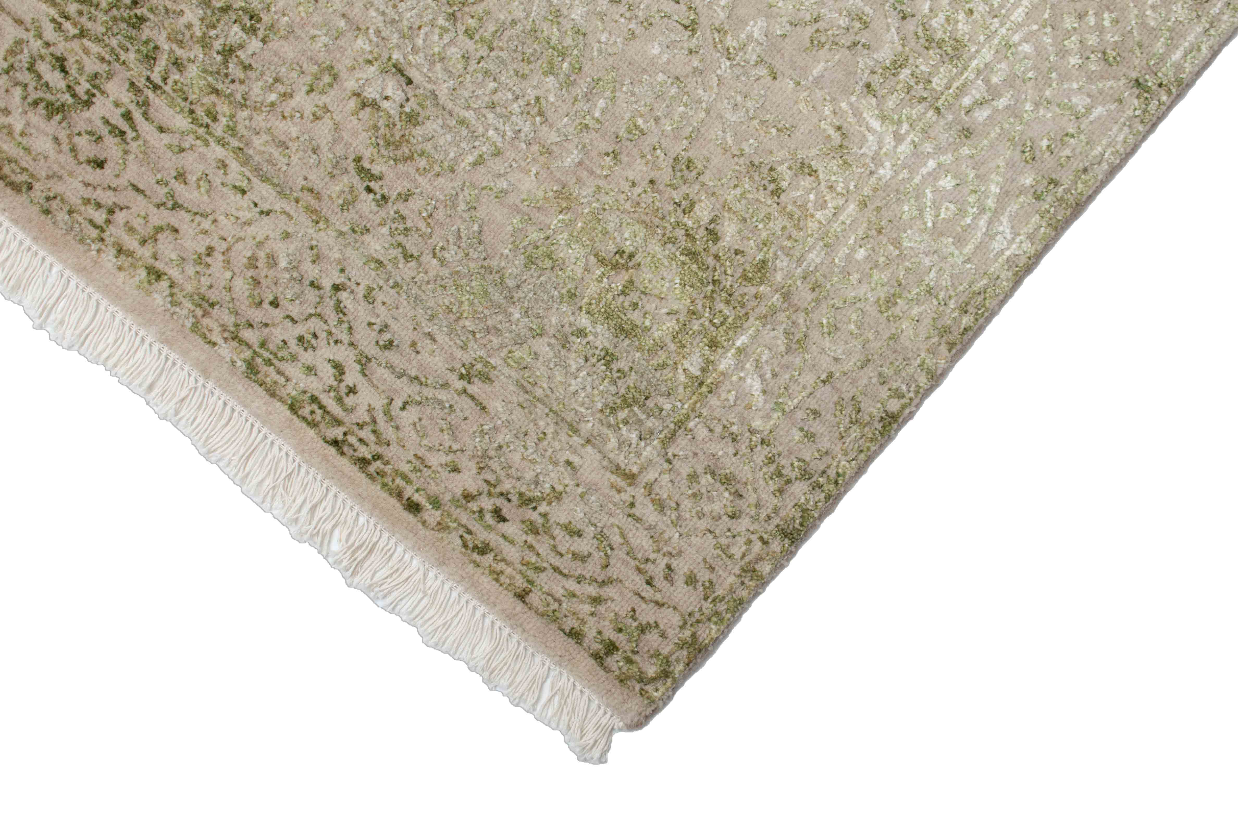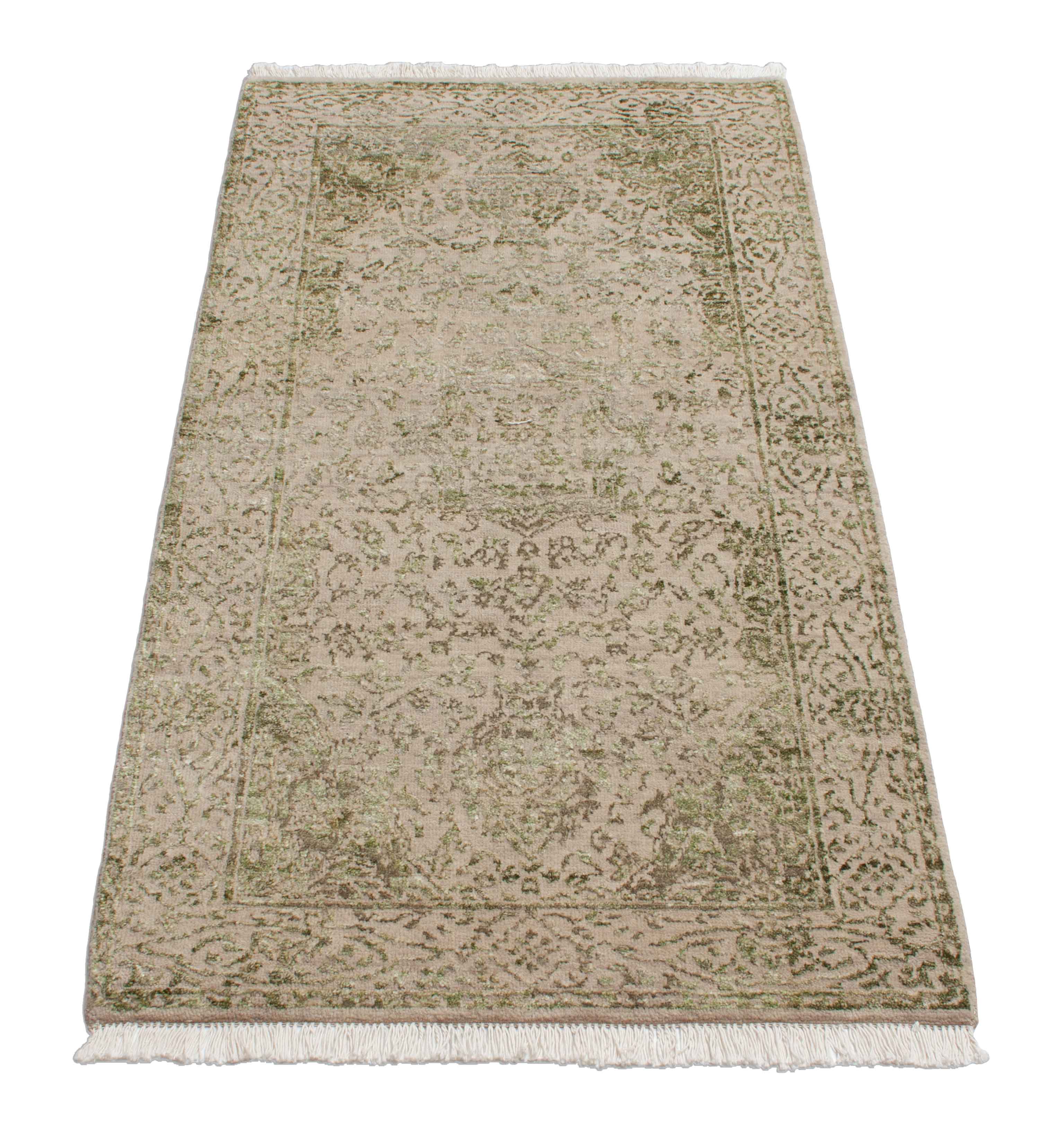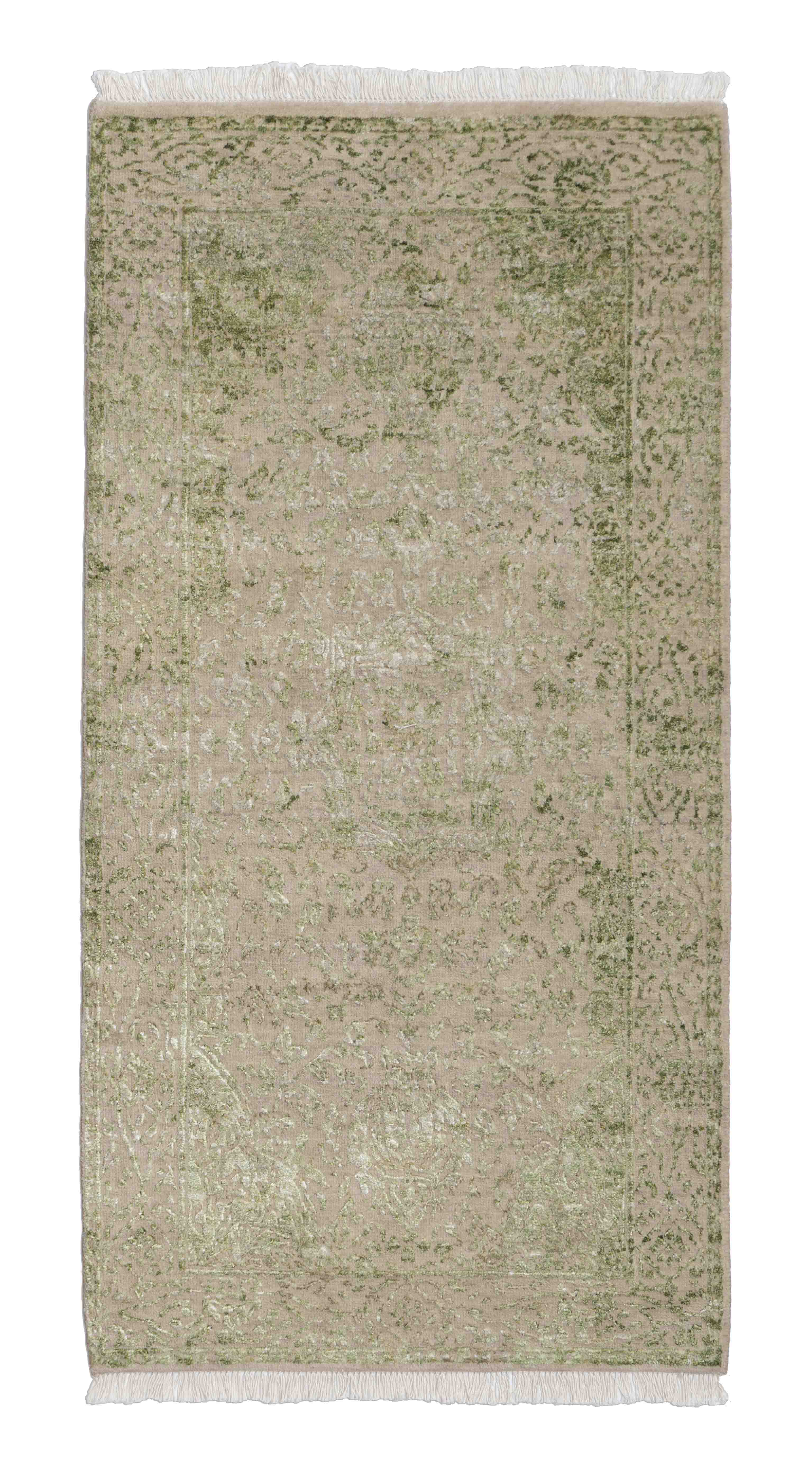 Le fond de ce New Teheran est Beige. Le bord est conçu dans les couleurs beige, vert clair et vert foncé. Dans le centre vert clair les couleurs vert foncé et brun clair sont combinés.