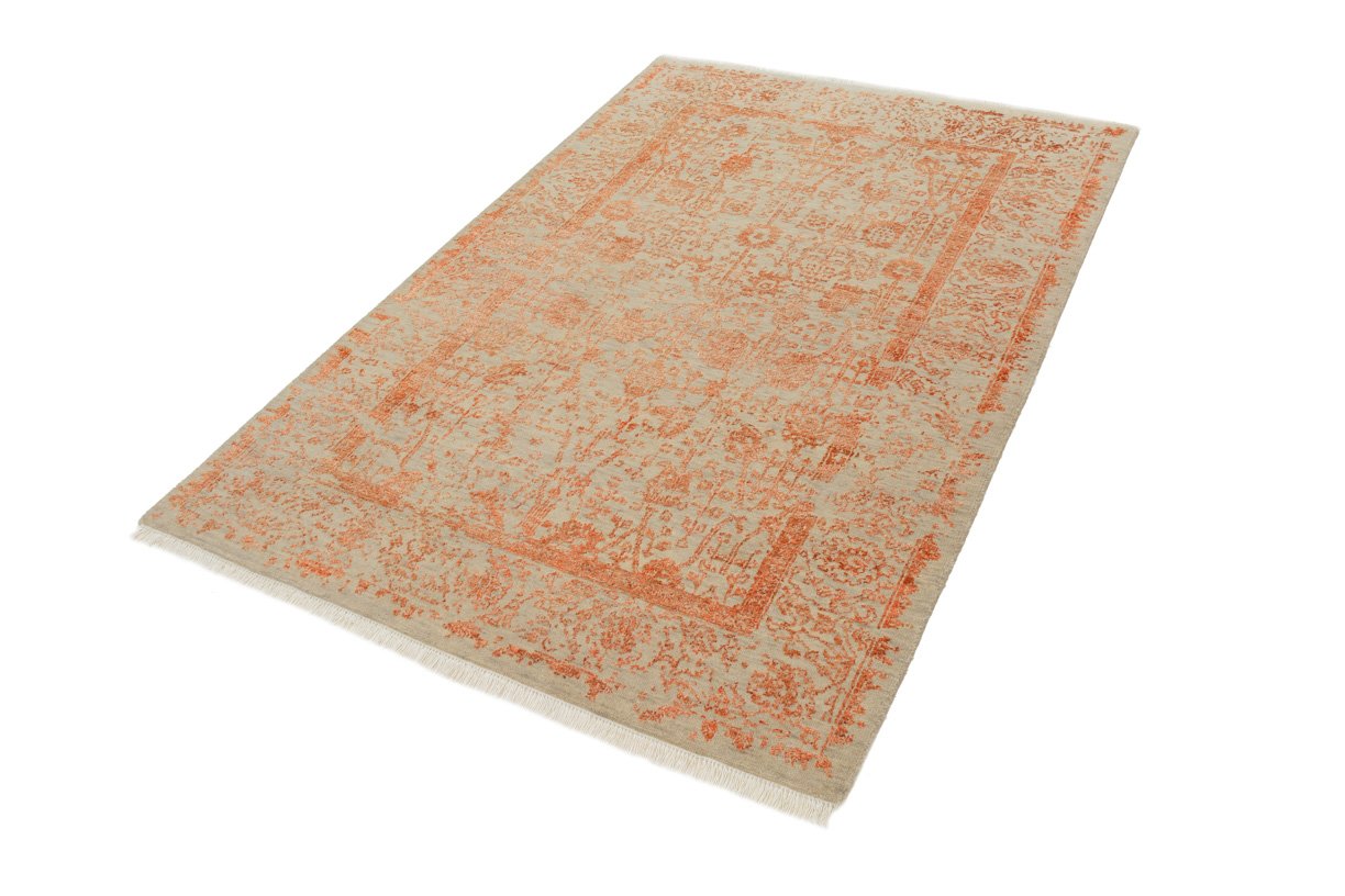 Le fond de ce New Teheran est gris beige. Les couleurs terracotta et gris beige dominent dans l'impression totale. Le bord est conçu dans les couleurs terracotta et beige gris.