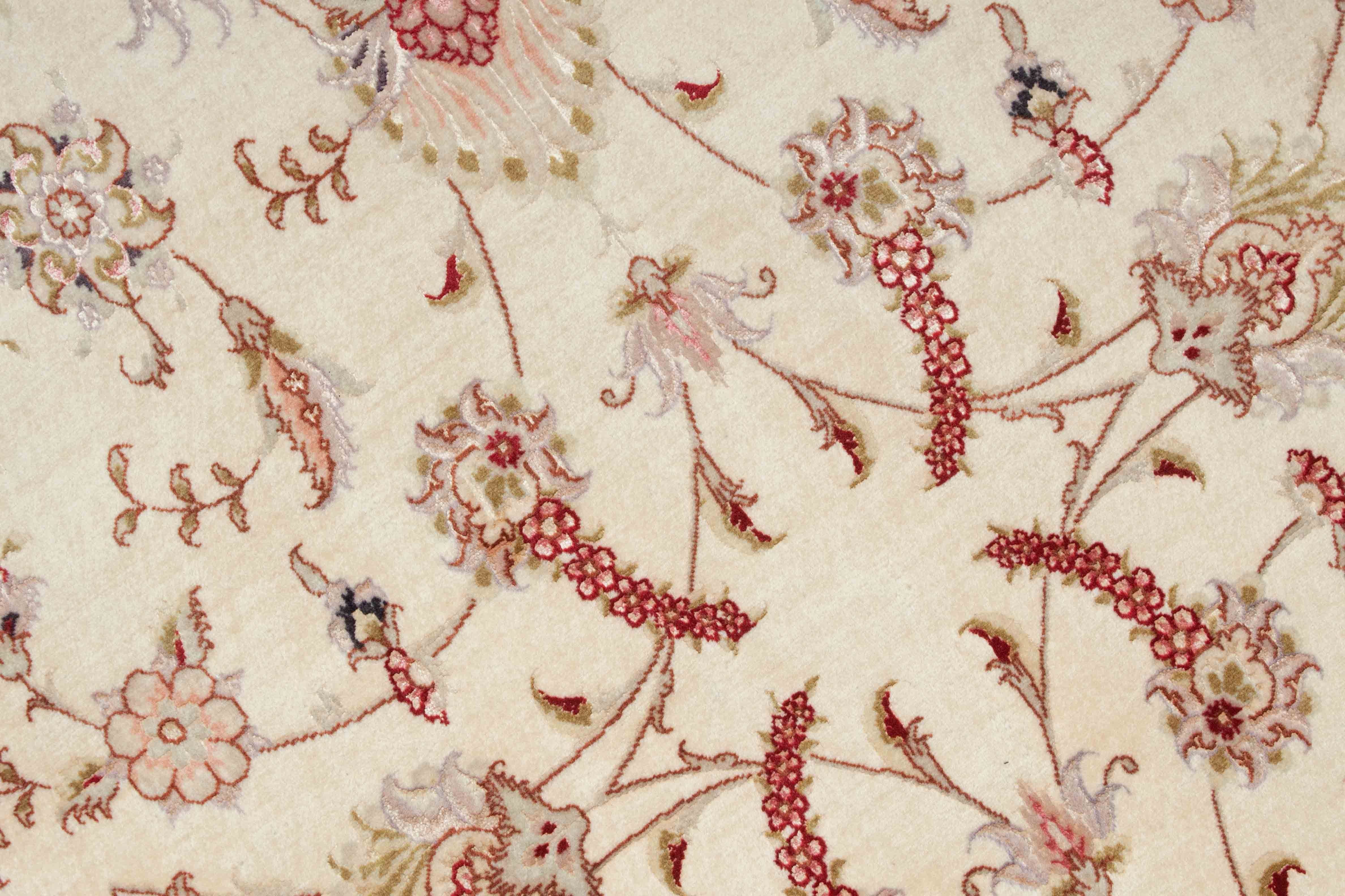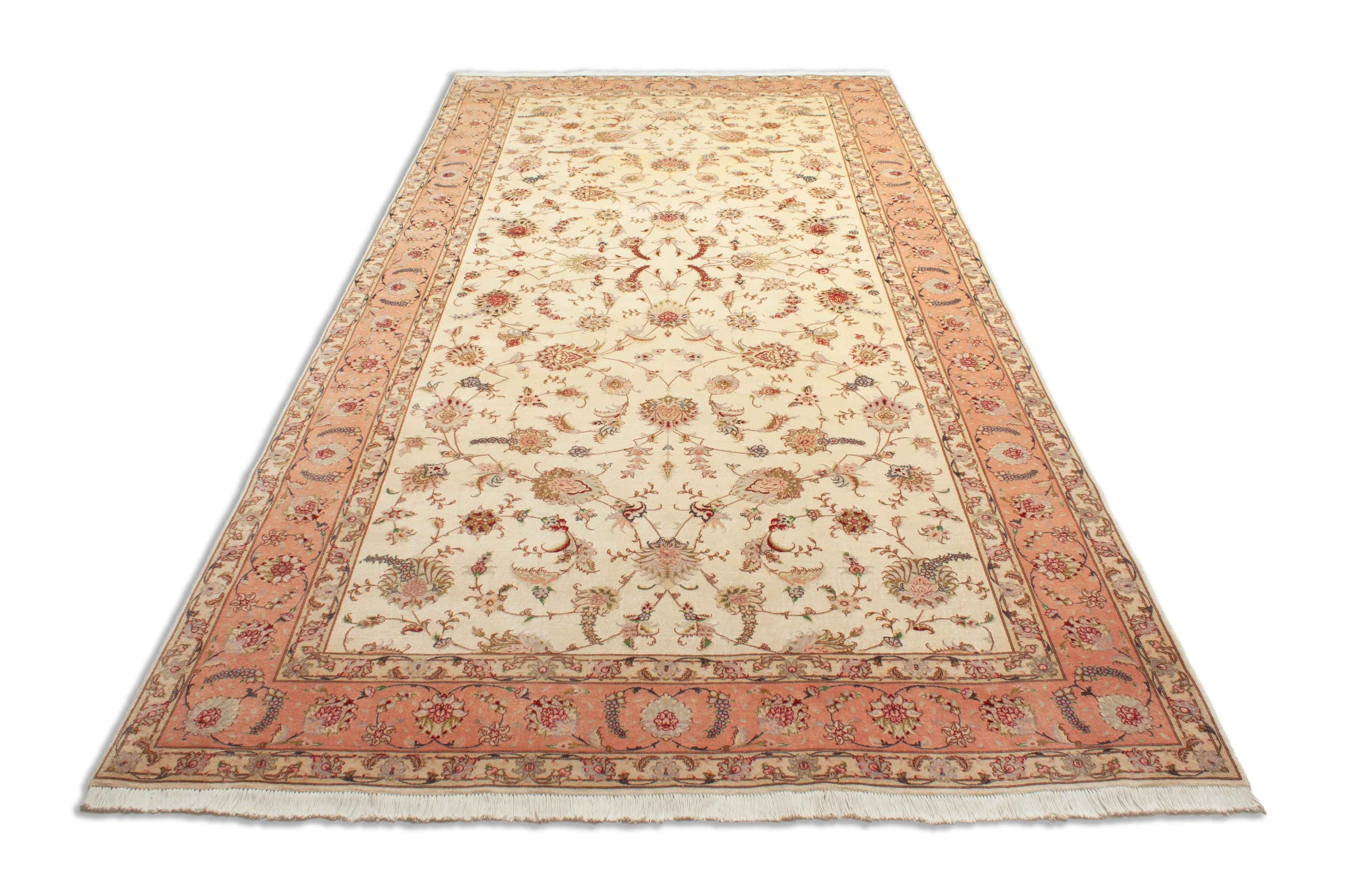 Le luxuriant Fleurs motifs ce Täbriz sont élégants et variés. Les symboles végétatifs gracieux qui représentent les fleurs, les feuilles et les branches sont artistiquement enchevêtrés.