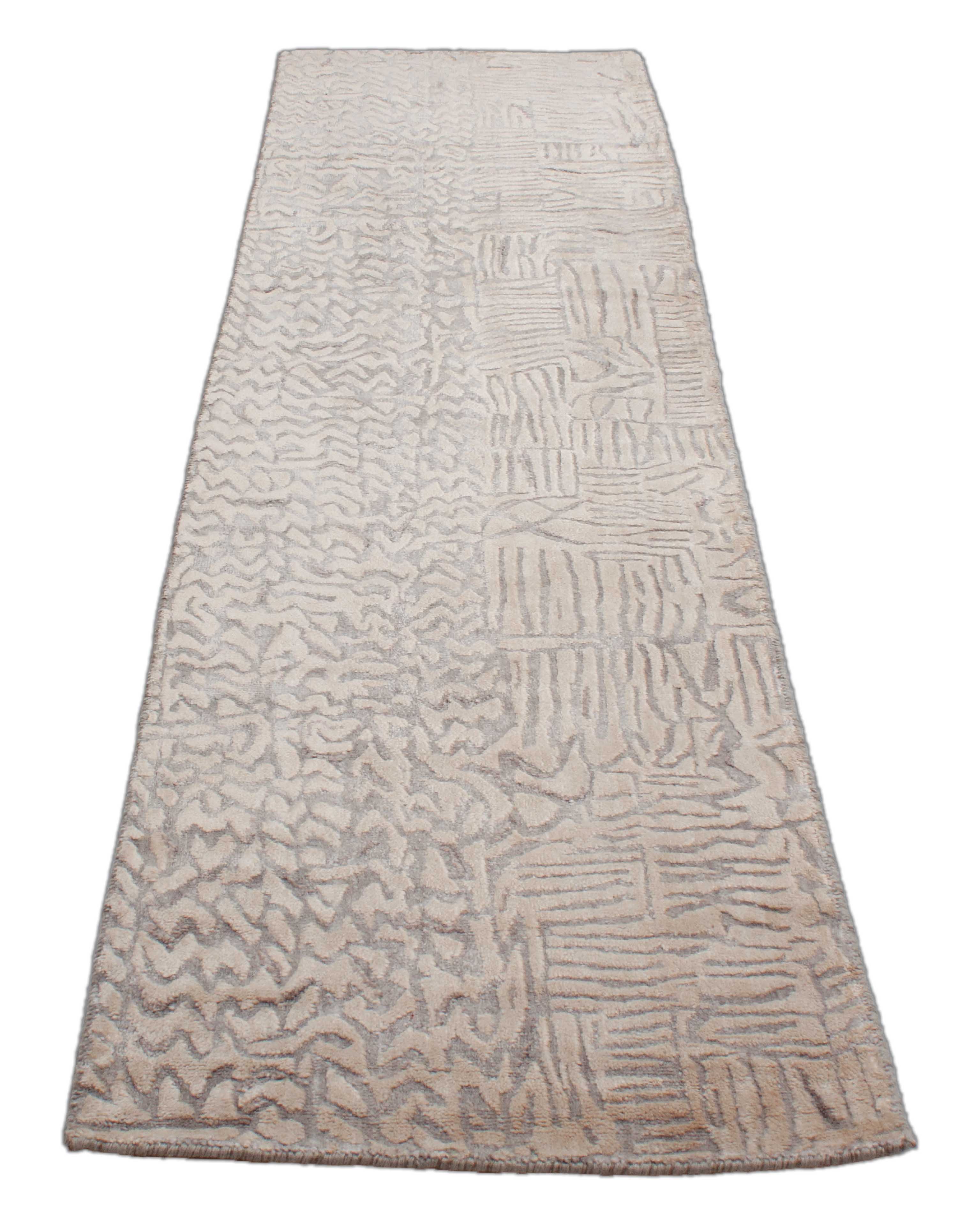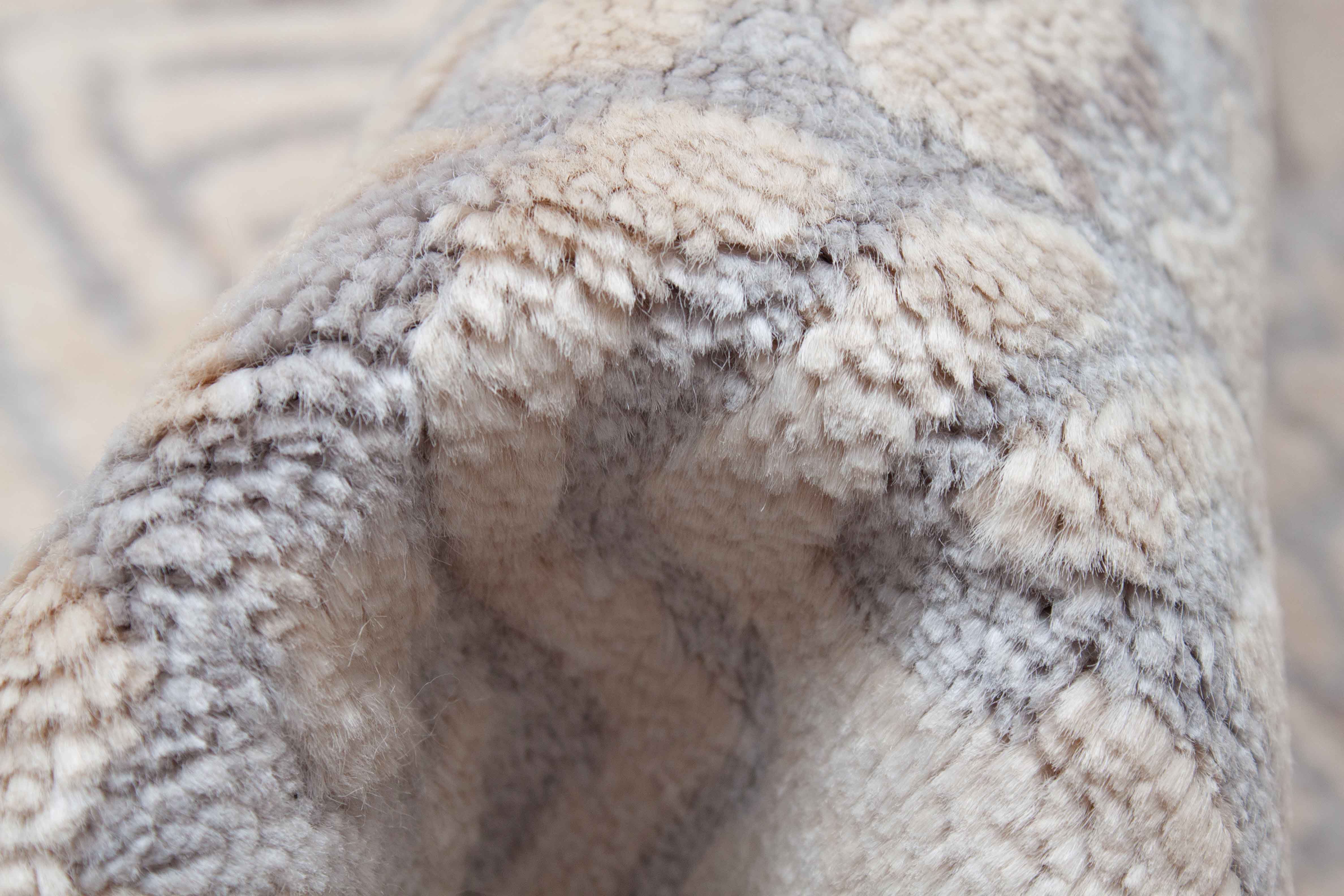 Les zones individuelles du motif ont une pile plus élevée que les autres parties de ce tapis. Les modèles de tapis modernes ont tendance à devenir plus simples et abstraits. The Jeu avec différentes hauteurs de pile est nouveau et a des modèles plus compliqués et plus pénétrants. En soulignant la partie bidimensionnelle du motif, cependant, le tapis ne semble pas ennuyeux. L'accentuation est exceptionnelle et a un effet unique.