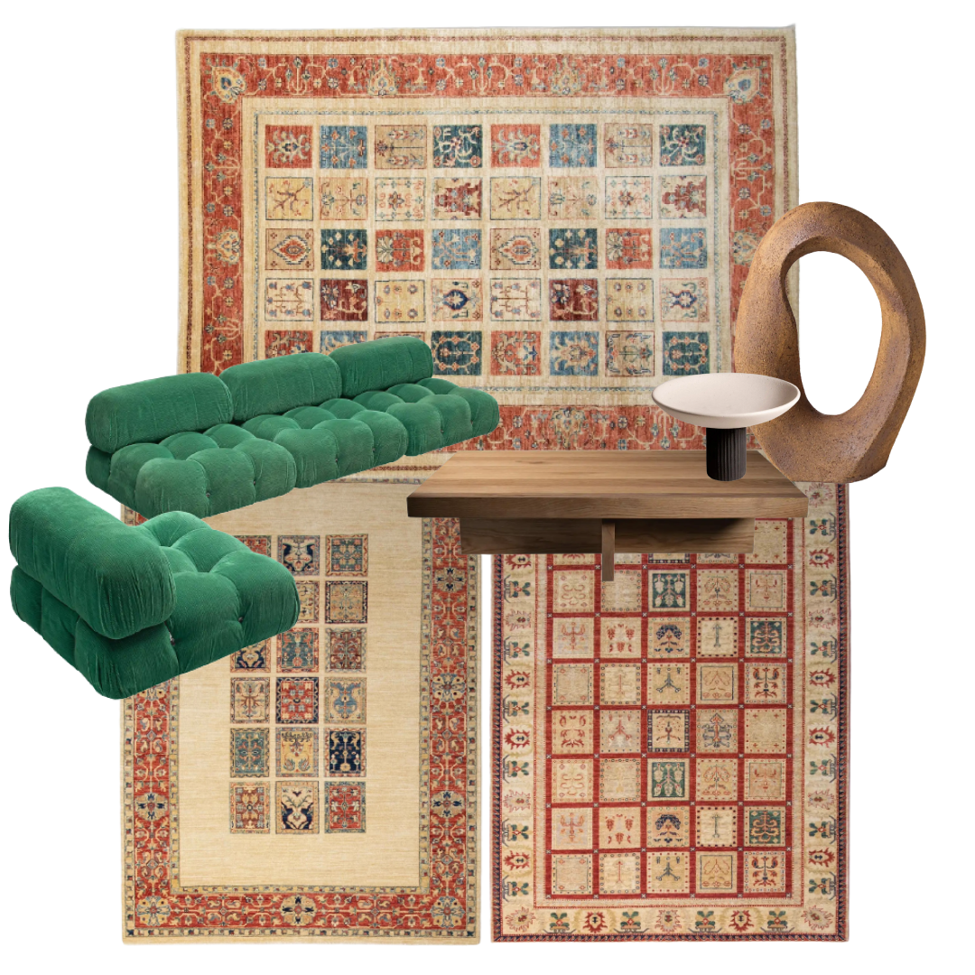 Unsere Mamlouk Teppiche sind eine Neuinterpretation des klassischen Musters, das sich durch zahlreiche unterschiedliche geometrische Formen auszeichnet, die dem Teppich eine kaleidoskopische Wirkung verleihen.