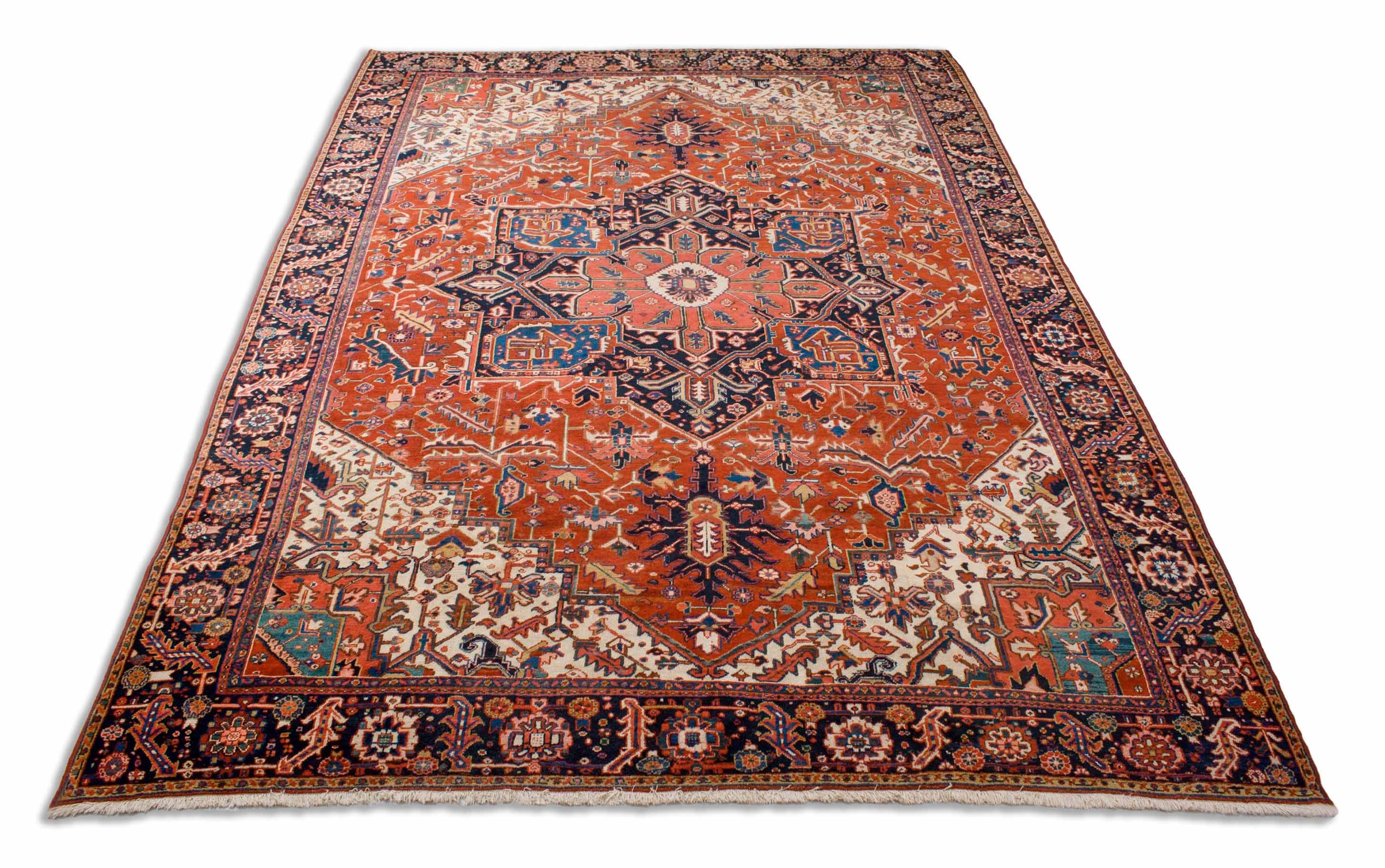 Heriz (auch Heris) ist ein wichtiger Herkunftsort für handgeknüpfte Teppiche. Heriz liegt ganz im Westen des Irans an der Grenze zu Azerbaidjan. Berühmt sind die Teppiche aus Heriz für ihr schönes geometrisiertes Design. Typische für Heriz Teppiche ist die glänzende Wolle mit einem fantastischen Kolorit. Dieser alte Heriz ist rund 100 Jahre alt und ein echtes Liebhaberstück.