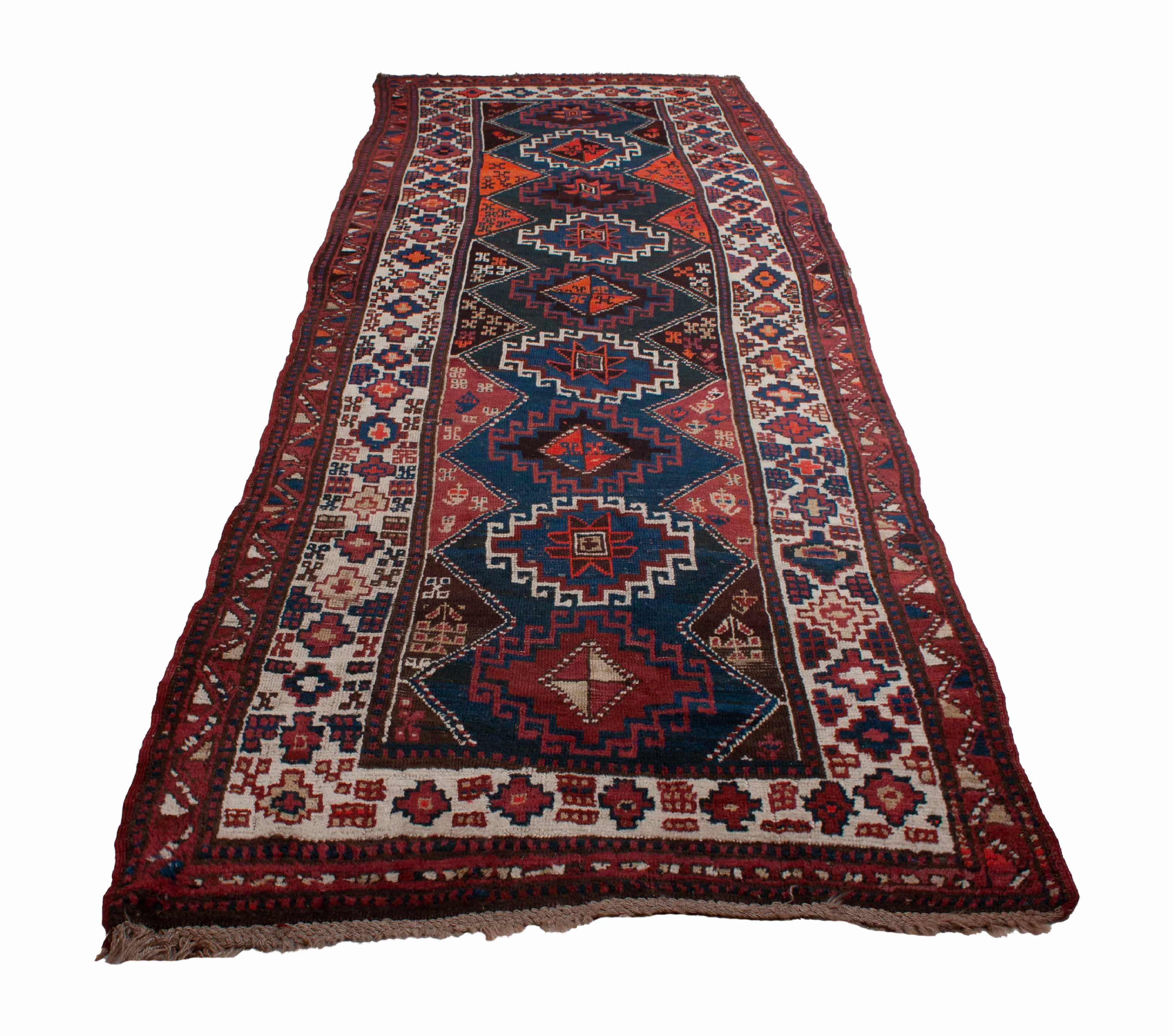Die Kazak (auch Kasak) Teppiche gehören zur Gruppe der kaukasischen Teppiche. Im Kaukasus werden seit Ende des 18. Jahrhunderts Teppiche hergestellt. Charakteristisch sind die abstrakten geometrischen Stammes-Muster in Primärfarben. Typischerweise werden die geometrischen und seltener auch floralen Motive in kontrastreichen, intensiven Farben dargestellt. Im 19. Jahrhundert wurde ein beträchtlicher Teil der überwiegend in Dörfern produzierten Teppiche unter russischer Kontrolle in den Westen exportiert. Dieser alte Kazak ist rund 90 Jahre alt und ein echtes Liebhaberstück.