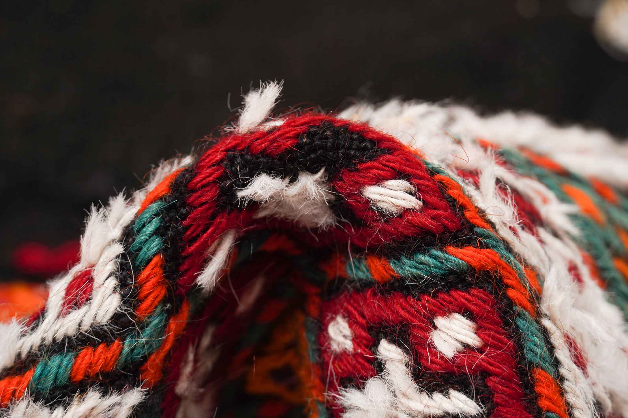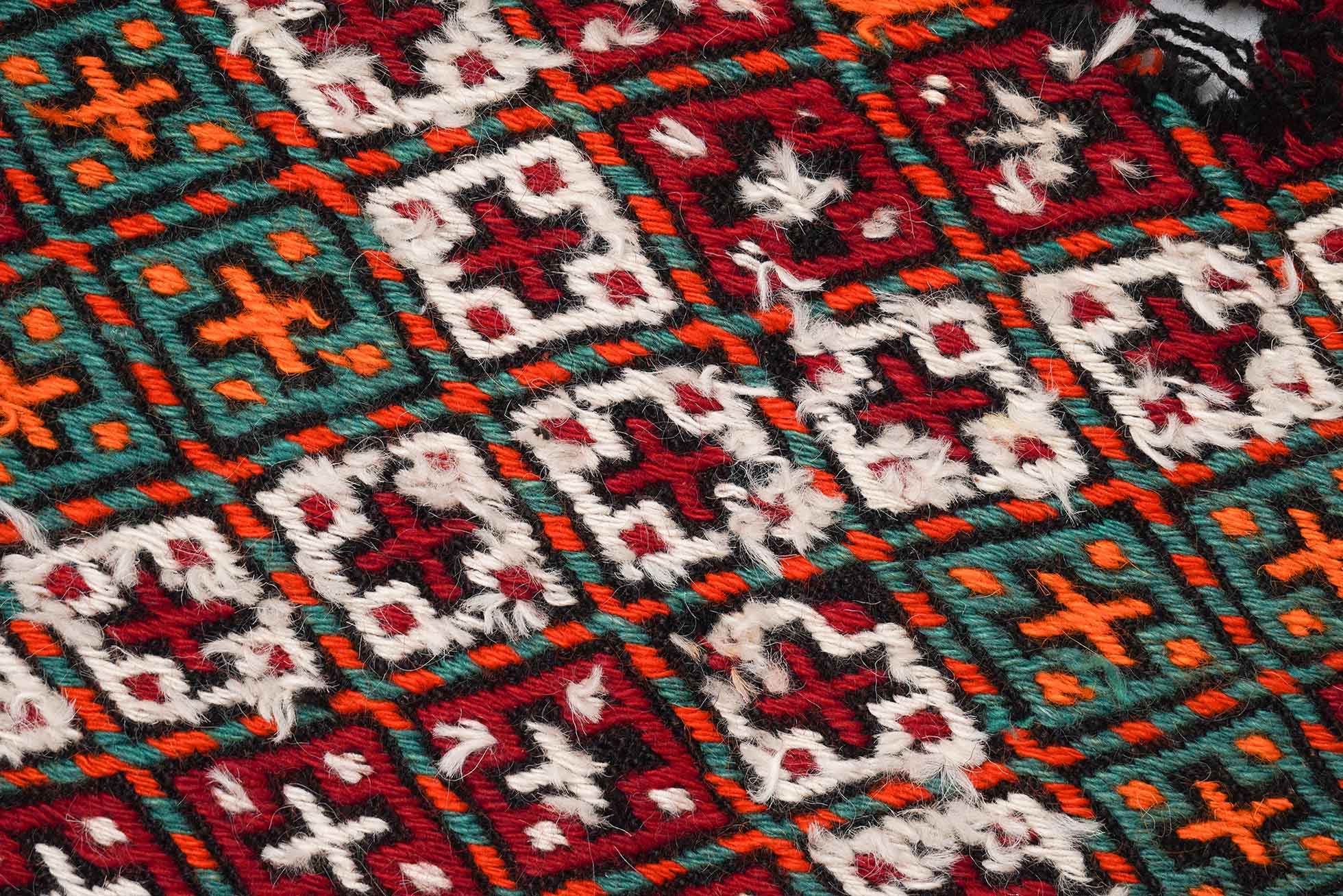 Die Farben dieses Kelim-Beutels leuchten bunt.