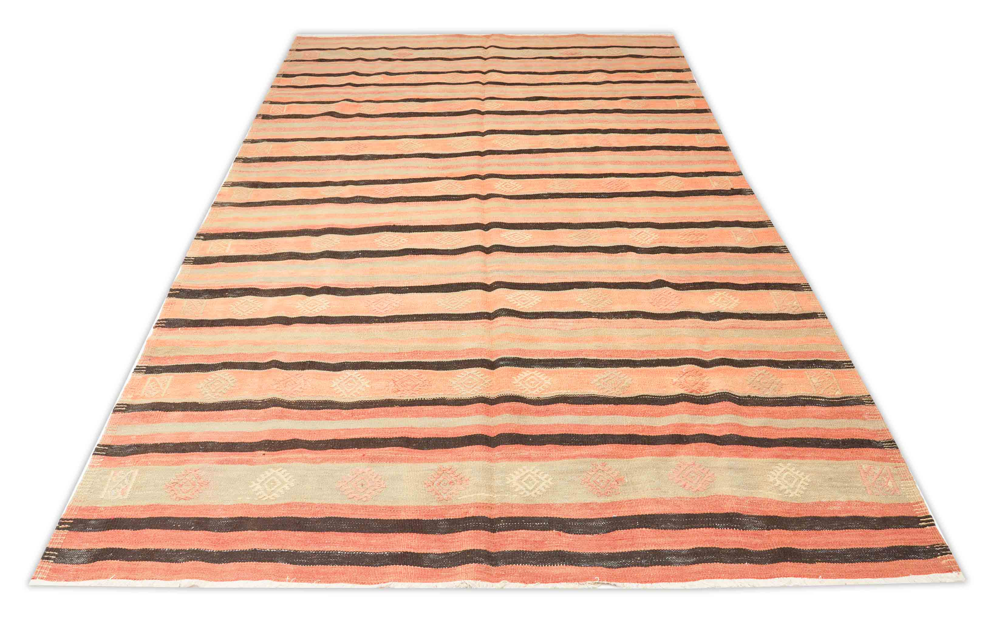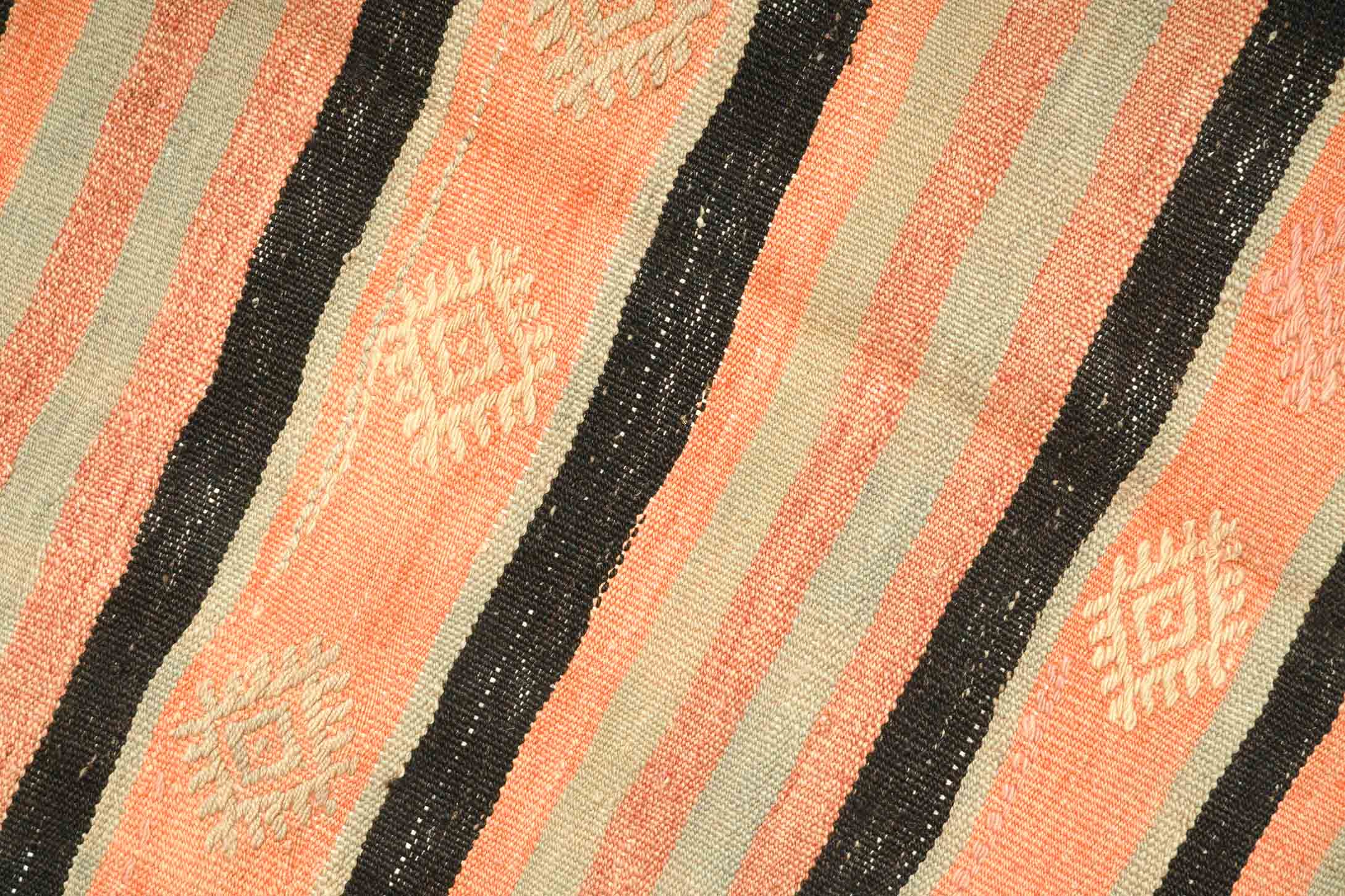 Die gradlinigen Streifen dieses Kelims ordnen und strukturieren das Muster.