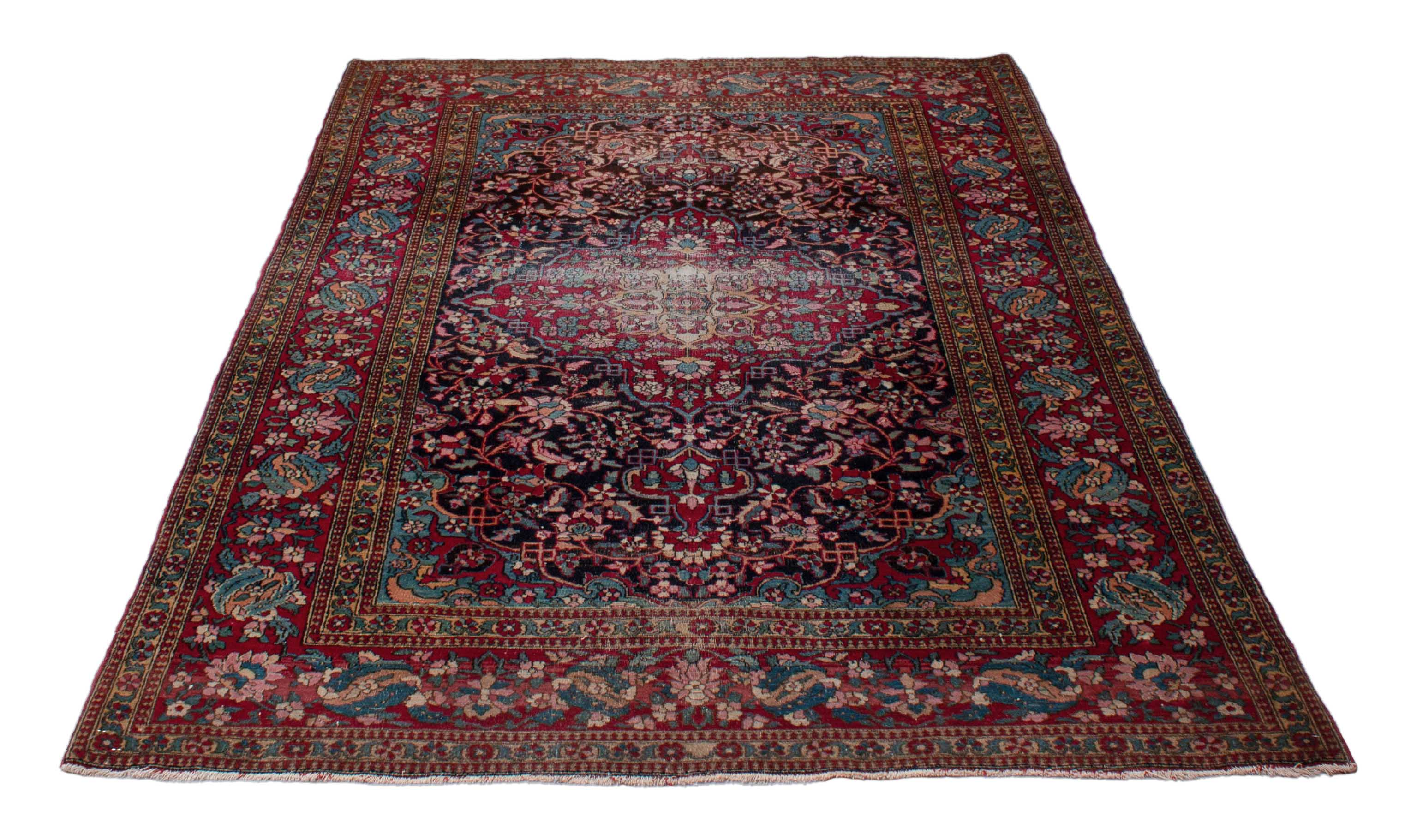 Floraler antiker Isfahan, dunkelblau mit Bordüre und Medaillon