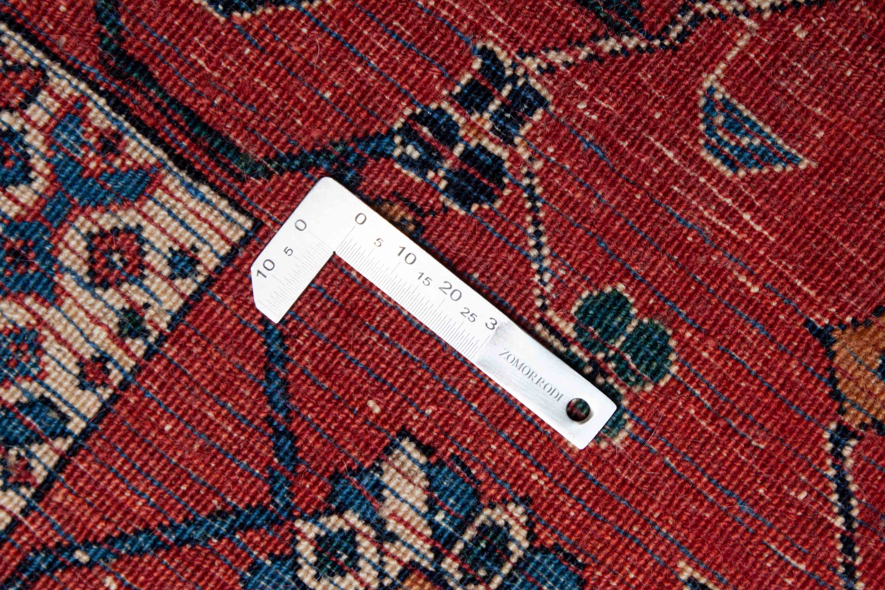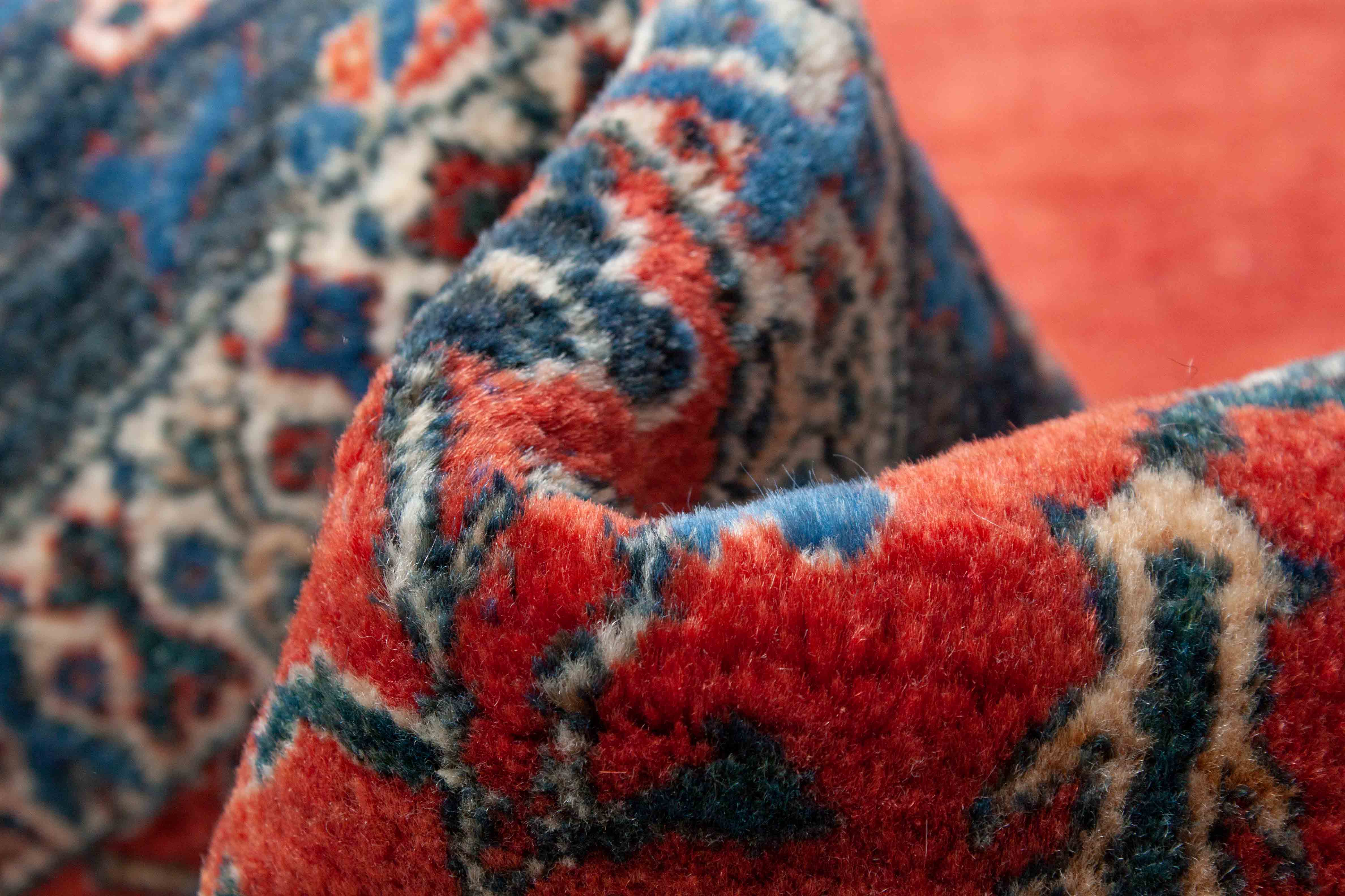 Ihr seid nicht die ersten, die Gefallen an diesem Bidjar finden. Er hatte bereits Besitzer vor Euch, die ihn geschätzt und benutzt haben. Der Teppich hat ledilich zwei kleinere Risse und einen kleinen Schaden an einer Ecke. Er wurde ca. 2000 handgeknüpft. Wir haben ihn gründlich gereinigt und liebevoll restauriert. Er ist daher – trotz seines Alters – in einem sehr guten Zustand.