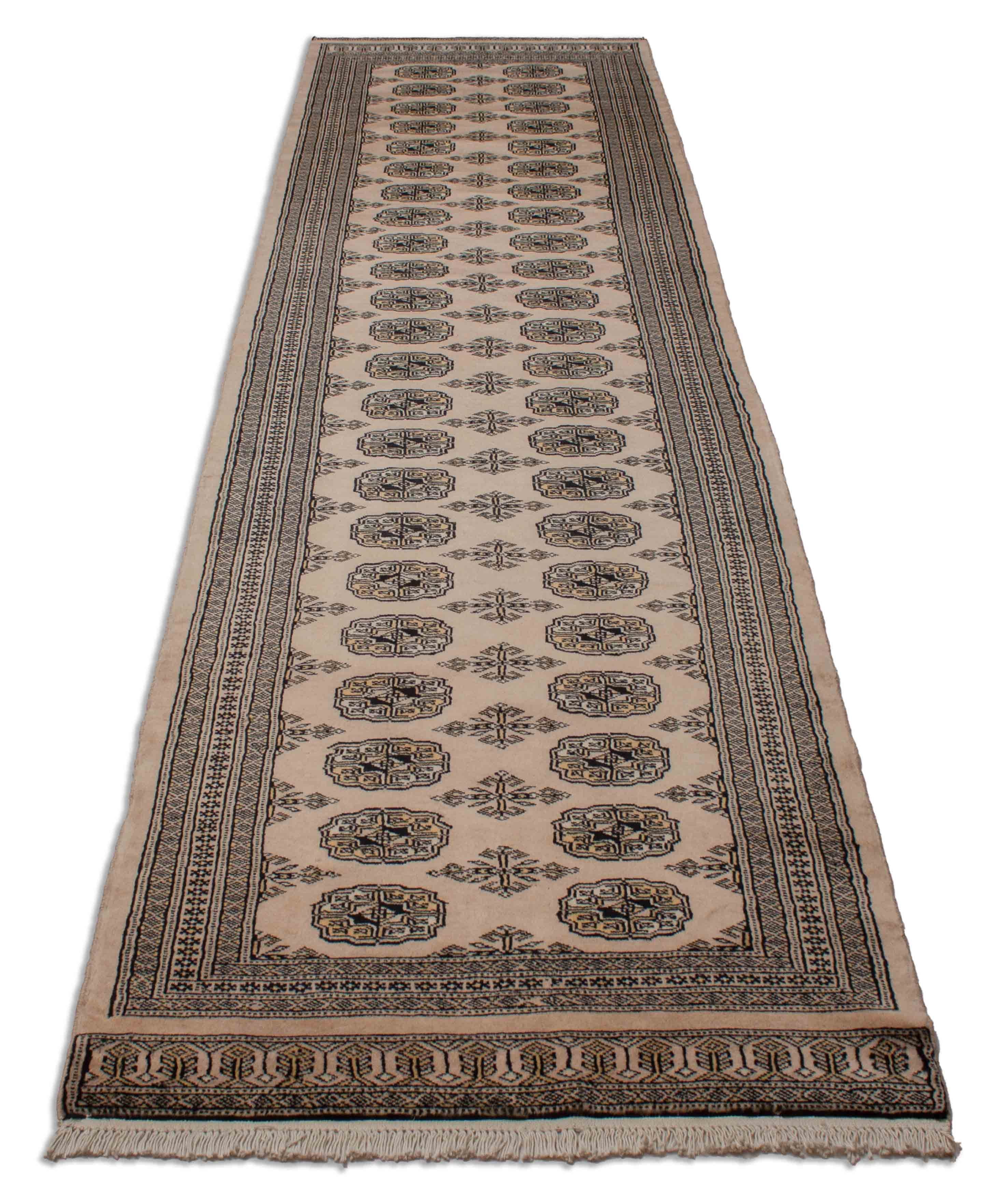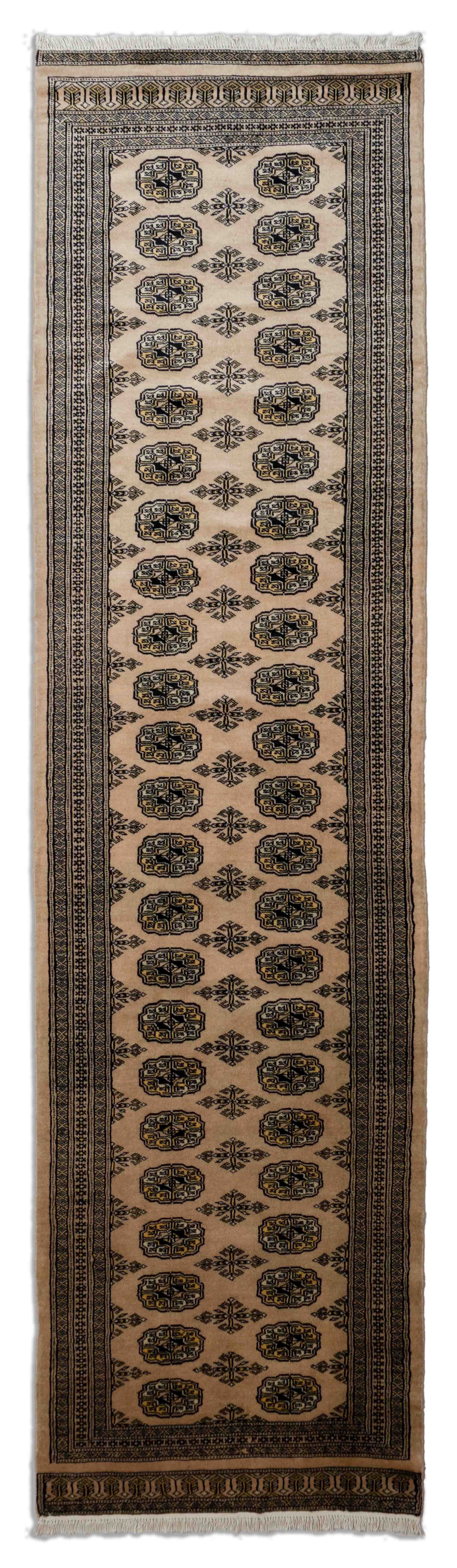Geometrischer Buchara Läufer, beige mit Bordüre