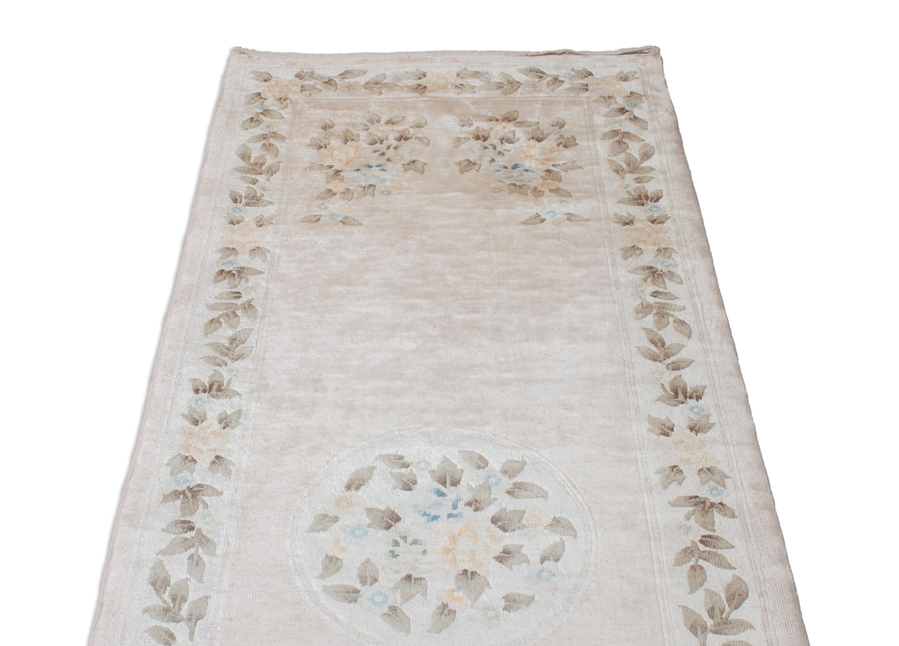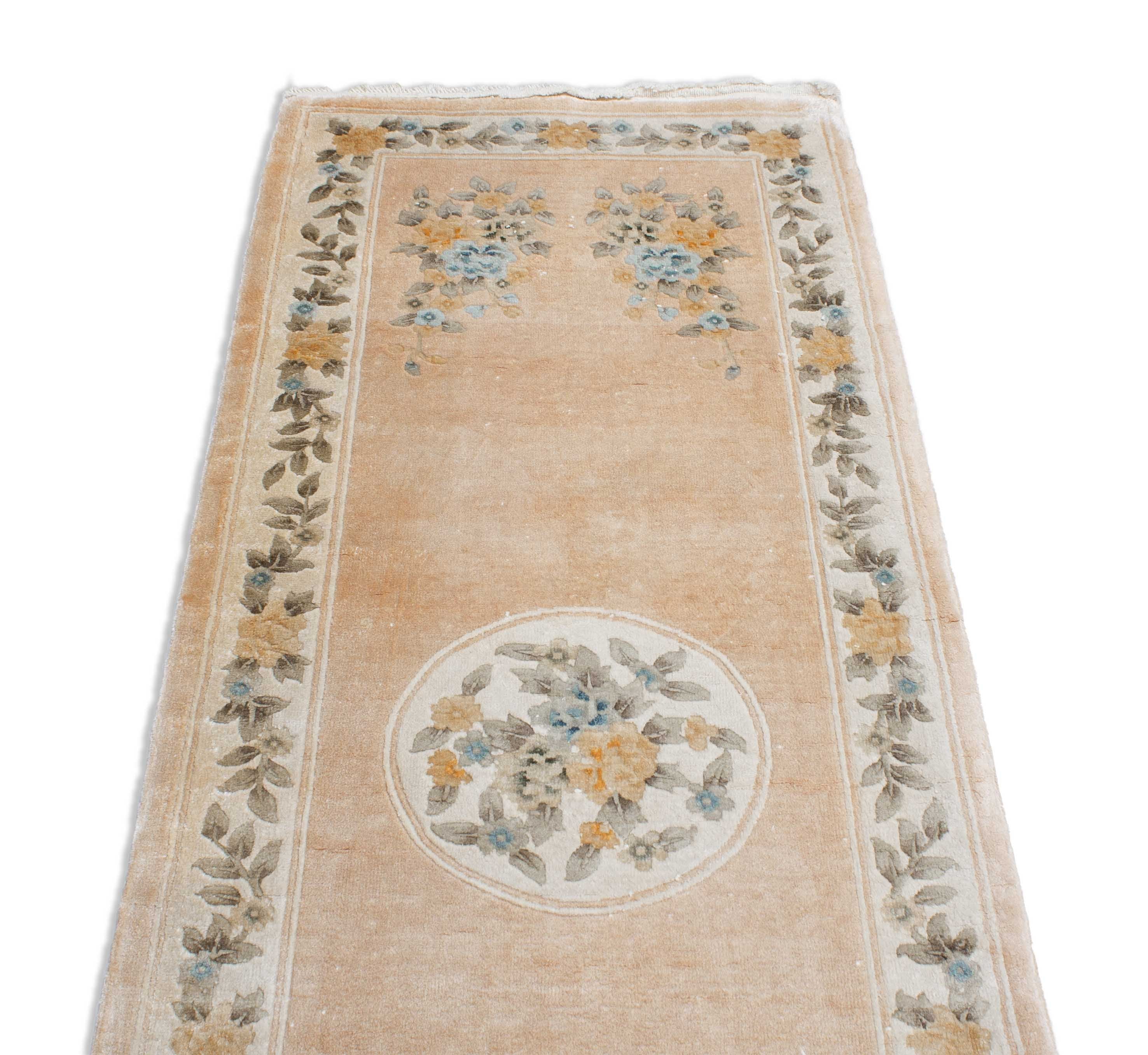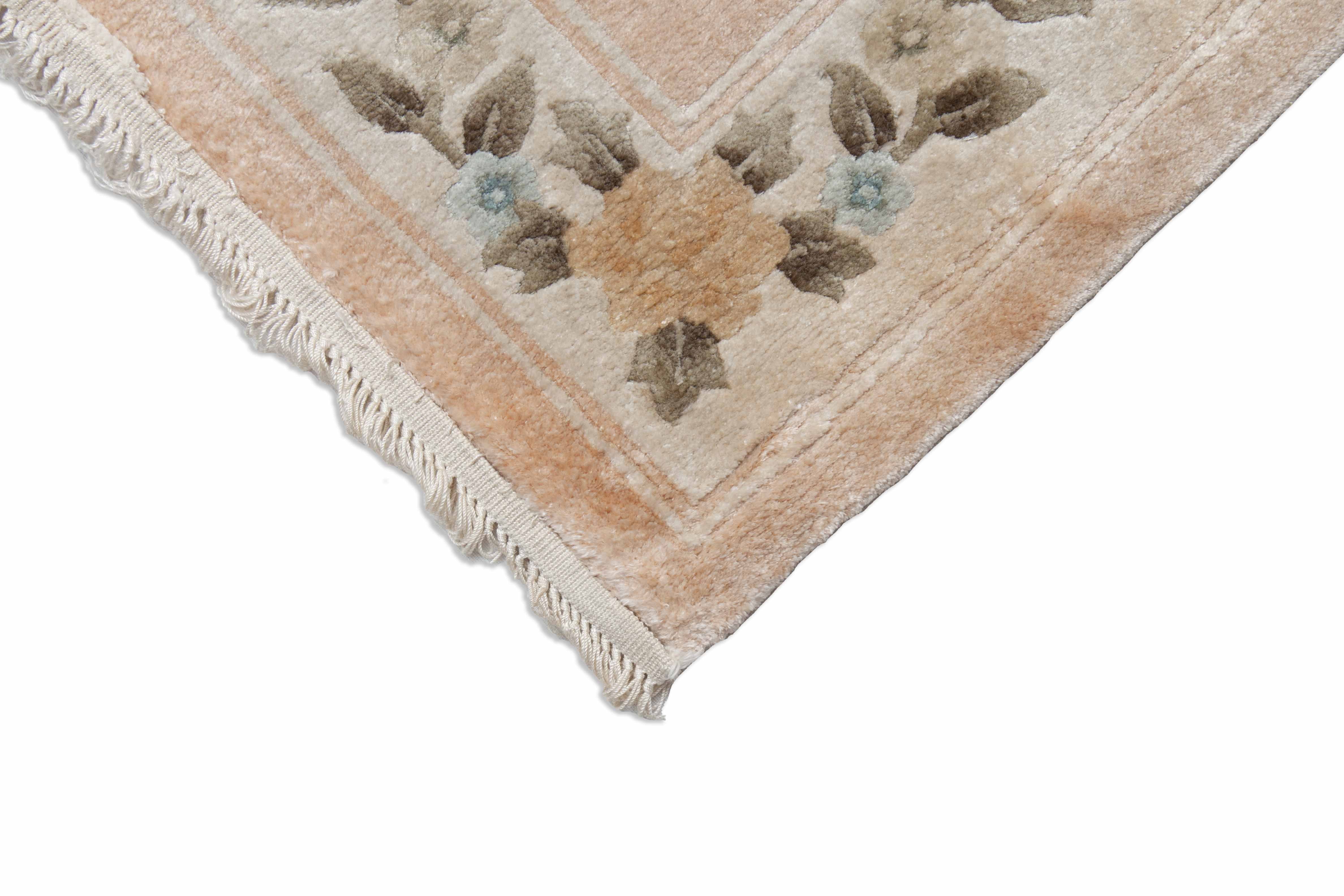 Floraler China Läufer aus reiner Seide, altrosa mit Bordüre und Motiv