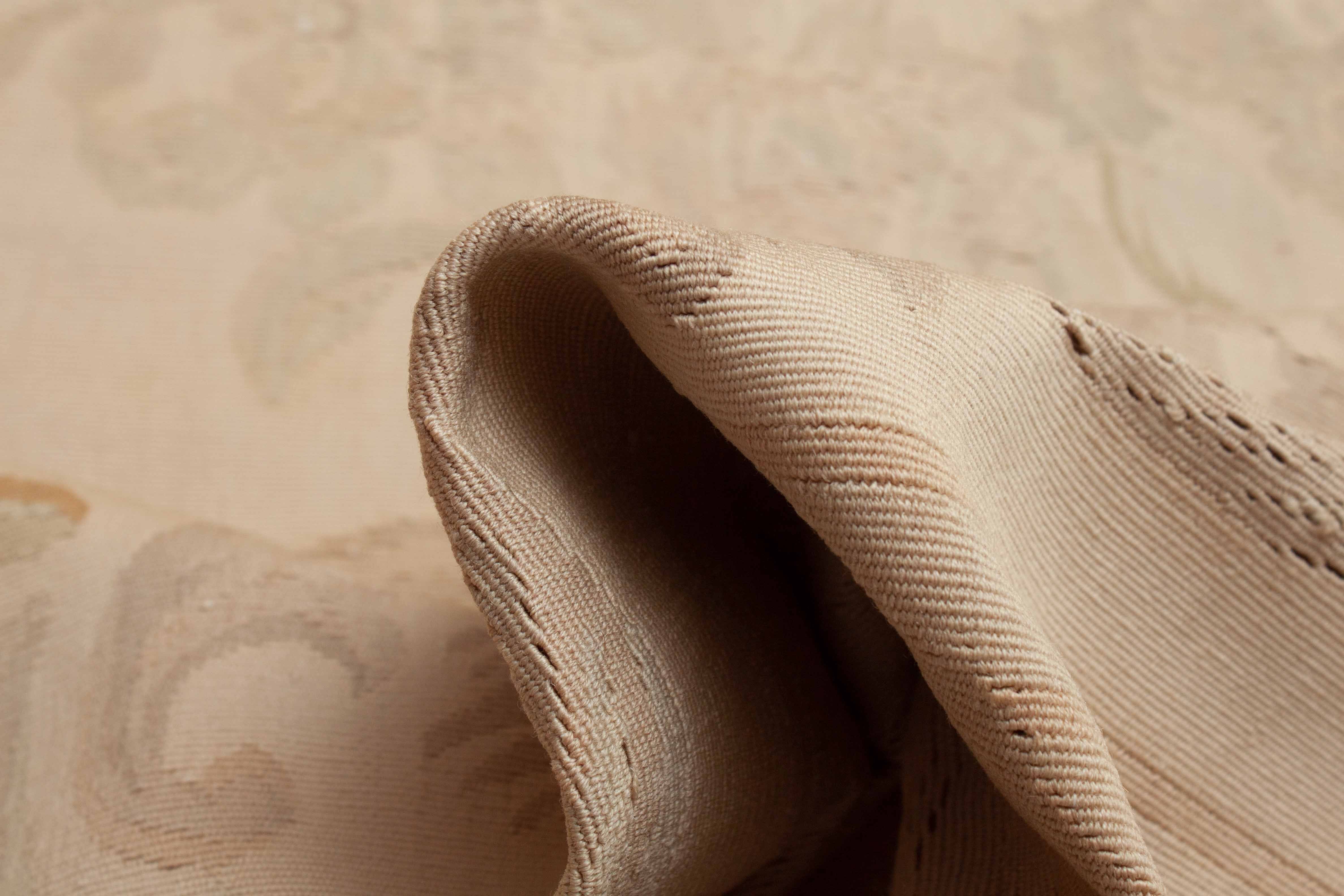 Die üppigen Blumenmotive dieses Aubussons sind elegant und abwechslungsreich gestaltet. Die anmutigen vegetativen Symbole, die Blüten, Blätter und Äste darstellen, sind kunstvoll ineinander verschlungen.