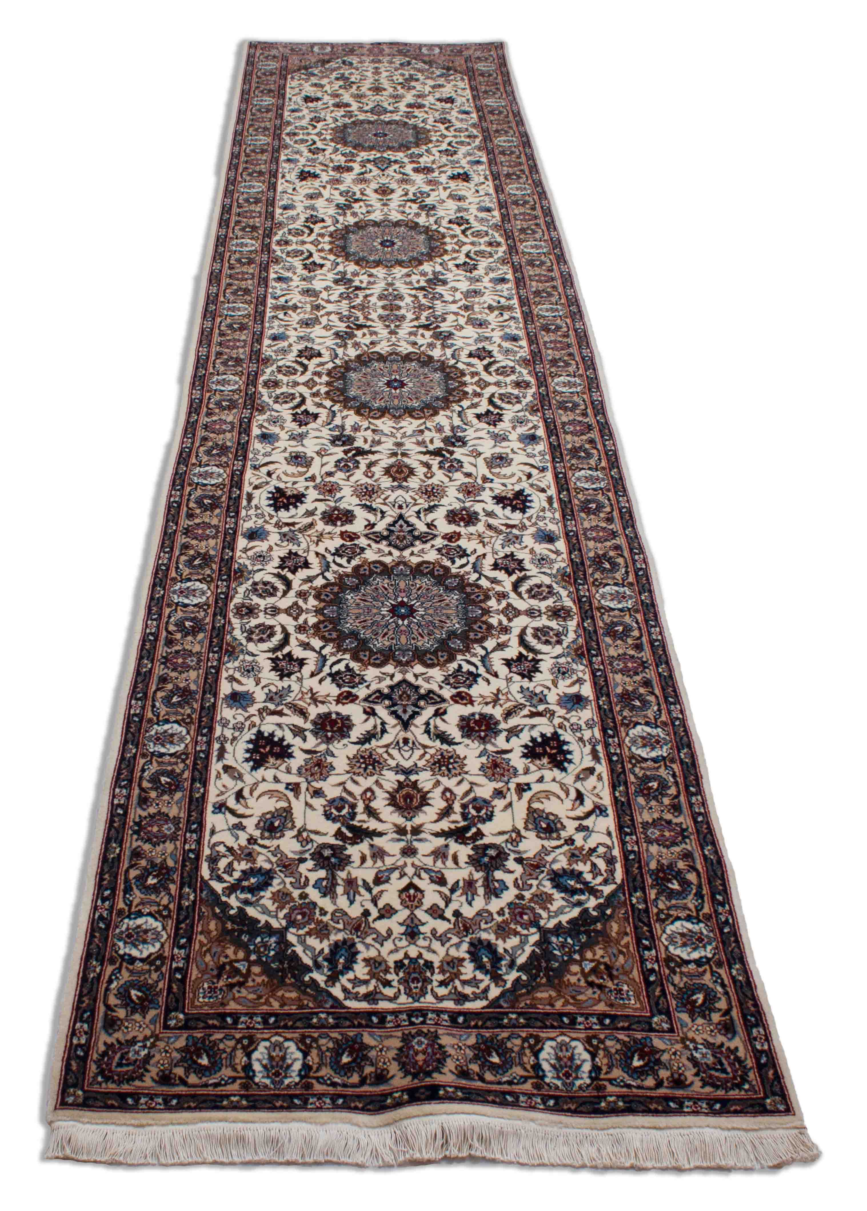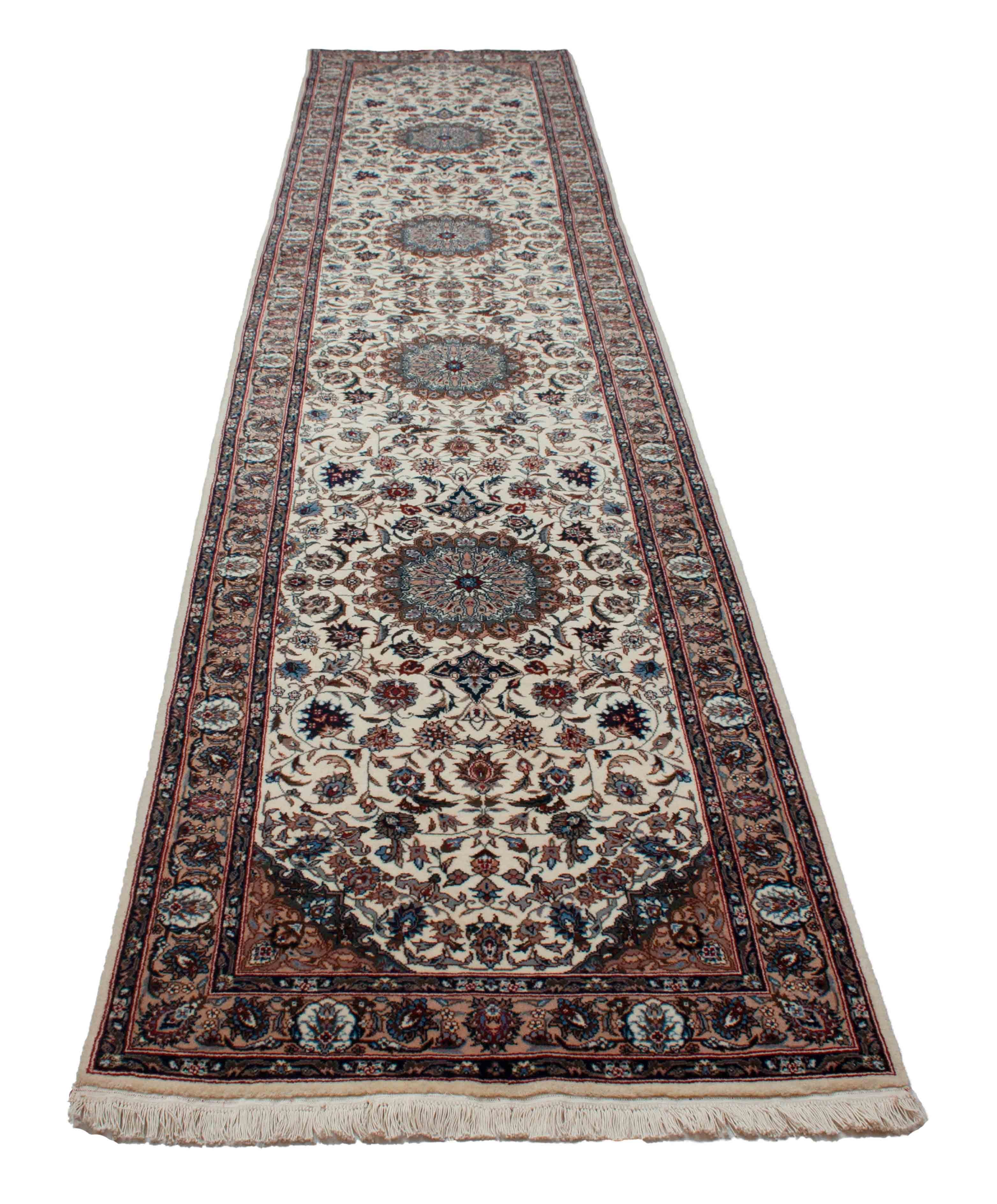 Floraler Chinesischer Keshan Läufer, creméweiß mit Bordüre