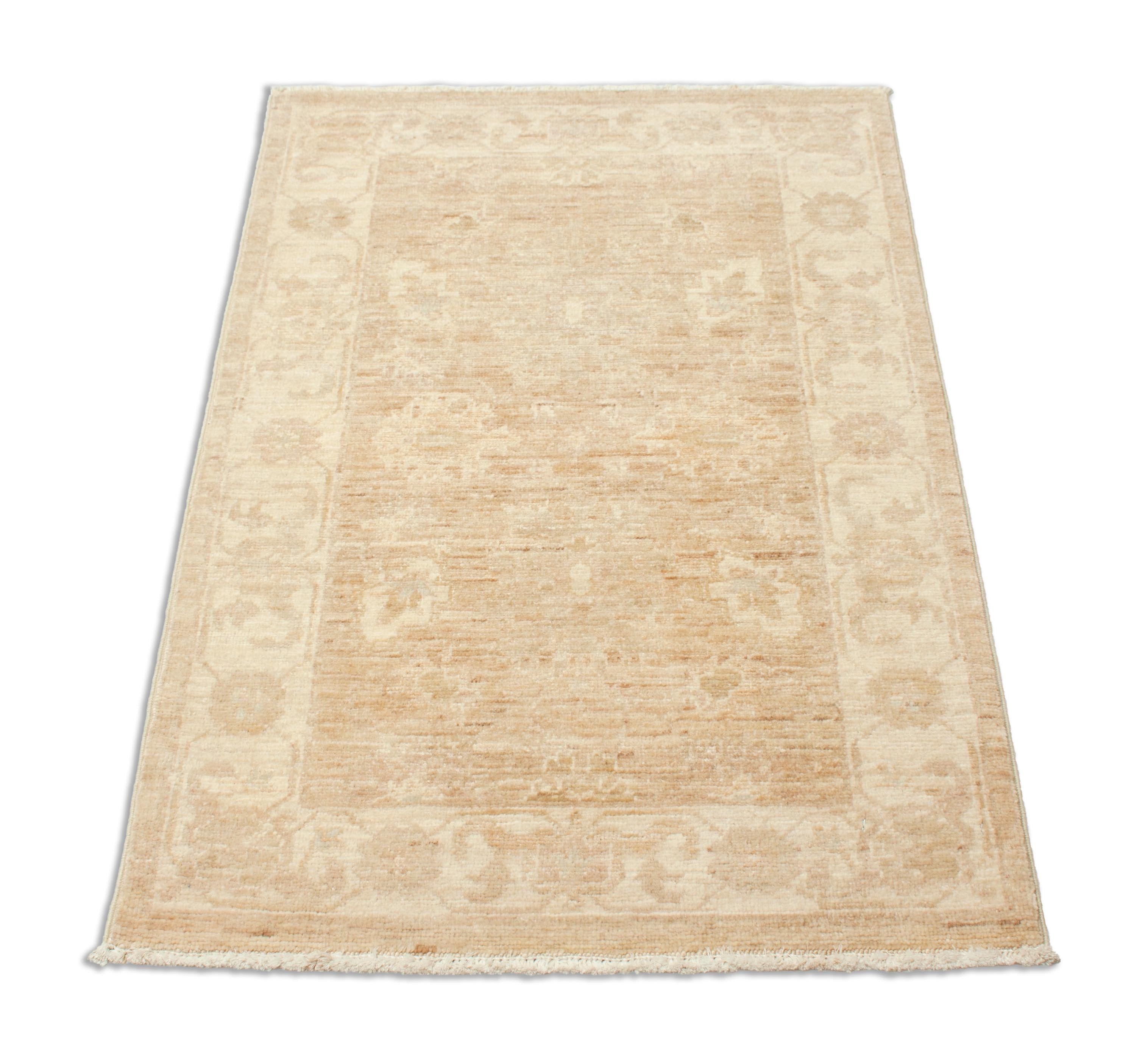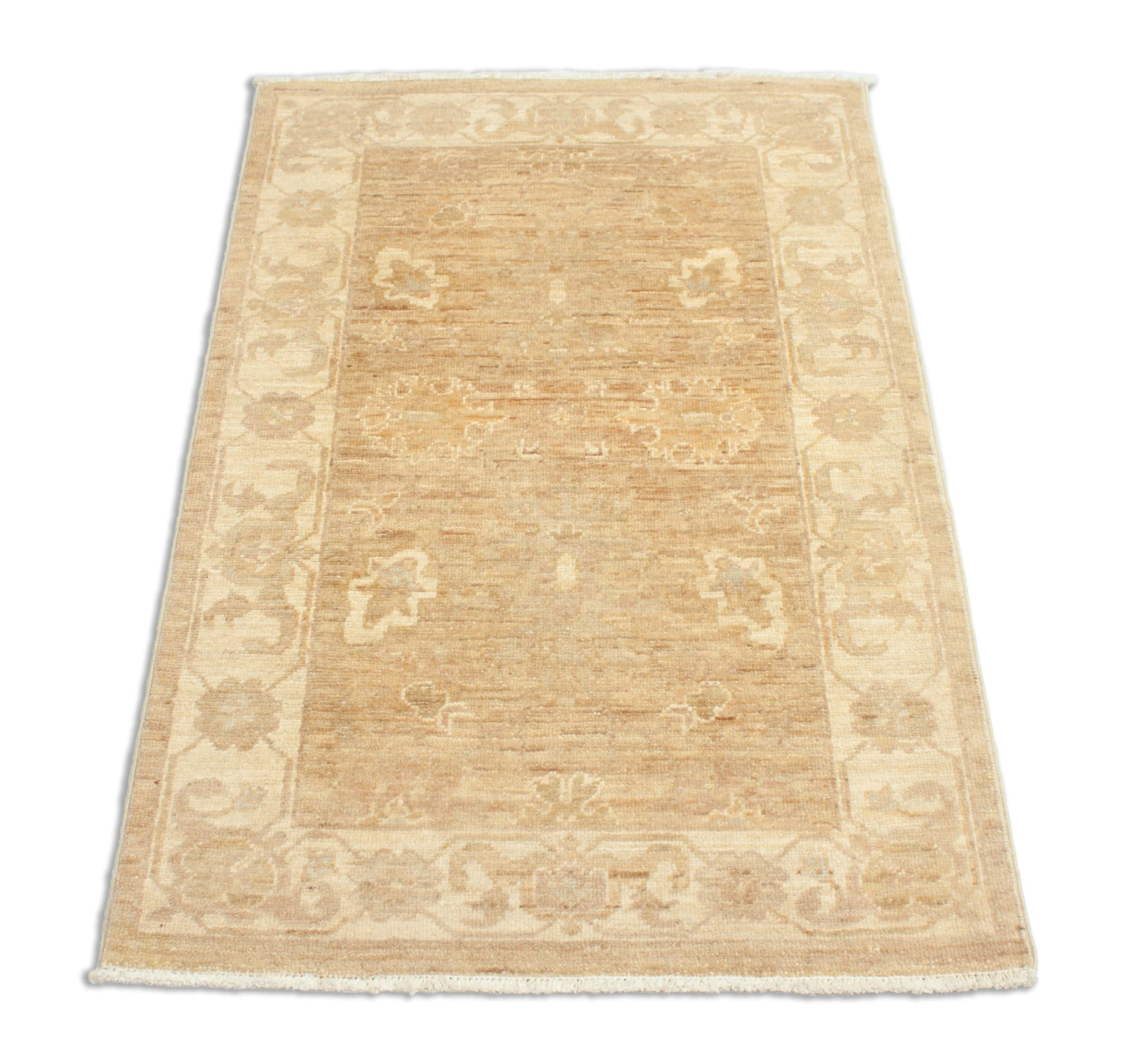 Der Hintergrund dieses Farahans ist Hellbraun. Der Rand ist in den Farben Beige und Hellbraun gestaltet.