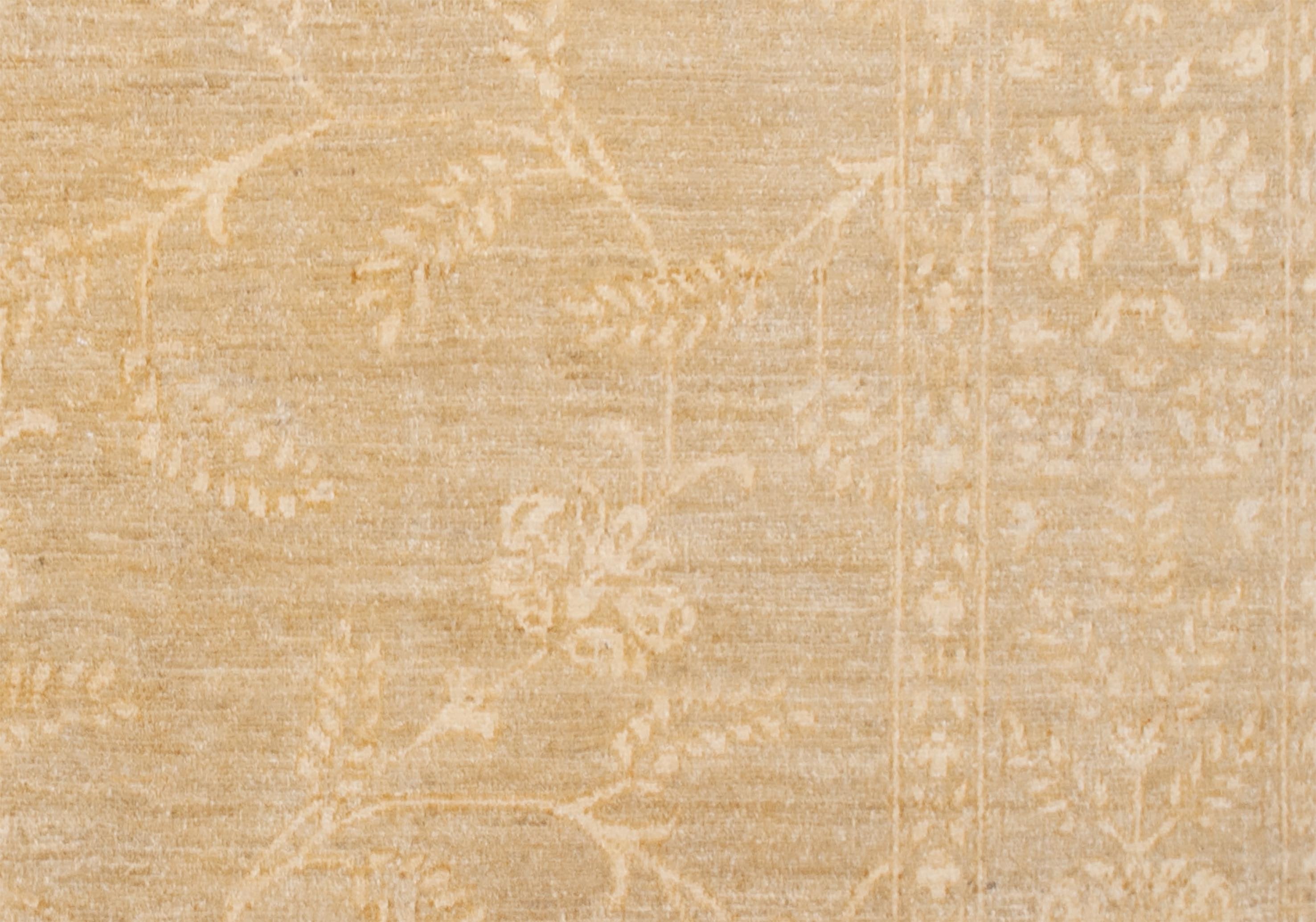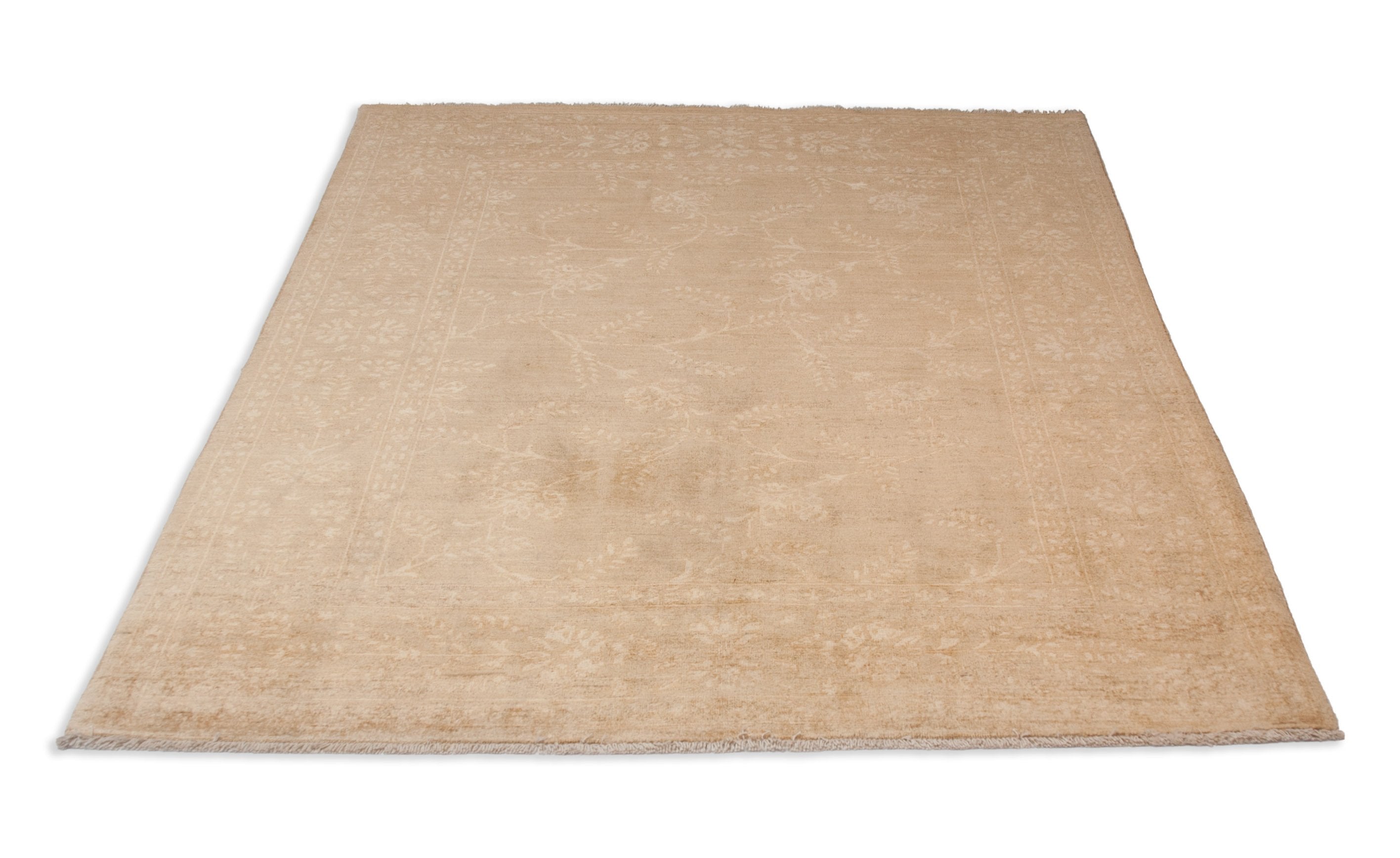 Der Hintergrund dieses Farahans ist Hellbraun. Der Rand ist in den Farben Hellbraun und Beige gestaltet.