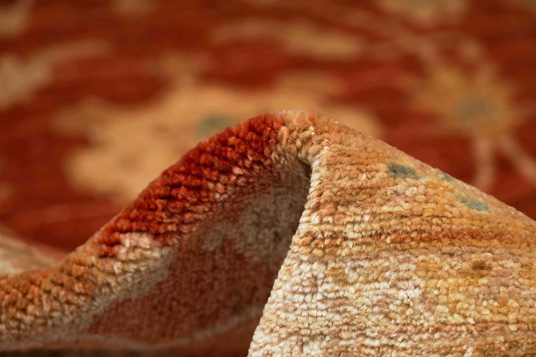 Der Hintergrund dieses Farahans ist Hellrot. Der Rand ist in Beige gehalten.