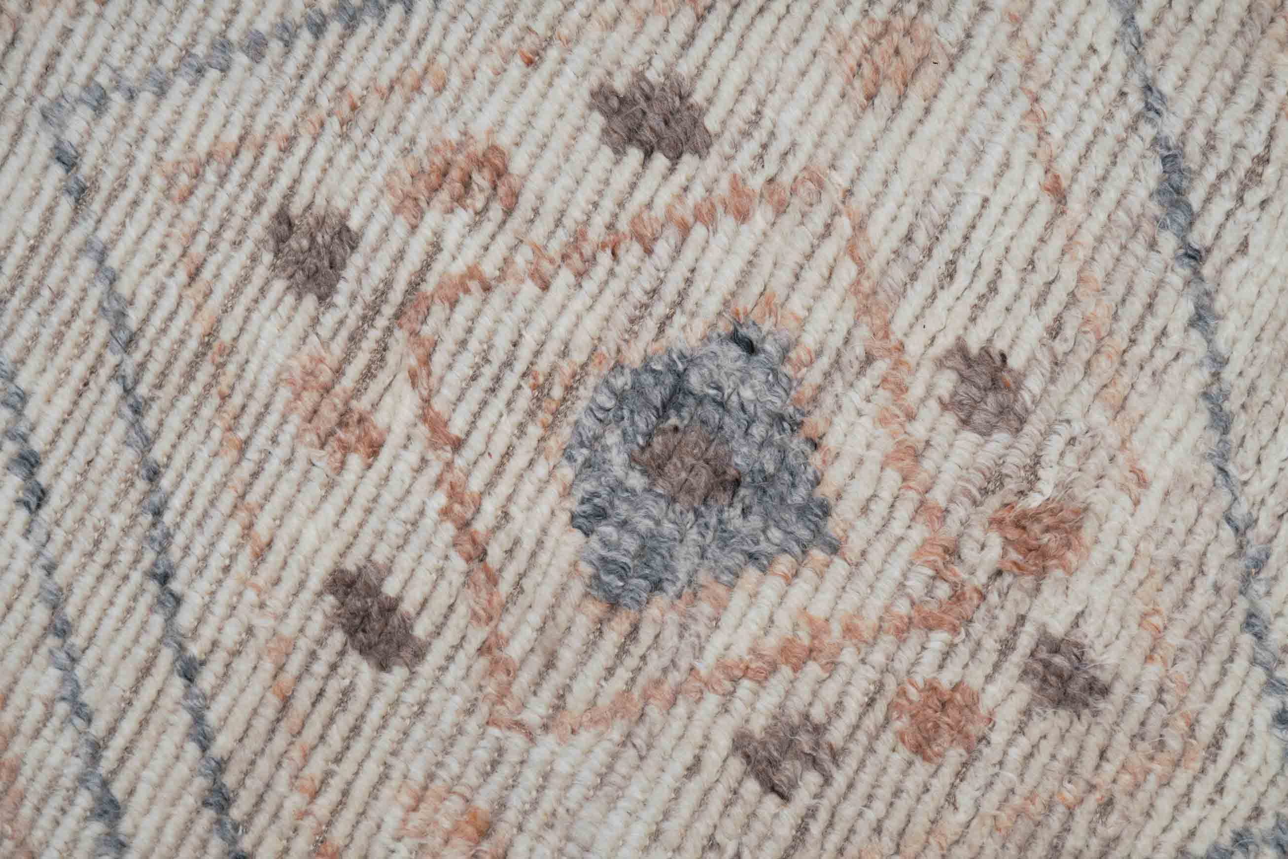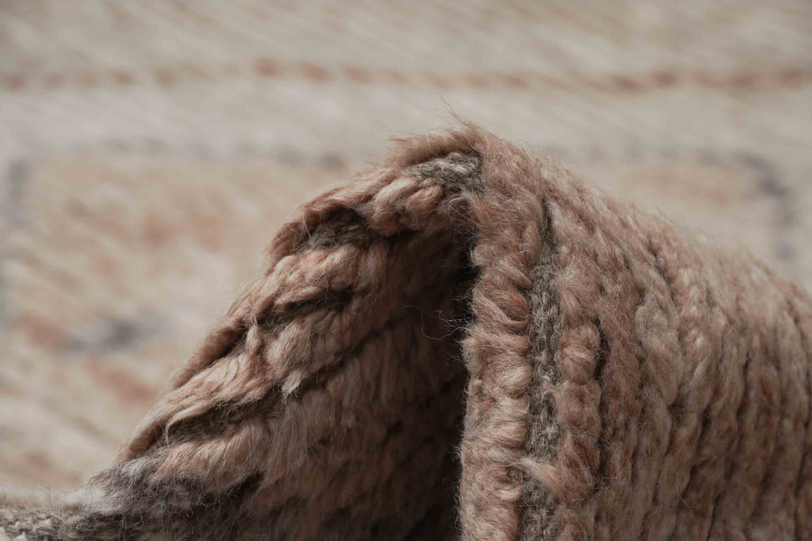 Die mit Naturfarben gefärbte und handgesponnene Wolle des flauschigen Flors dieses Berberteppichs erzeugt faszinierende, changierende Muster. Unsere Berberteppiche sind handgeknüpft und halten ein Leben lang. Trotzdem sind die Teppiche durch ihren langen Flor ungewöhnlich weich und flauschig. Beinahe fühlen sich die Berberteppiche wie eine weiche Decke an, die man am Liebsten mit ins Bett nehmen möchte. Die Schuss- und Kettfäden dieses Furry Berbers bestehen aus Baumwolle. Das vielseitige Material ist reißfest und dehnbar und daher besonders geeignet für ein strapazierfähiges Untergewebe.