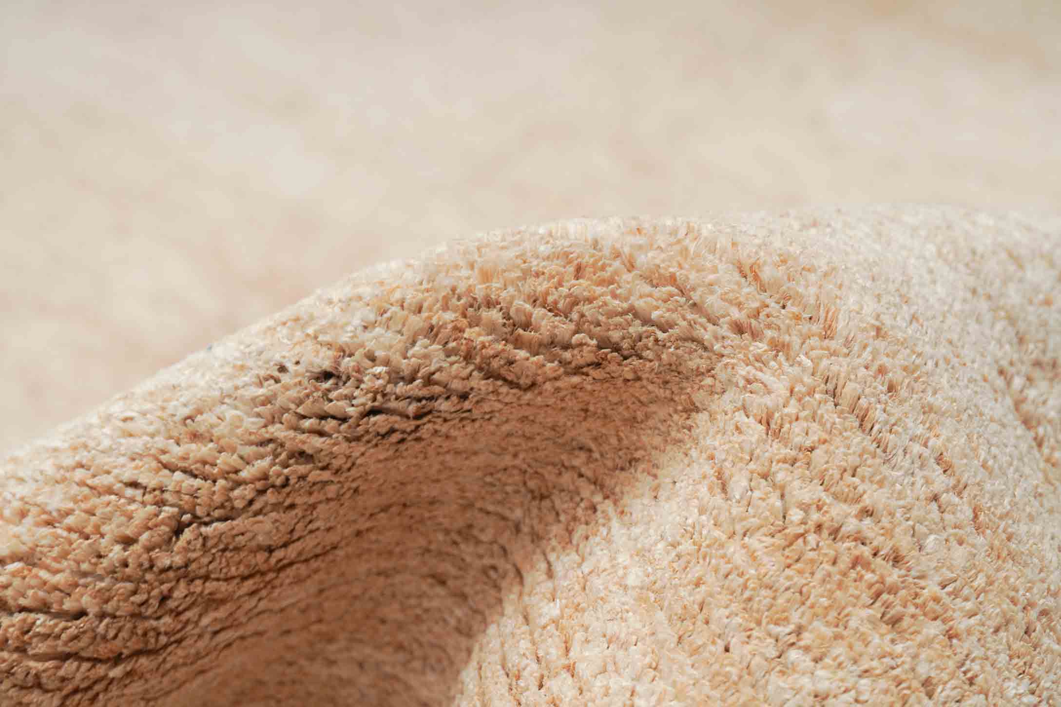 Unsere Hanfteppiche passen wirklich zu jedem Wohn- und Einrichtungsstil. Das dezente Muster und die natürlichen Farbnuancen schaffen eine beruhigende Atmosphäre und verleihen jedem Raum eine einzigartige Wärme und Eleganz. Ob im Wohnzimmer, Schlafzimmer oder Büro, ein handgeknüpfter Hanfteppich wird zum Blickfang und versprüht Wohnlichkeit. Neben ihrer ästhetischen Anziehungskraft sind unsere Hanfteppiche auch für ihre Nachhaltigkeit bekannt. Hanf ist eine umweltfreundliche Pflanze, die wenig Wasser und keine Pestizide benötigt, um zu gedeihen. Hanfteppiche sind besonders strapazierfähig und schmutzunempflindlich. Durch eine besondere Naturwäsche, trahlt und glänzt der Teppich seidig. Hanfteppiche nehmen sich elegant zurück, bereichern jeden Raum und schaffen eine einzigartige, natürliche Atmosphäre, in der andere Einrichtungsgegenstände aber noch genug Raum haben zu gelten. Die Oberfläche dieses Hanfteppichs wirkt meliert. Die Farbtonänderungen und Hell-Dunkel-Schattierungen des Florgarns lassen die Farben schimmern und machen den Teppich unempfindlich gegenüber Verschmutzungen. Der Teppich wirkt wegen diesen sogenannten Farbsprünge (Abrasch) lebendiger.