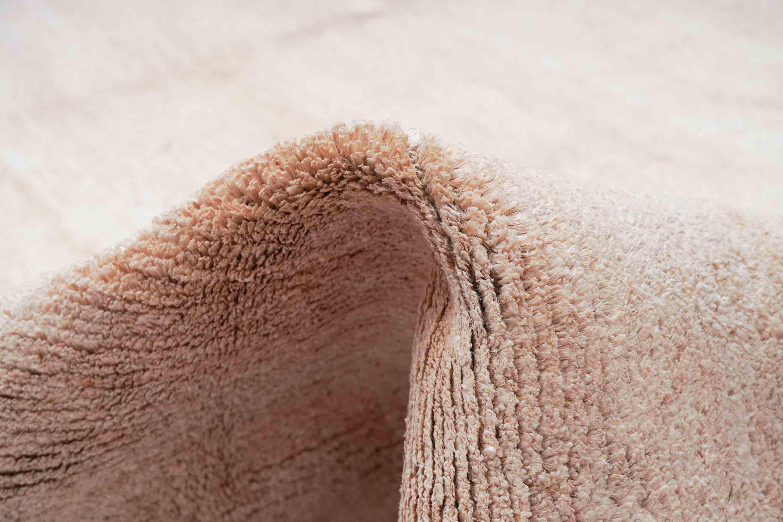 Der Flor ist einfarbig in Goldbeige gehalten. Die schlichte Gestaltung ist zurückhaltend, kann aber auch einen tollen gestalterischen Akzent setzen. Das monochrome Erscheinungsbild dieses Teppichs fügt sich hervorragend in jedes Umfeld ein.