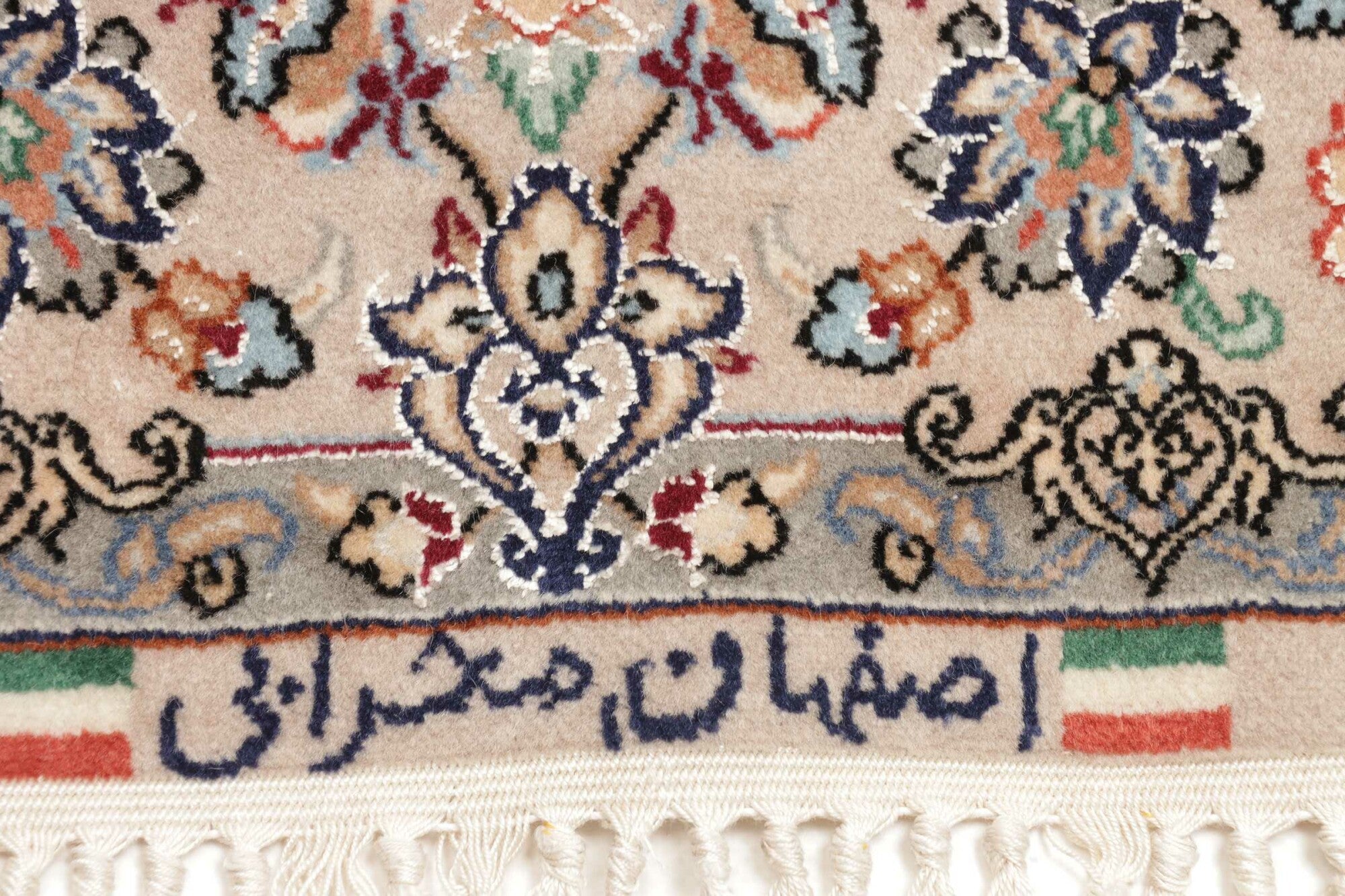 Noch heute tragen viele Isfahan Teppiche am unteren Rand einen meist dezent eingeknüpften Schriftzug in persischen Schriftzeichen, die sogenannte Signatur. Darauf zu lesen sind der Herstellername, die Herkunftsbezeichnung Isfahan und oftmals auch die Landeskennung, entweder als Wort Iran oder die iranische Nationalflagge in Grün, Weiß und Rot.