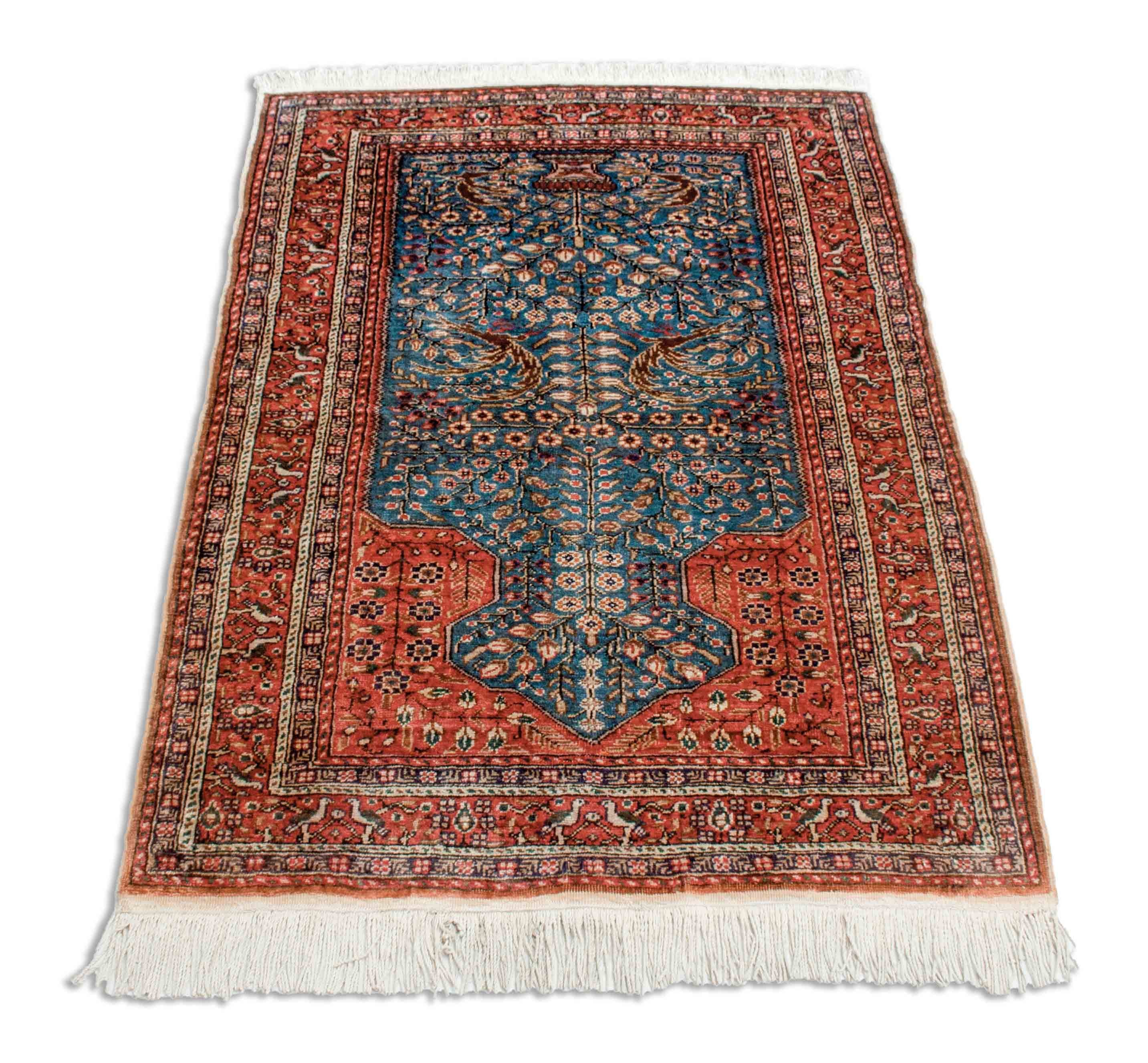Ihr seid nicht die ersten, die Gefallen an diesem Kayseri finden. Er hatte bereits Besitzer vor Euch, die ihn geschätzt und benutzt haben. Er wurde ca. 1970 handgeknüpft. Er wurde gründlich gereinigt und ist in einem guten aber nur teilweise restaurierten Zustand. Leichte Ausbesserungen an Fransen und im Flor wären bei diesem Stück ratsam. Wir haben diesen Kayseri nicht vollständig restauriert, weil wir finden, dass er so wie er ist eine besondere Wirkung hat. Wenn ihr das wollt, restaurieren wir den Teppich natürlich gerne weiter für Euch. Wir können so gut wie jeden Teppich wieder in einen nahezu perfekten Zustand bringen.