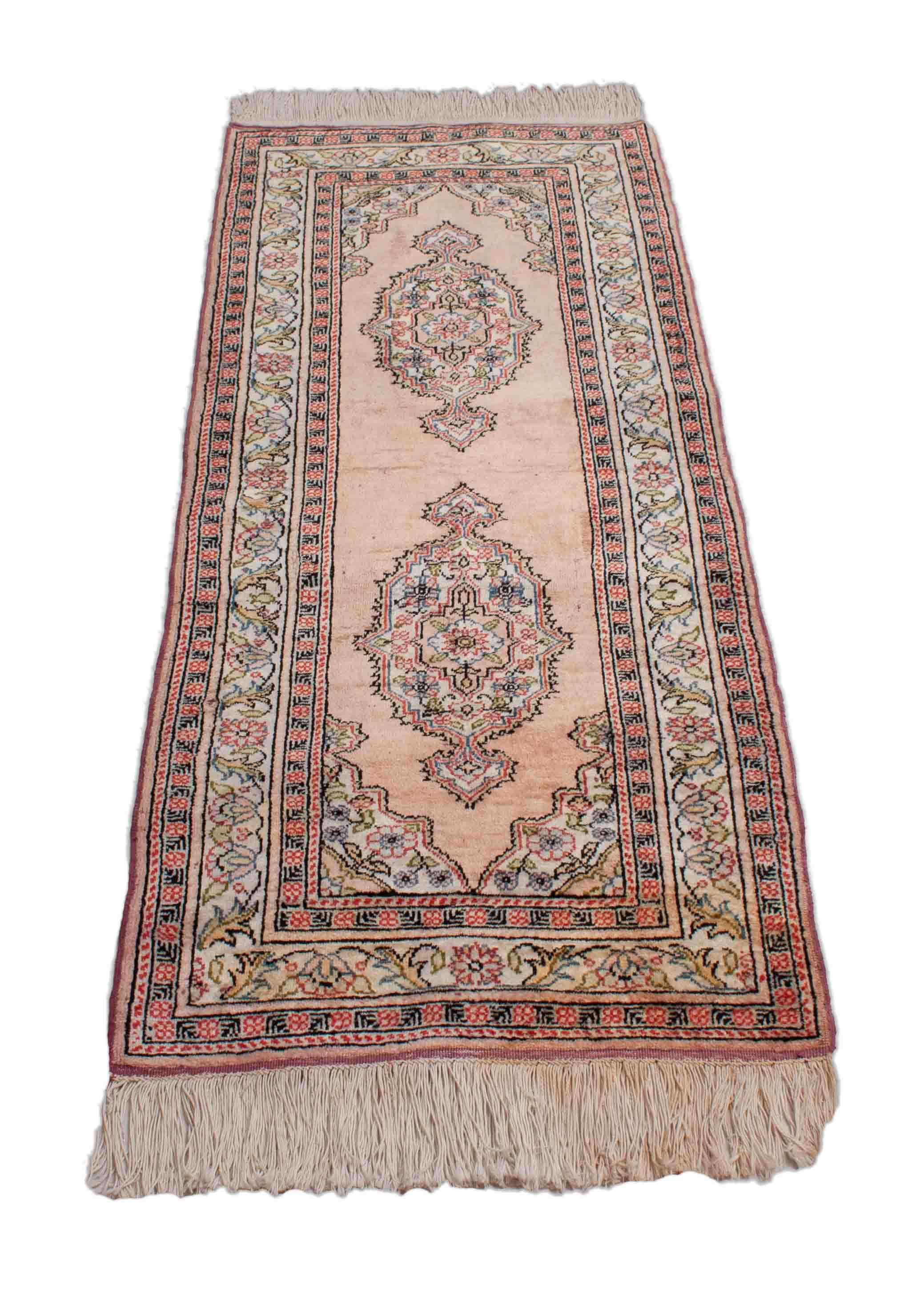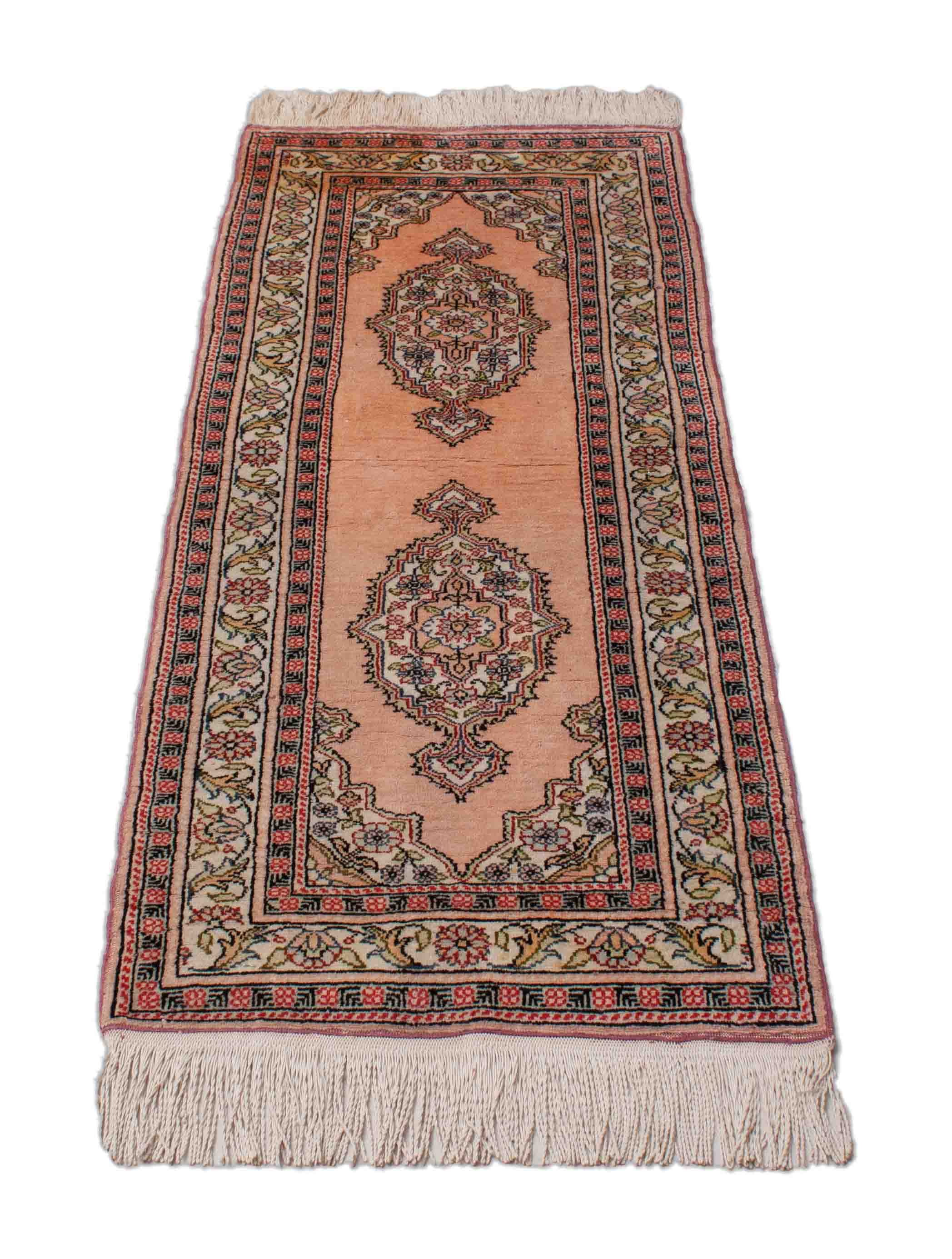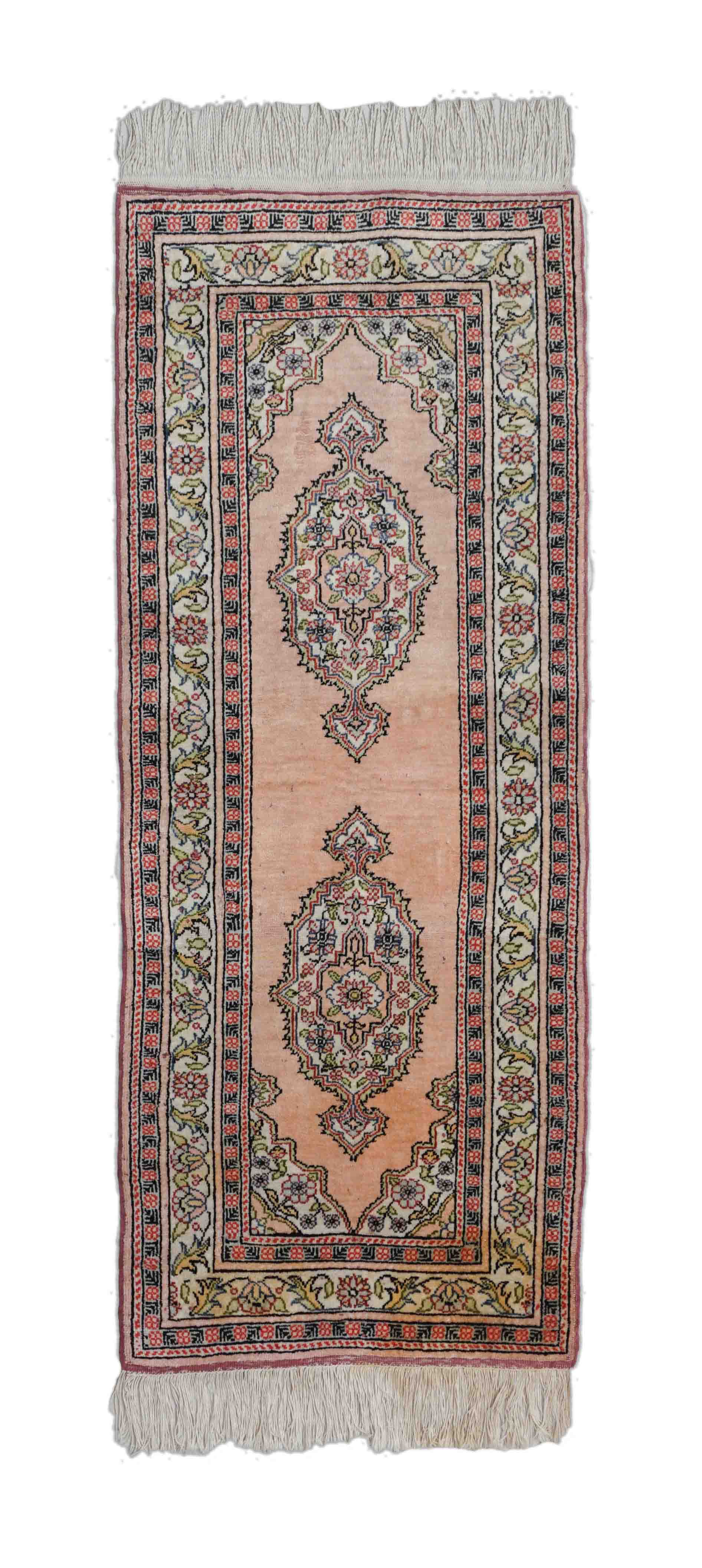 Floraler Kayseri Läufer aus merzerisierter Baumwolle, altrosa mit Bordüre