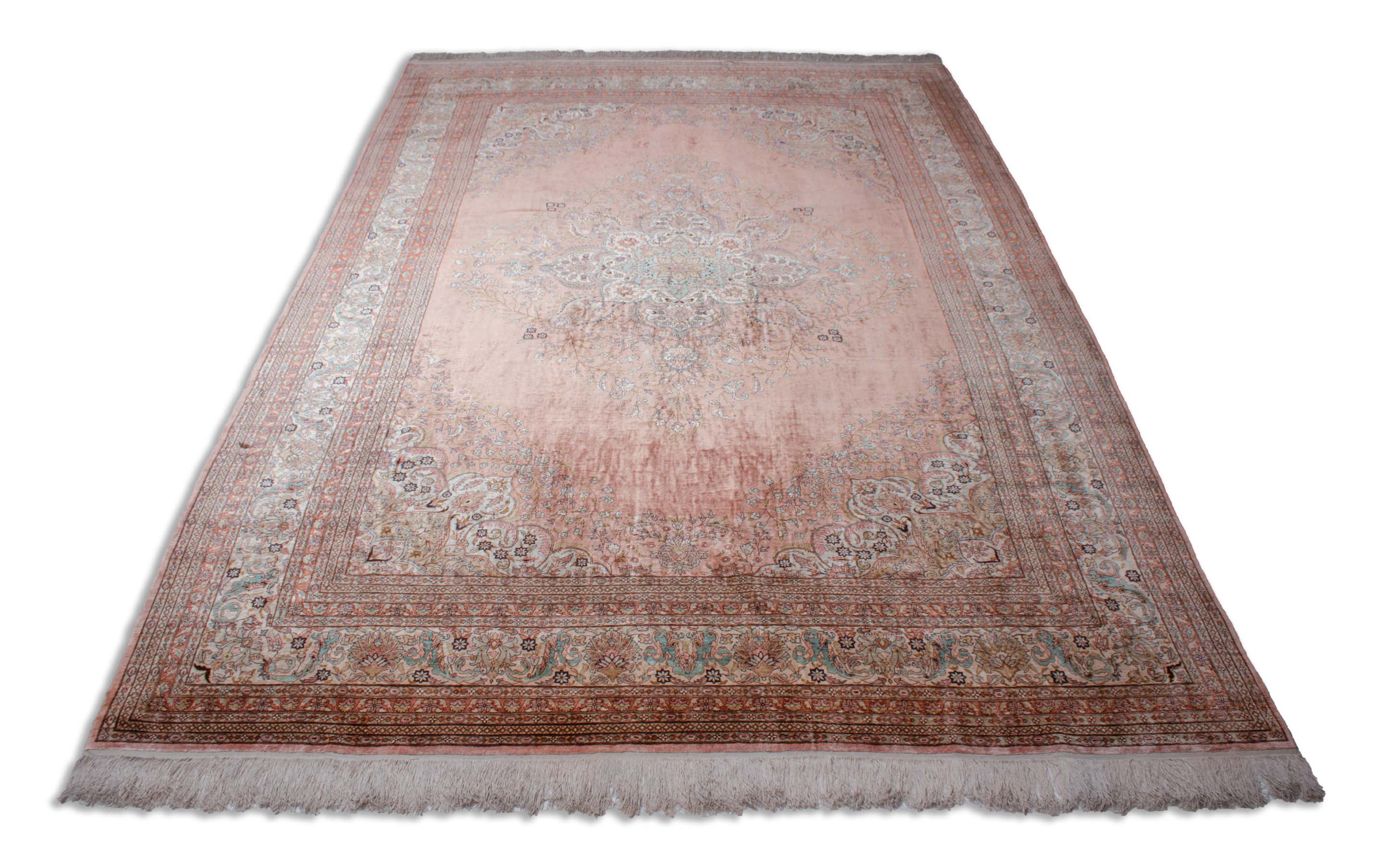 Floraler Kayseri aus reiner Seide, altrosa mit Bordüre und Medaillon