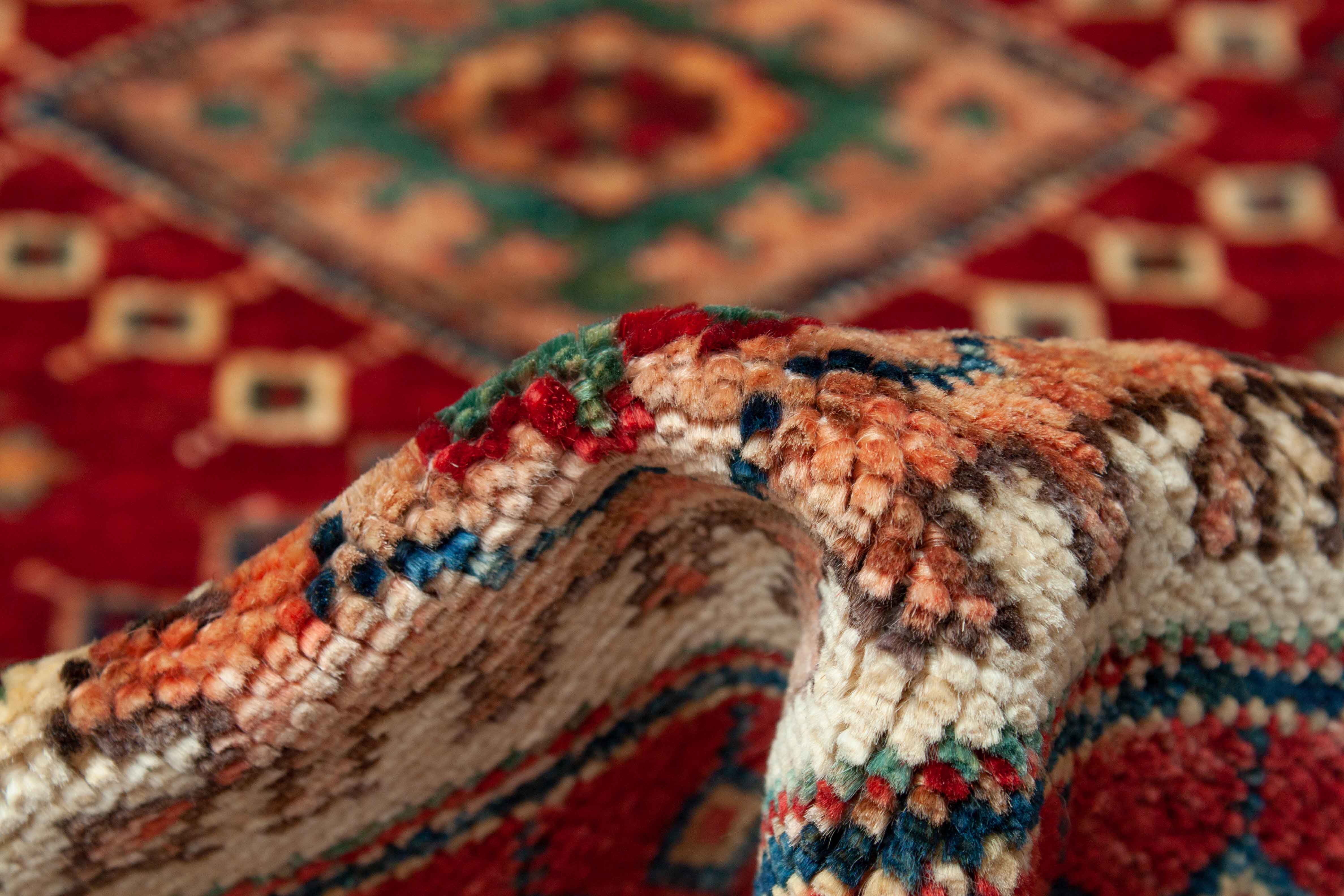 Der Rand des Teppichs wird von einer Umrandung (Bordüre) geziert. Die Bordüre bildet einen herrlichen Kontrast zum Zentrum.