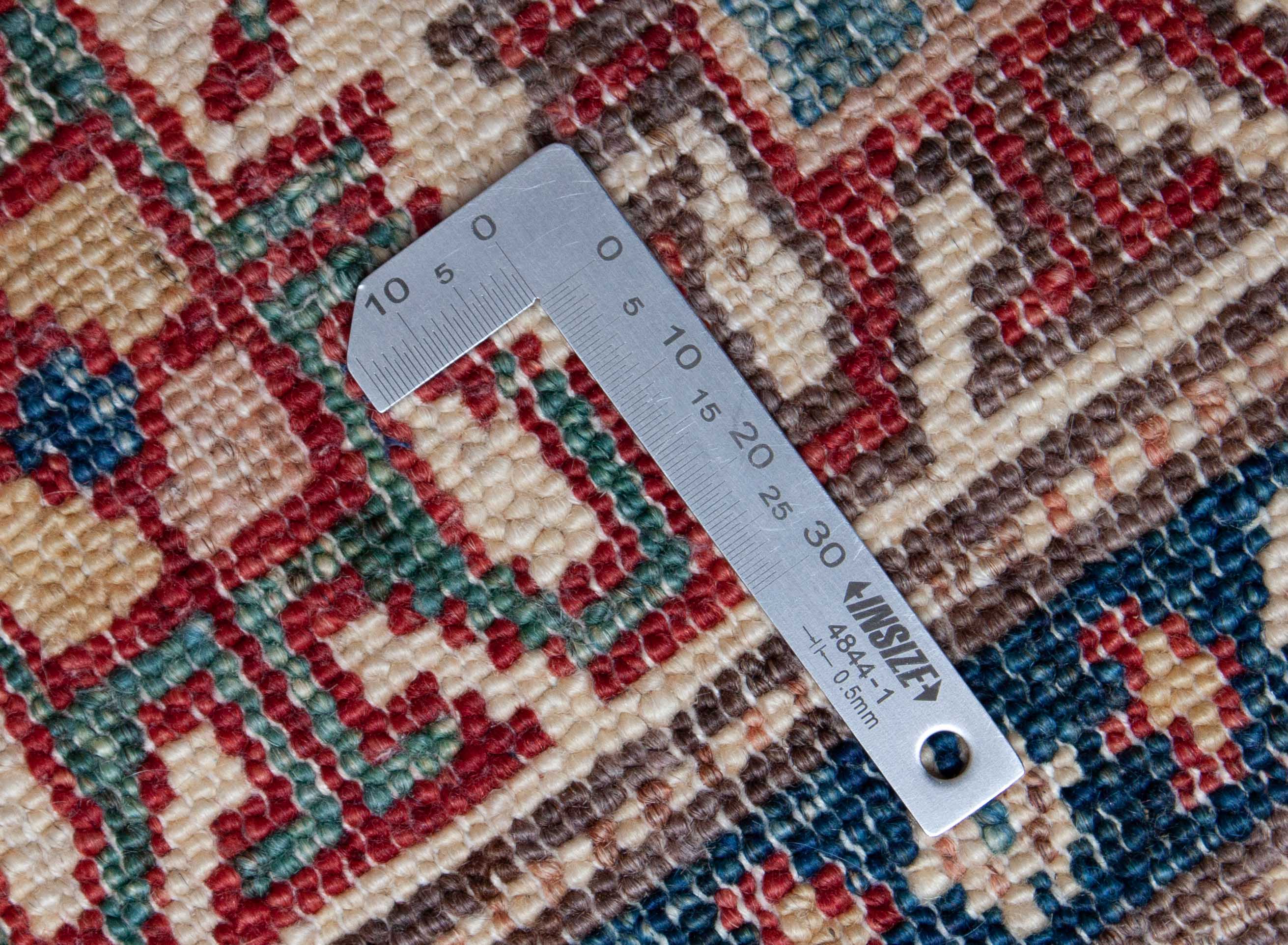 Doch der Aufwand lohnt sich: Durch das Färben mit Naturfarben behält die hochwertige Wolle ihren natürlichen Fettgehalt. Die mit Naturfarben gefärbte und von Hand versponnene Wolle erzeugt faszinierende, changierende Muster. Der Charme handgesponnener Wolle mit ihren leichten Unregelmäßigkeiten und natürlichen Farbtönen entfaltet sich als Kontrast in modernen Interieurs aber auch in Räumen, die traditioneller oder im Landhausstil eingerichtet sind. Die Schuss- und Kettfäden dieses Kazaks bestehen aus Baumwolle. Das vielseitige Material ist reißfest und dehnbar und daher besonders geeignet für ein strapazierfähiges Untergewebe.