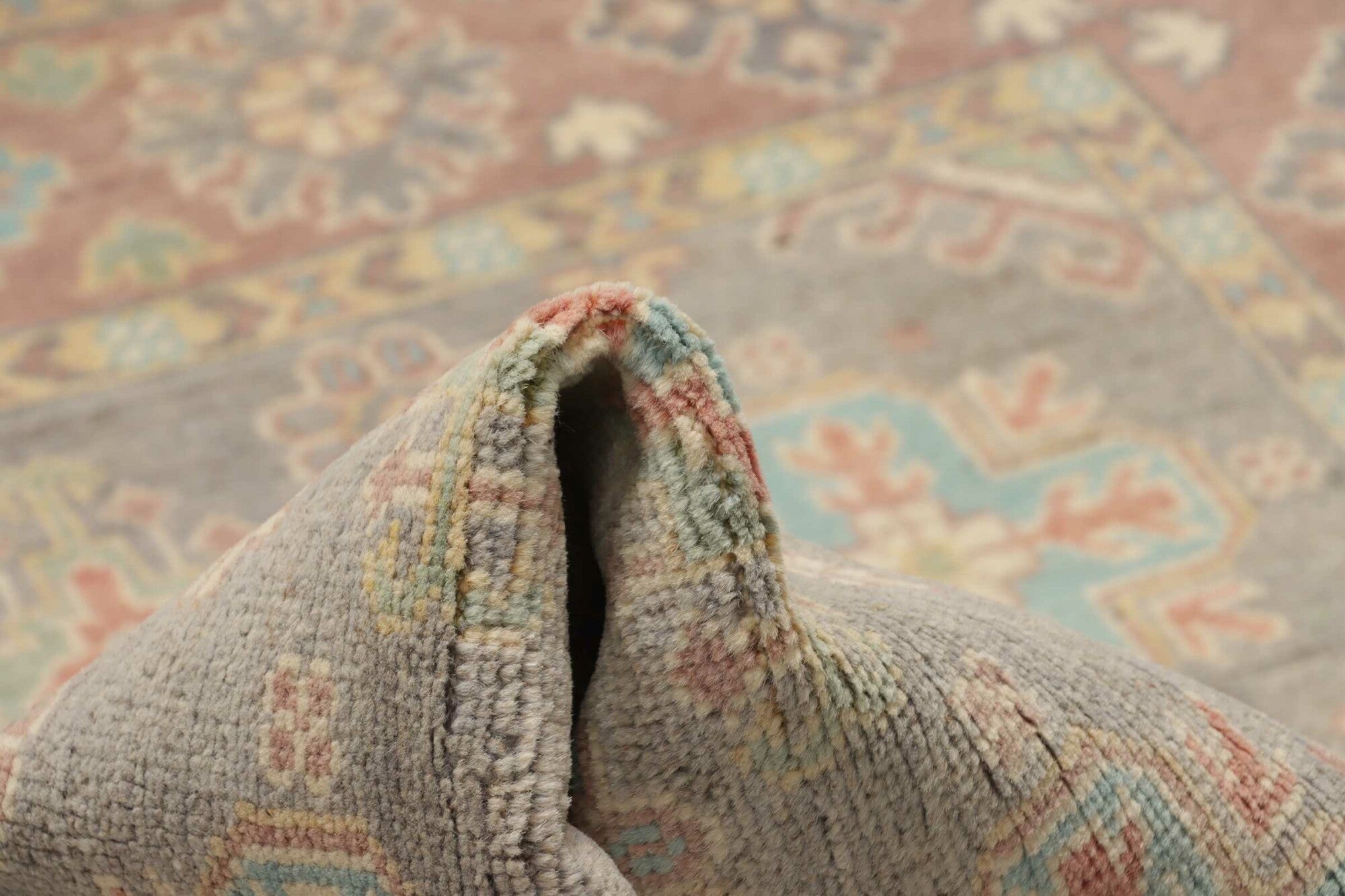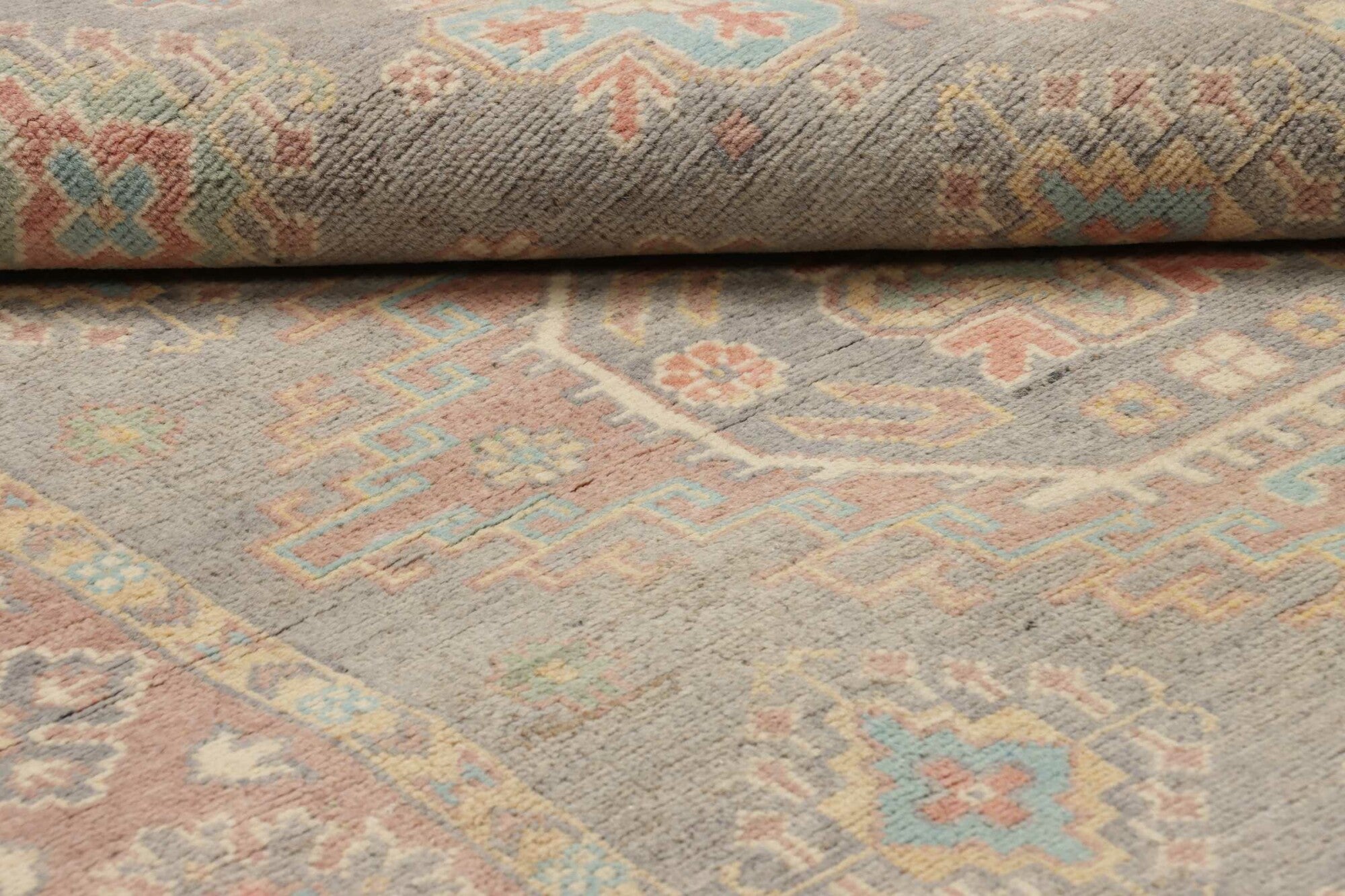 Dieser Kazak Teppich wurde nach einem traditionellen Verfahren aus handgesponnener Wolle und Naturfarben in Pakistan handgeknüpft.