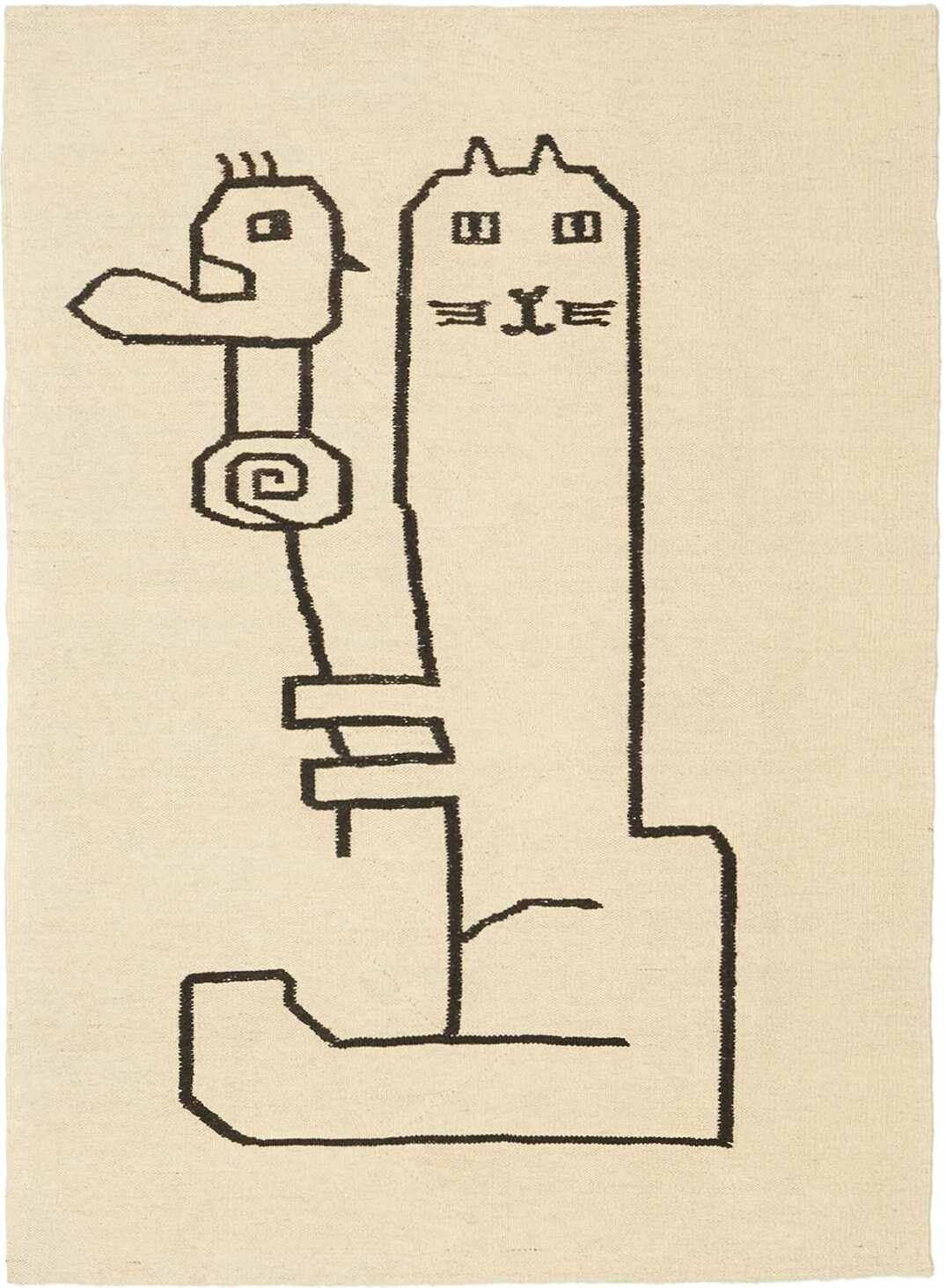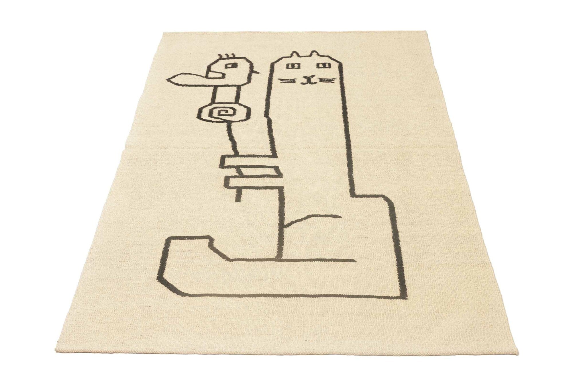 Melierter Kelim, beige mit Motiv