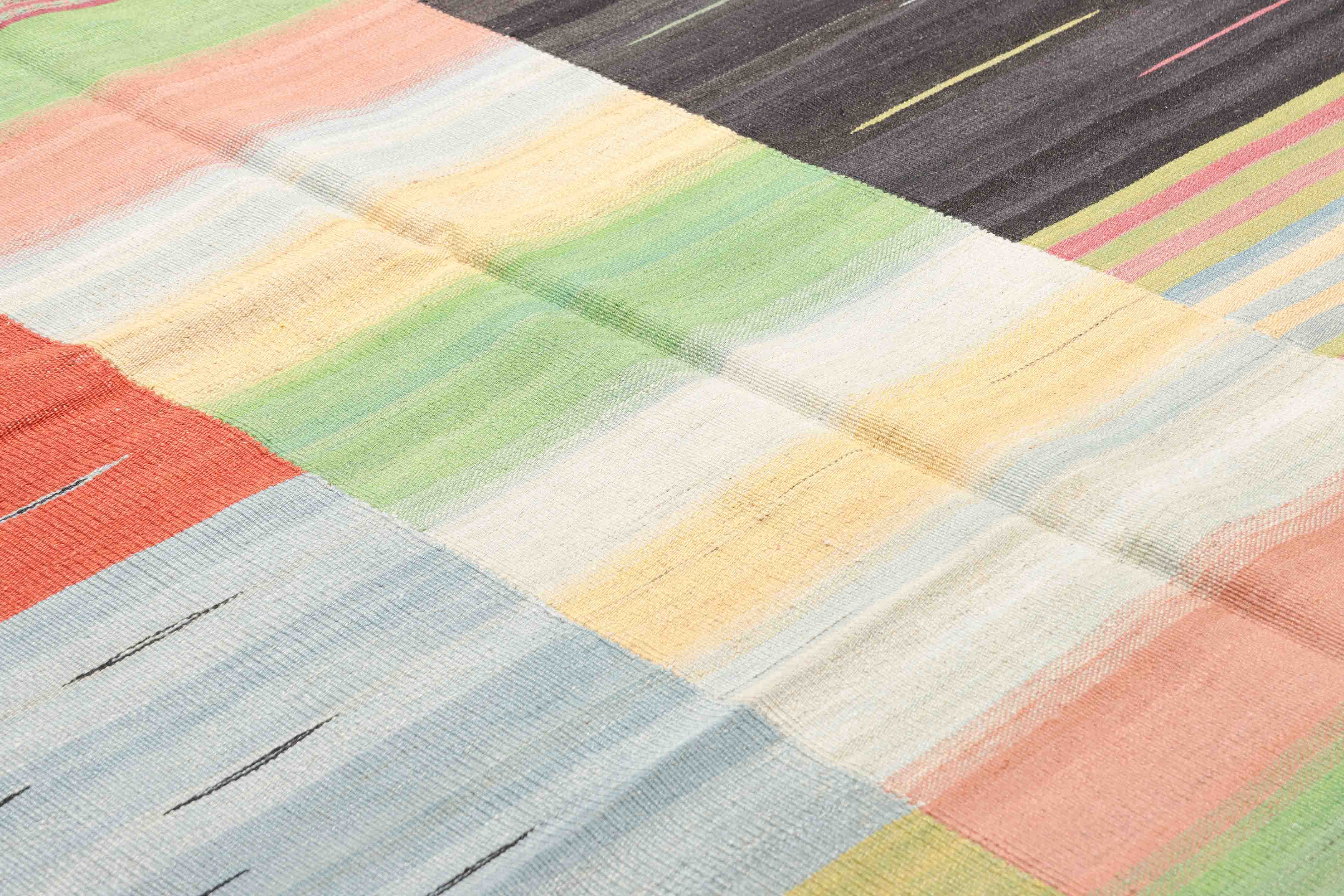 Moderner Kelim, hellgrün mit Streifen und Kelim aus Bahnen